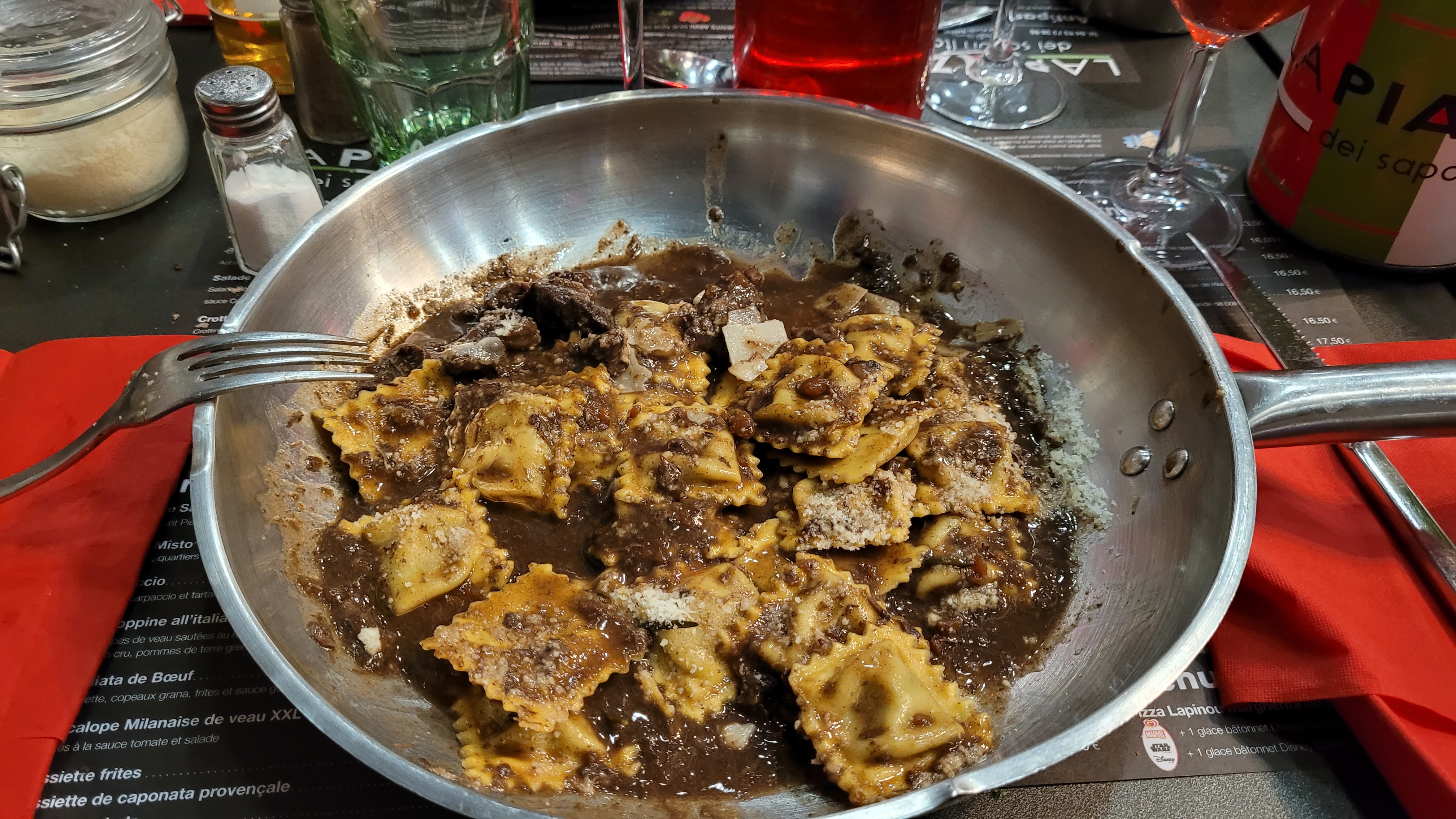Malgré une arrivée tardive (22h15), nous avons eu un accueil sans problème et sympathique. Service rapide, daube, raviolis et linguini très bons.