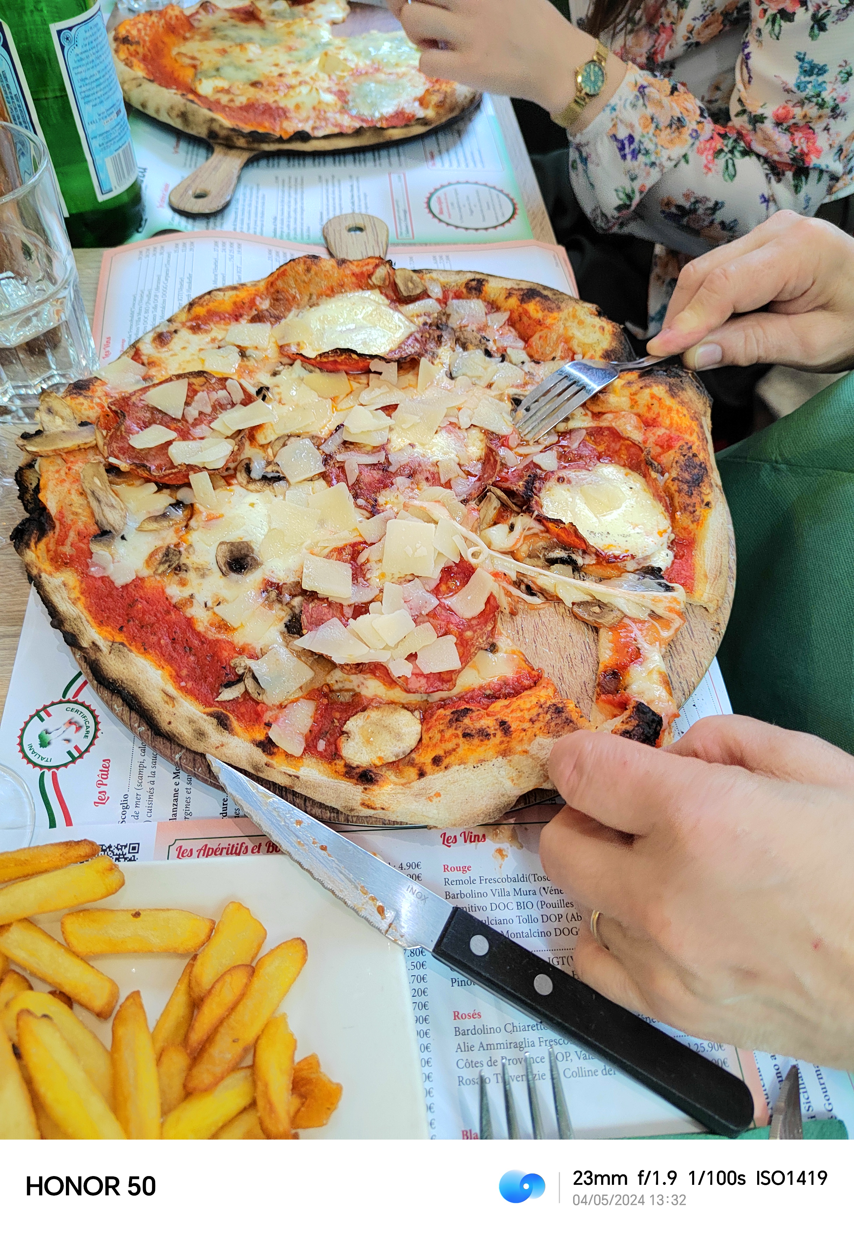 Bon, mais sans plus !. Très très cher tout de même !. De plus très très salé, avec de la fausse mozarela ( a ce prix cela doit être Buffala). Fromages peu fondu et œufs pas cuit. Pizzas, je connais très bien, 14 ans au lac de Côme. A revoir.