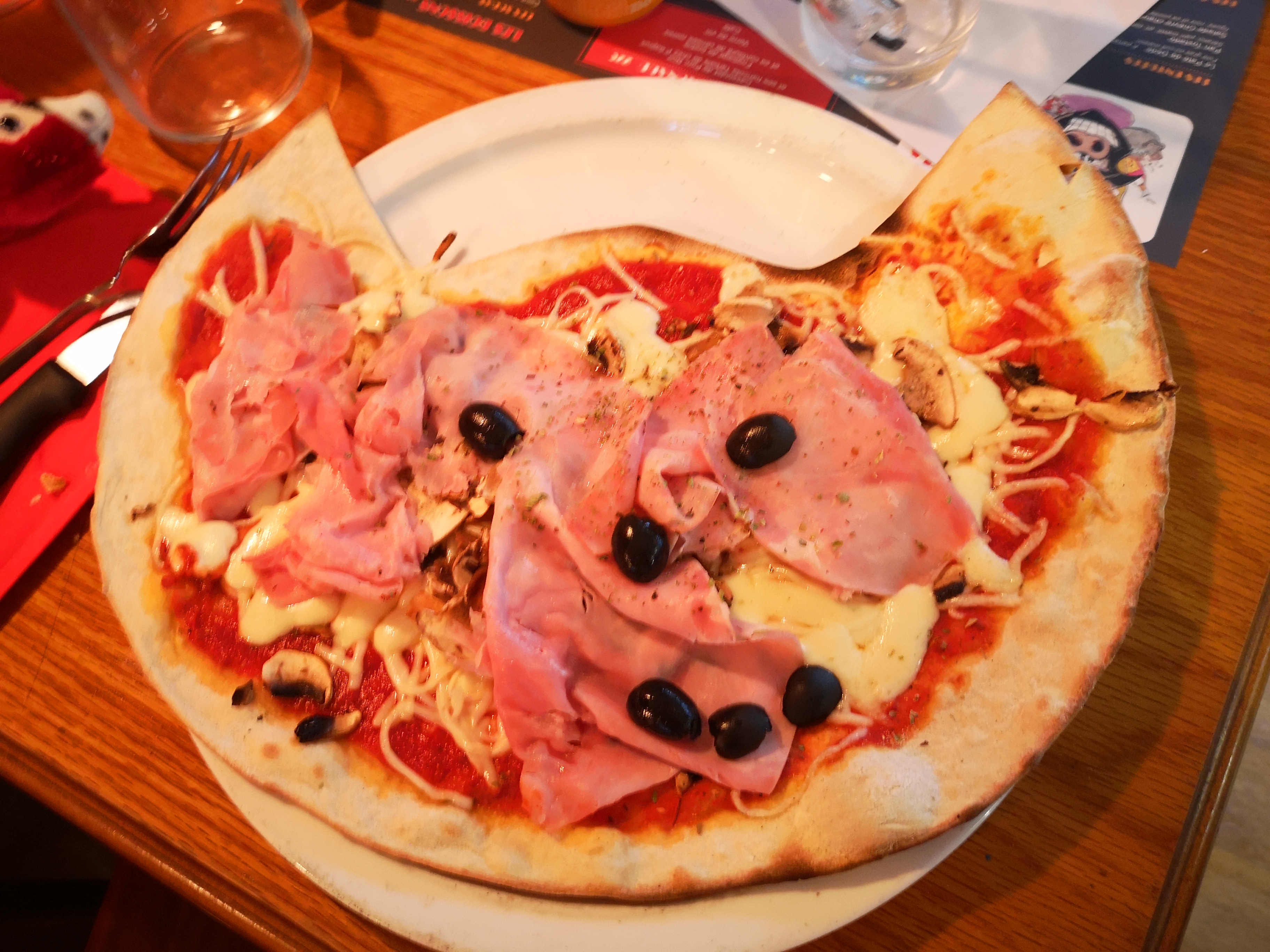 Deux entrées pour cet endroit,sur la grande place et à l arrière.Donc deux ambiances, la terrasse ou la salle plus intime. Accueil sympathique et attentionné. Nous avions envie de Pizza mais les plats servis autour avaient l air tout aussi appétissant. Pizza copieuse , pardon une petite souris a déjà grignote l une des deux. Je recommande cet endroit.