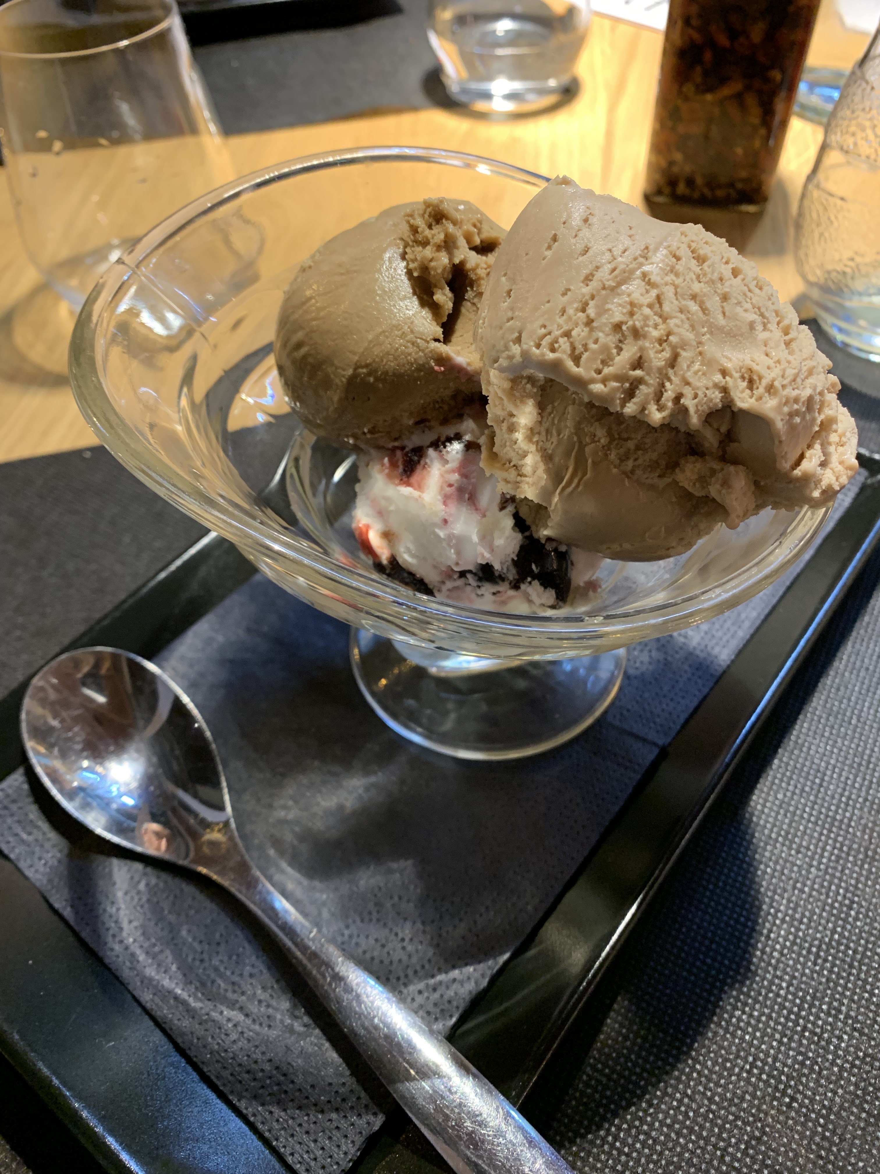 Juste parfait ! Serveurs adorables du début à la fin. Ma femme a pris des pâtes à la pistache, moi une entrecôte et c’était délicieux ! Super rapport qualité prix. Ambiance très sympa ! Je recommande les yeux fermés.