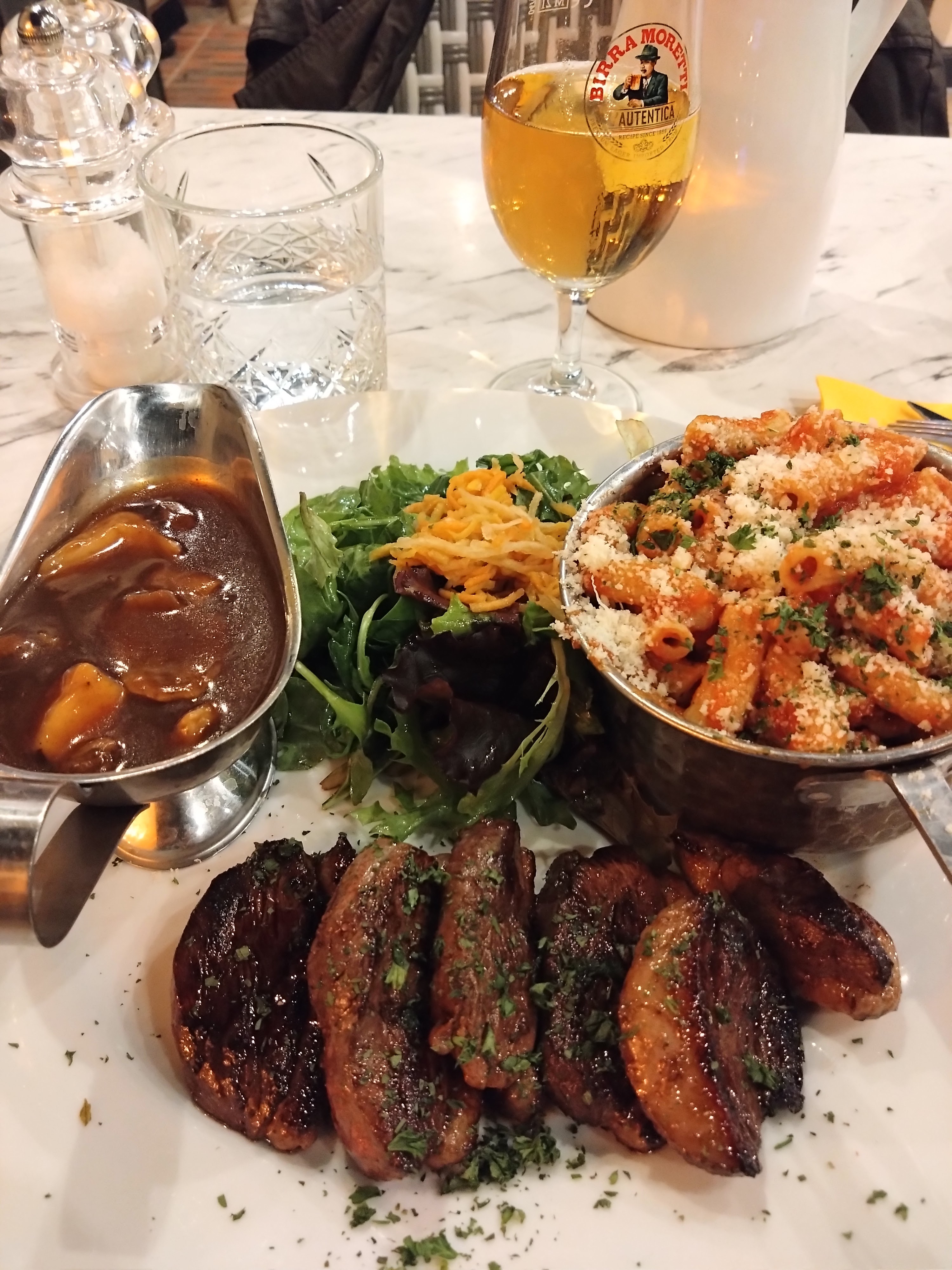 Pizzas exxxcellentes... pâtes trop compactes et manque de sauce... salade ok... je recommande essentiellement pour les pizzas