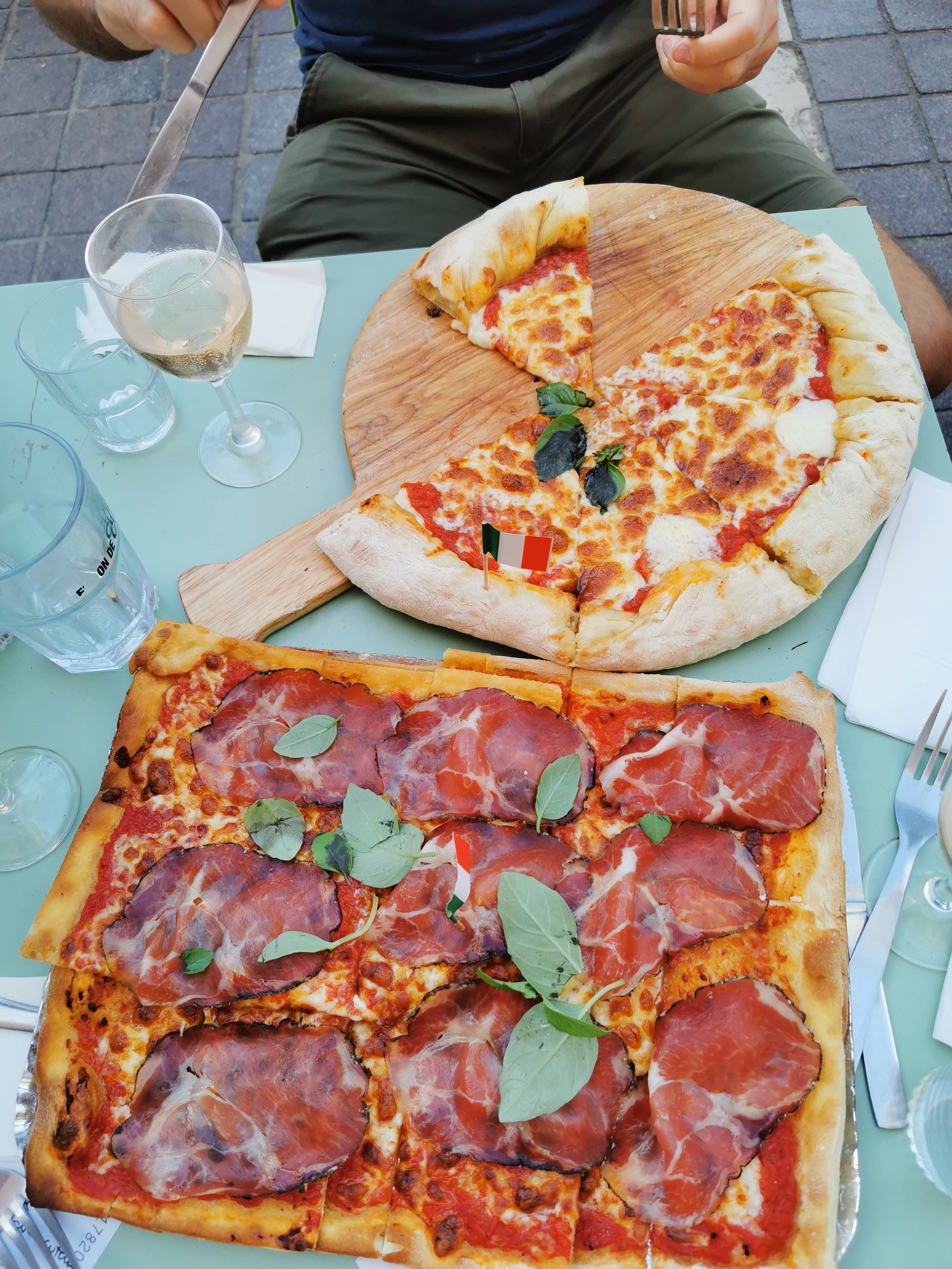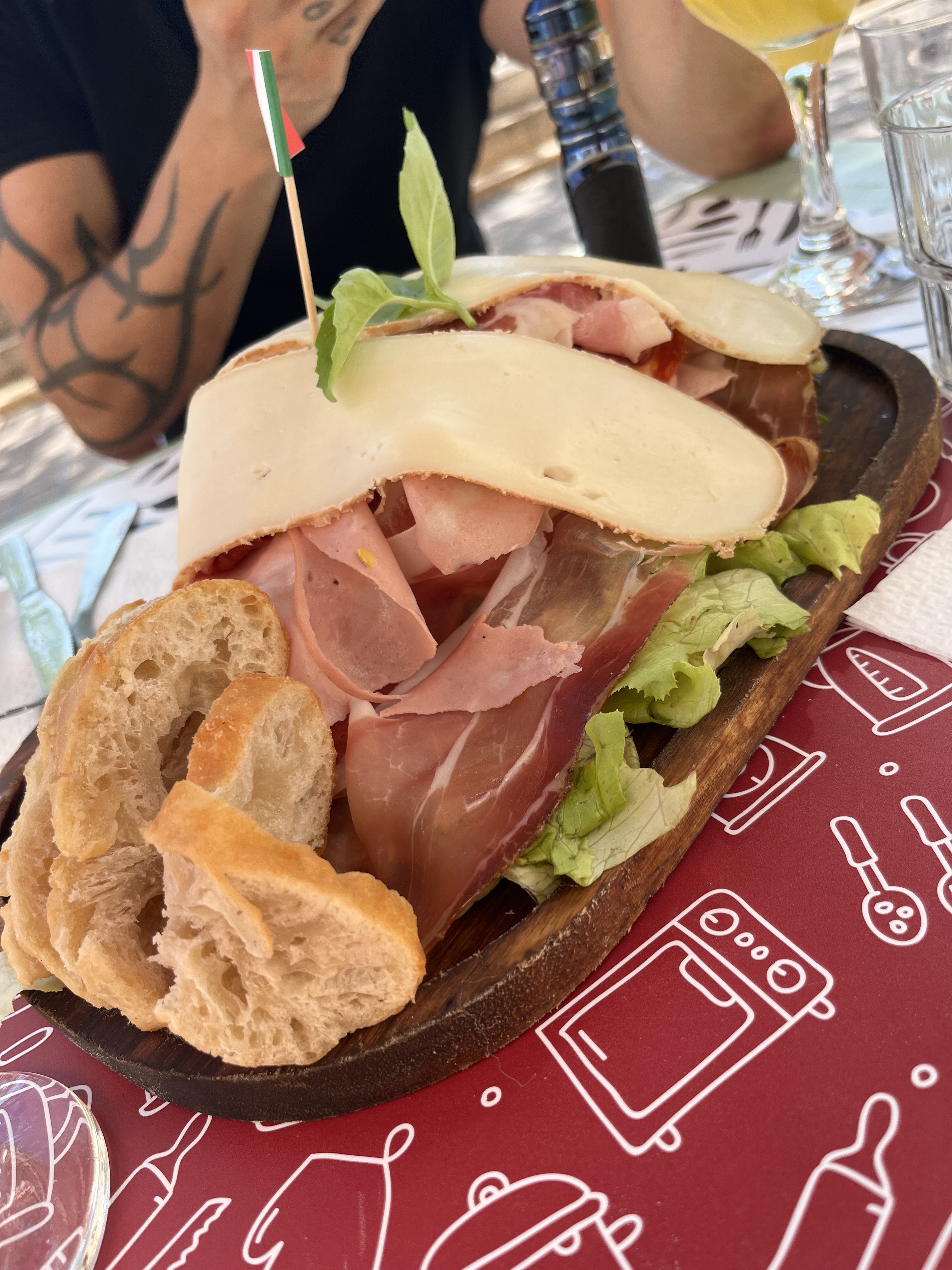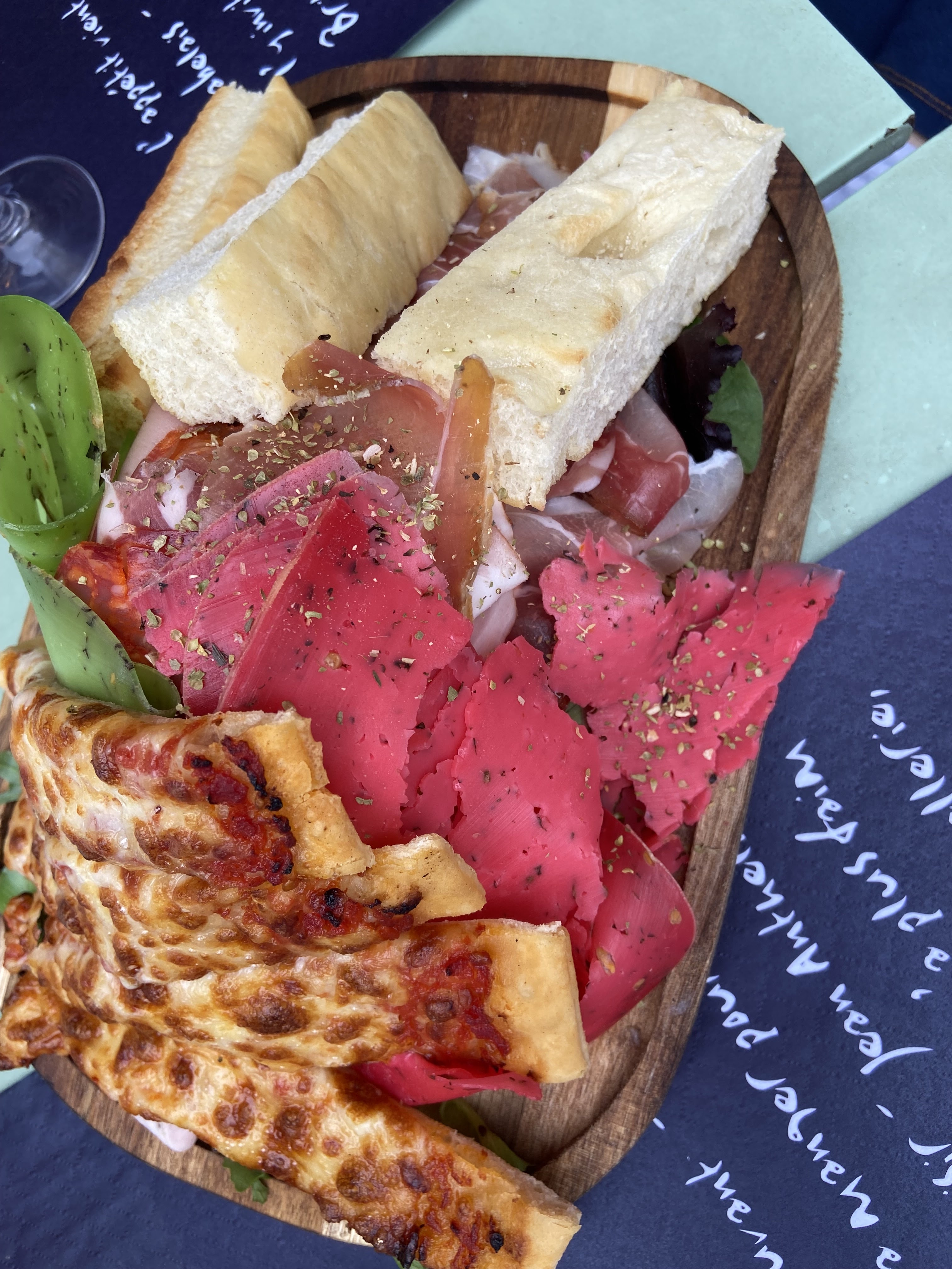 [Un aller simple pour l’Italie, chez marco] Un ami nous a amené pour ce qui était pour lui un établissement exceptionnel, et le bougre avait raison. Pourtant le froid en terrasse a 21h30 laissait présager un repas dans la douleur mais l’équipe italienne de l’établissement nous a régalé et nos cœurs ce sont réchauffés. Petite coupe de proseco et planche offerte pour commencer le repas, ça fait toujours plaiz. Nous avons ensuite enchaîné sur les plats, EXTRÊMEMENT COPIEUX. Si vous êtes un gros mangeur vous finirez l’assiette de pâtes sinon prenez 1 pour 2. Idem pour les pizzas. Pour le dessert nous avons repris des spritz XXL et la panneton préparée par le chef était sensationnelle (maison, la meilleure de notre vie). Petit café et on part en roulant le sourire au lèvres avec une addition très peu salée pour ce qu’on a consommé. Nous remercions encore l’établissement pour leur générosité qui a sublimé nos retrouvailles entre copains. Attention ⚠️ repas en extérieur donc habillez vous et pas de toilettes officielles ne soyez pas surpris