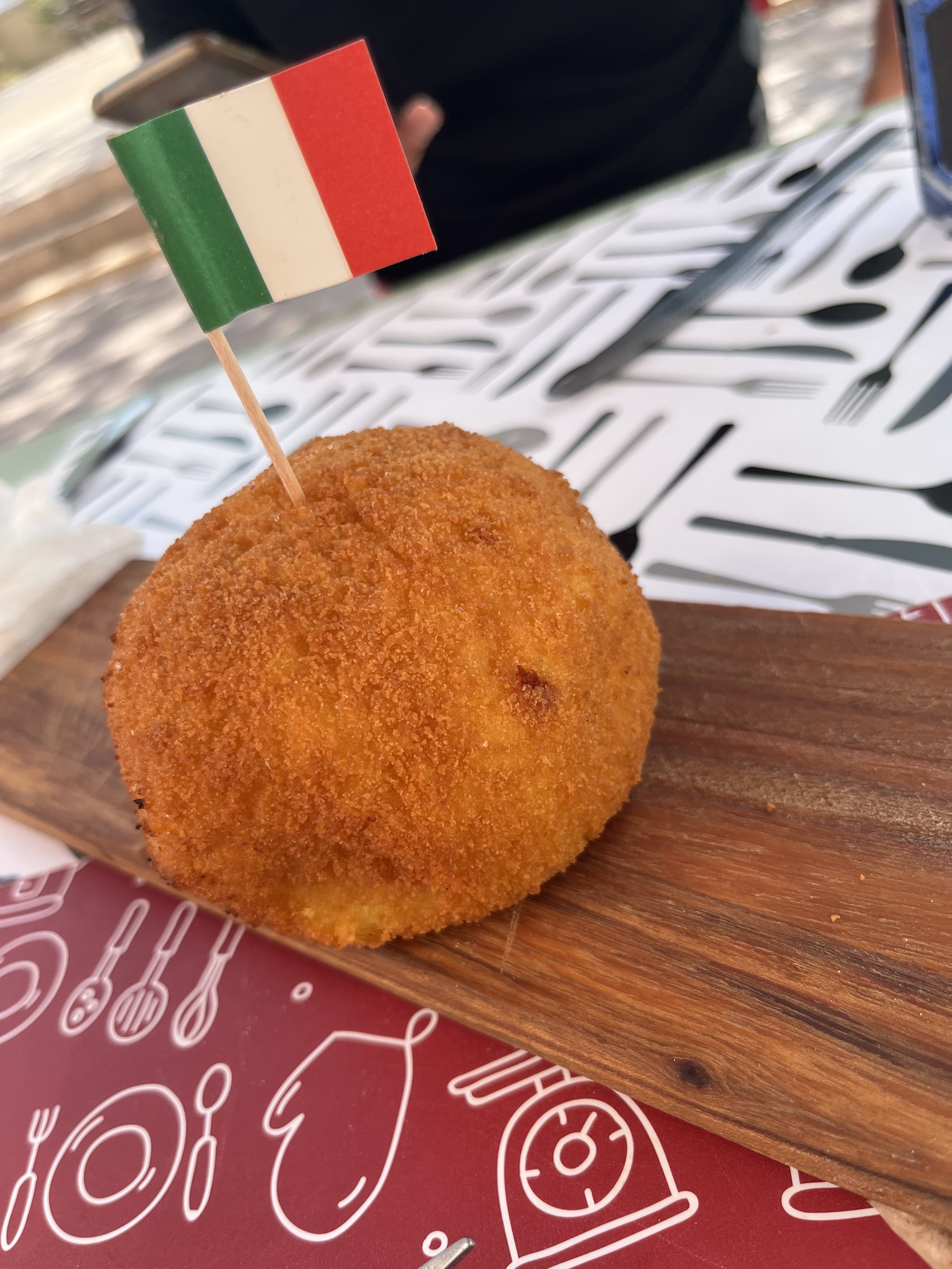 Plus que déçu par l’achat d’un arancini dans cette pizzeria. Rien à voir avec les vrais arencini italien. Immangeable car beaucoup de gras et quasiment pas de viande. Il devrait y avoir 80% de garniture et le riz devrait être en quantité réduite. De plus un drôle de goût de plastique. Voir la photo.