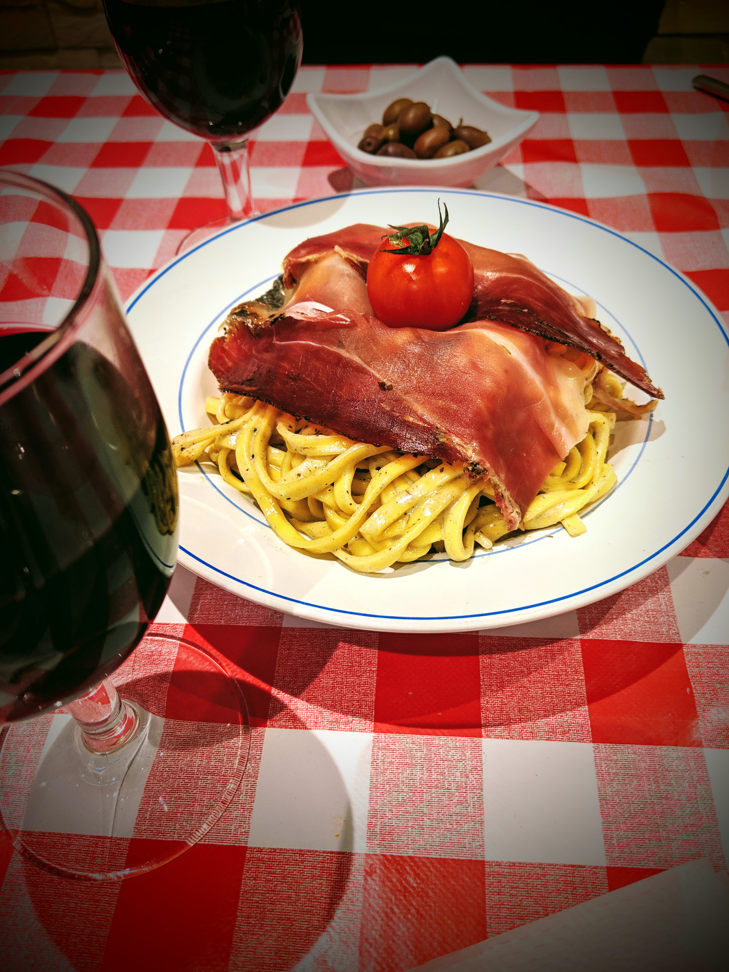 Superbe expérience, comme un voyage dans les Abruzzes le temps d’un repas. On avait réservé pour 11 pour l’anniversaire de ma belle-mère, on a pu avoir à nous l’intérieur du resto, on a mangé, bu, chanté et même bavarde avec le patron et sa famille, et pour 35 euros par personne, on a eu des magnifiques planches à partager, des pâtes incroyables à la truffe, des pâtes carbonara, des pizzas de 3 sortes, un tiramisu tout frais et des glaces. On a (trop) mange et on est repartis avec 8 Tupperware pour le repas du soir et le déjeuner du lendemain 😅 avec pleins de jolis souvenirs de ce petit coin familial authentique