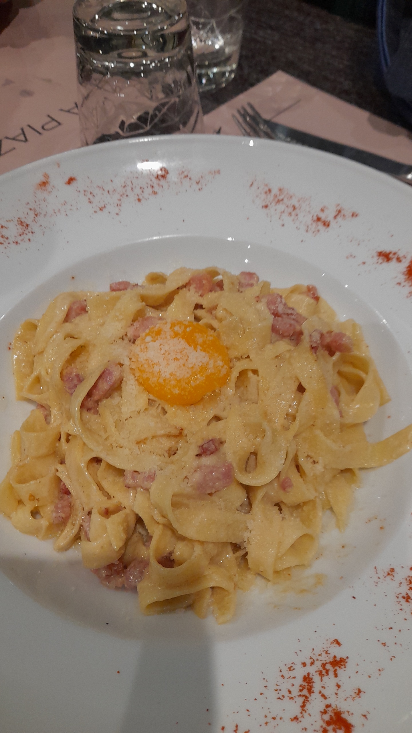 Le serveur était incroyablement sympa, mais malheureusement, la nourriture laissait à désirer. Nourriture banale. Mon ‘aubergine à la parmigiana’, qui, sur le menu, était marqué chez les pâtes, a été servi… Sans pâtes. De plus, mon copain avait commandé ses pâtes explicitement sans fromage, ce qu’ils ont malheureusement, oublié.
