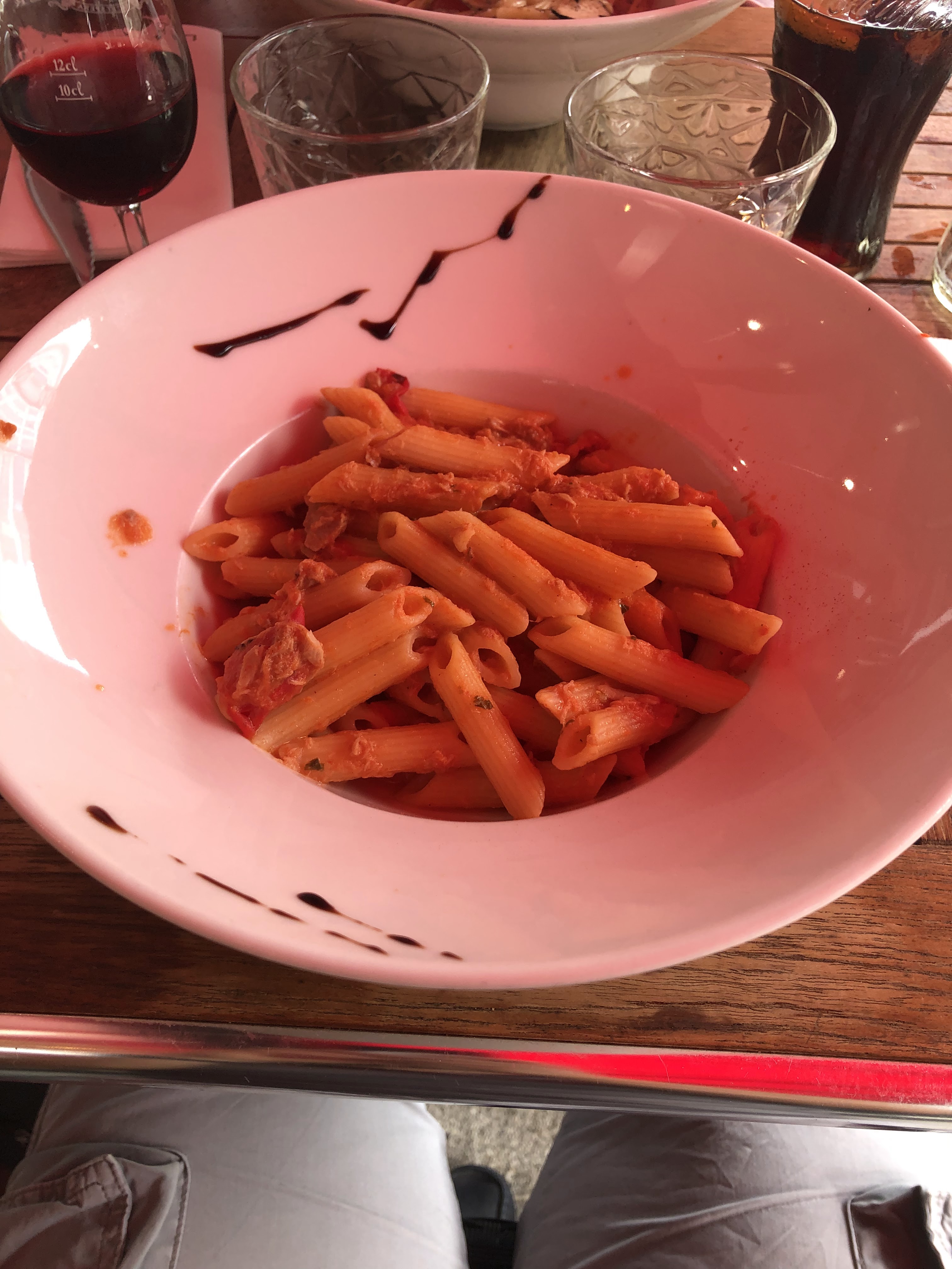 Penne au thon suffisamment relevé à mon goût. Très bon tiramisu. Terrasse assez grande le long de l avenue. Serveurs sympathiques et bienveillants. A recommander