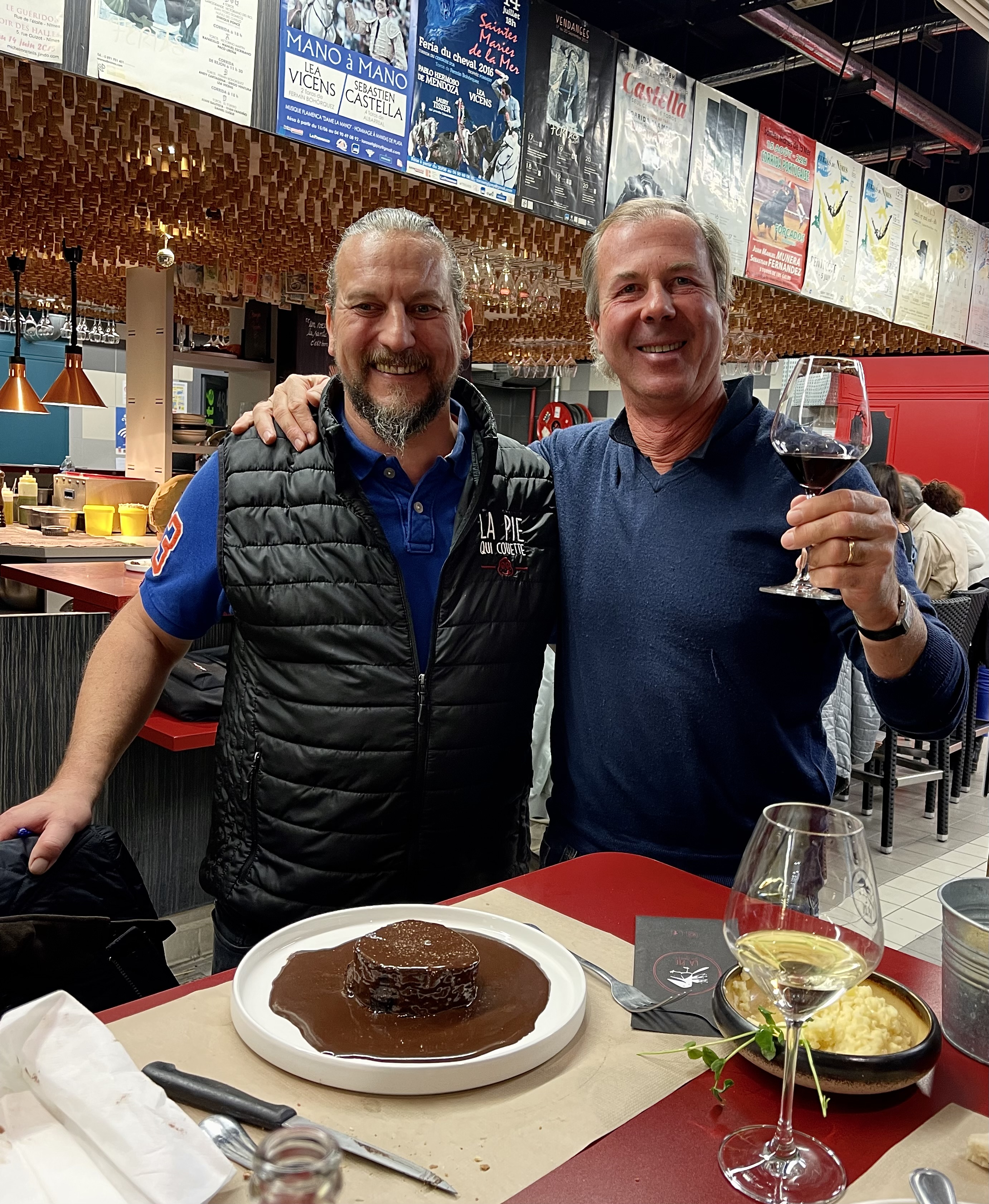 Au vu des commentaires de clients sur le net, « La pie qui couette » était le lieu à découvrir dans les Halles de NImes que nous visitions pour la première fois… L’affluence était rassurante, malheureusement le contenu des assiettes, des verres et de l’addition ont été pour nous plus que décevants : Une entrée de couteaux trop cuits et mal dessablés pour deux, une effilochée de volaille baignant dans une sauce demi-glace trop sucrée nommée « Pastilla de chapon au foie gras »…ni goût de chapon, ni goût de foie gras…et des noix de St Jacques (trop) snackées accompagnées d’une compote de poireaux…Un baba au rhum qui sauve un peu la mise, encore que la vanille de Madagascar devait s’y trouver en dose homéopatique. Nous avions pris un seul dessert… et ce petit gueuleton a été facturé la modique somme de 94 Euros… »Honteux et confus, nous jurâmes mais un peu tard qu’on ne nous y prendrait plus… »