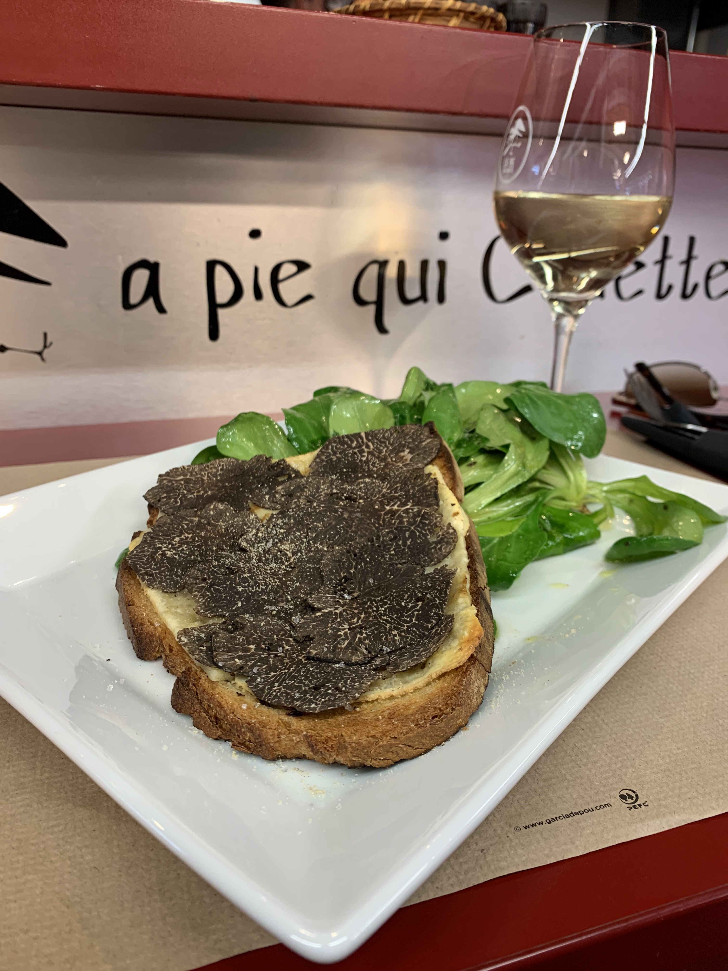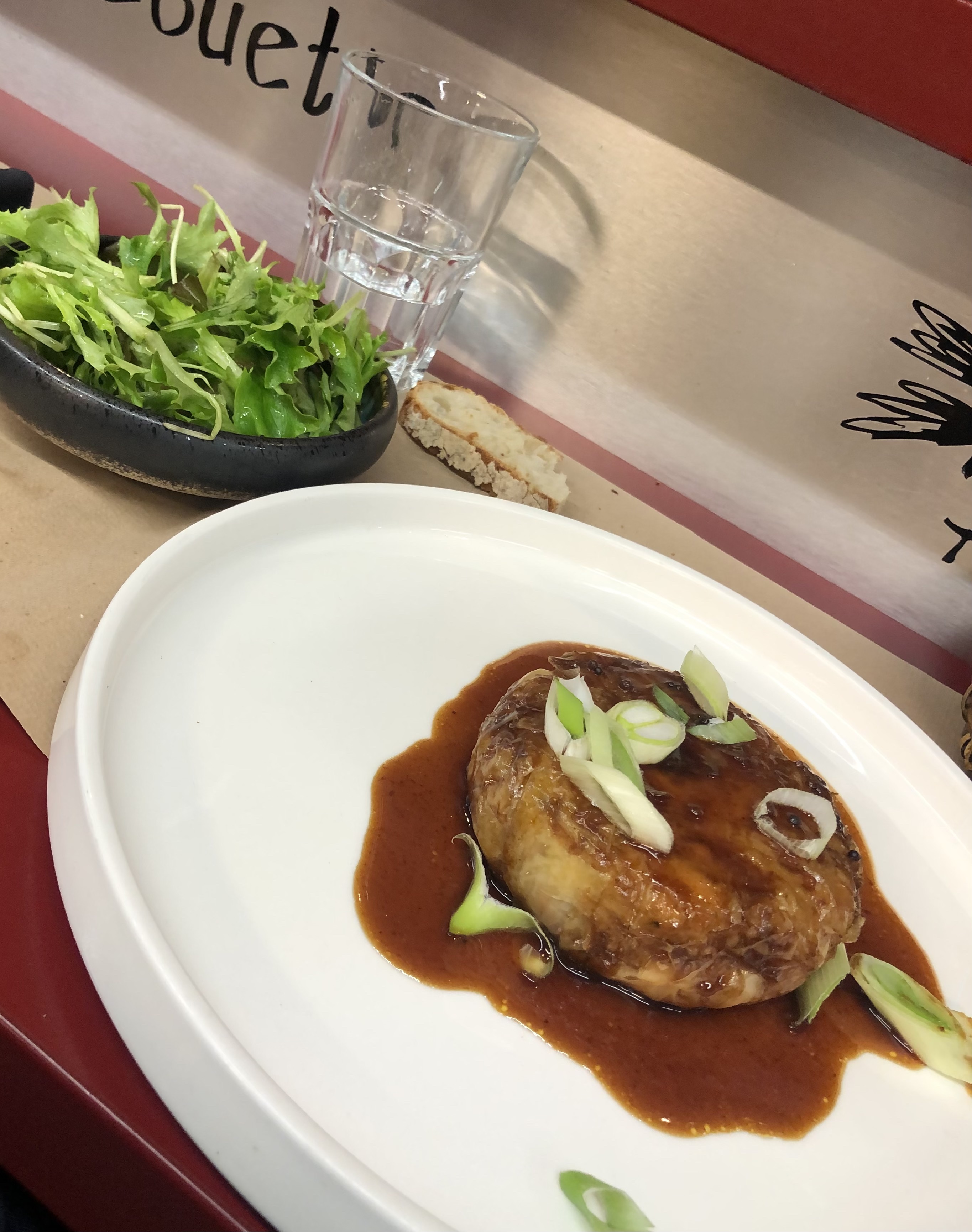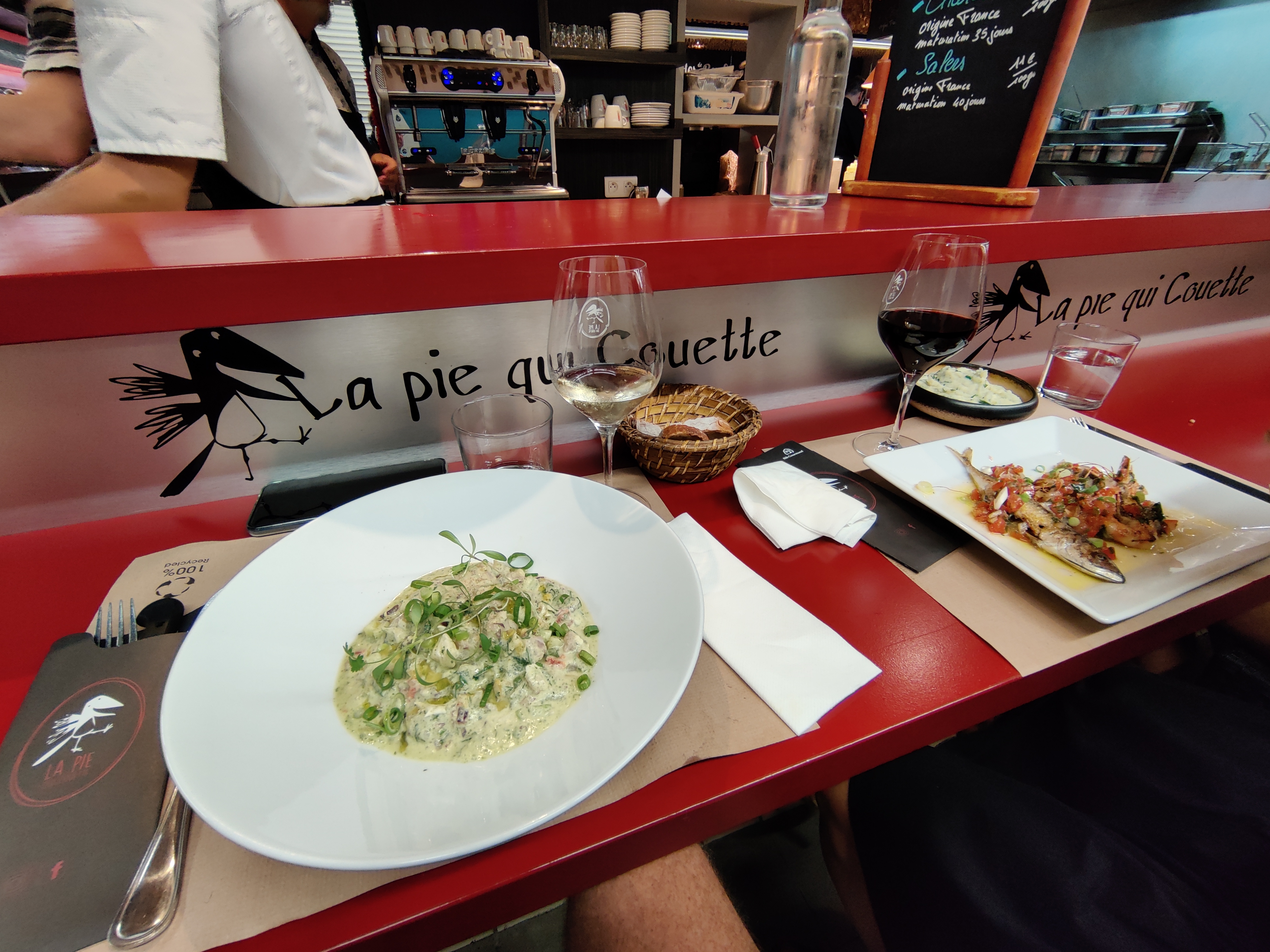 Quel repas ! Nous y avons mangé à 4, au comptoir, avec vue directe sur la cuisine et nous avons été tous les 4 subjugués par tout le talent qui est déployé dans la cuisine de la Pie qui Couette. Bien sûr avec talent rime produits de qualité. C’est une chance inouïe d’avoir un tel restaurant dans Les Halles de Nîmes.