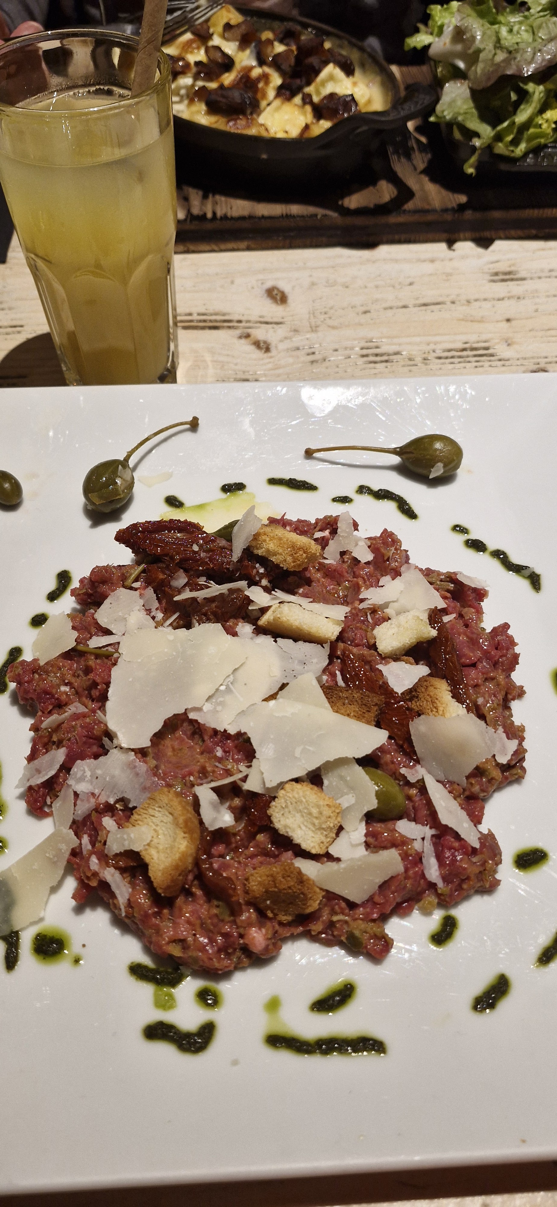 Avis mitigé et déçu de la soirée. La tartiflette était bonne mais je n’ai vraiment pas aimé la pizza qui en plus a été servie tiède (je peux comprendre pour une pizza à la livraison mais pas dans un resto). Pour le goût de la pizza, c’est peut-être un mauvais choix de ma part.