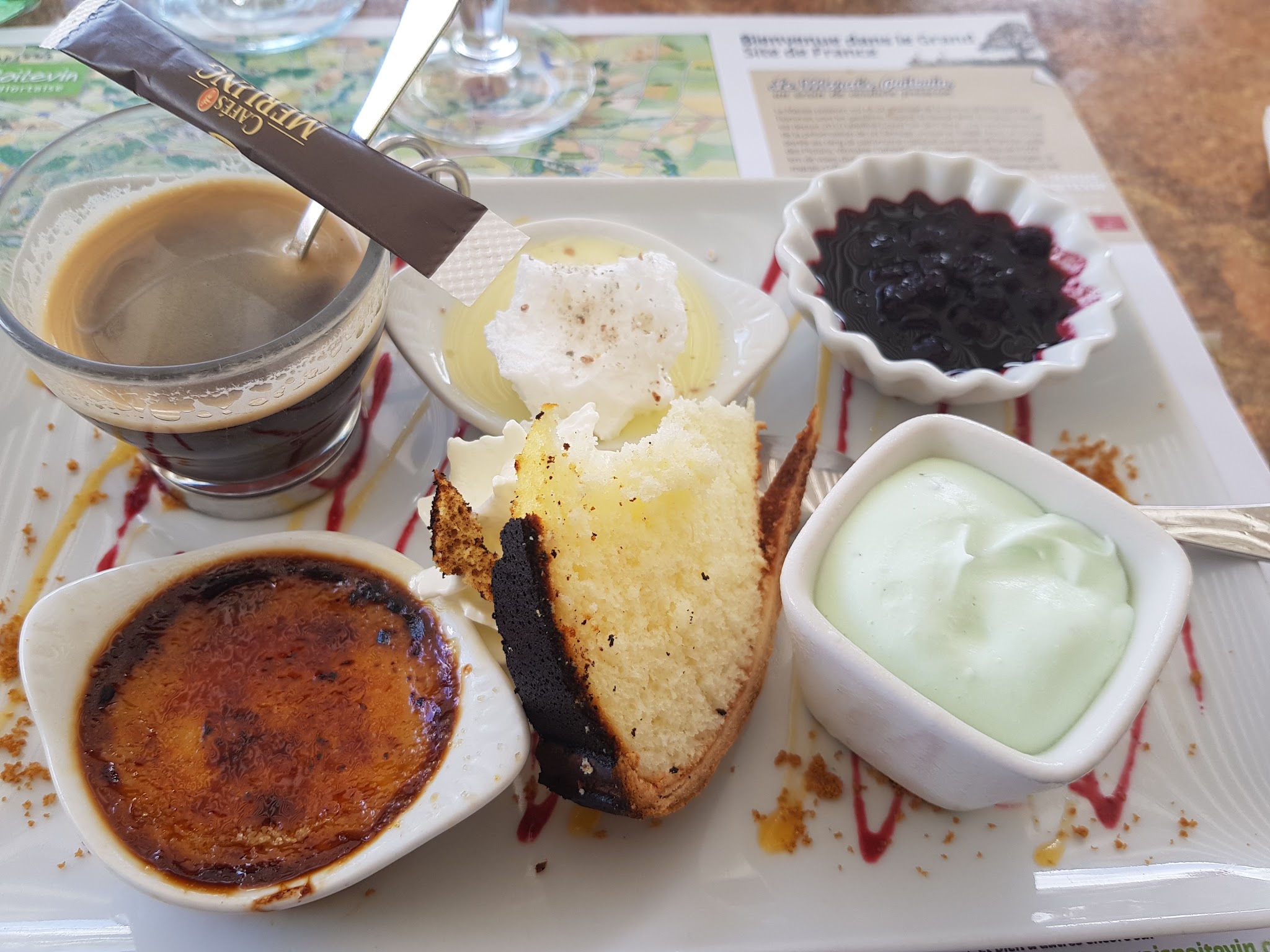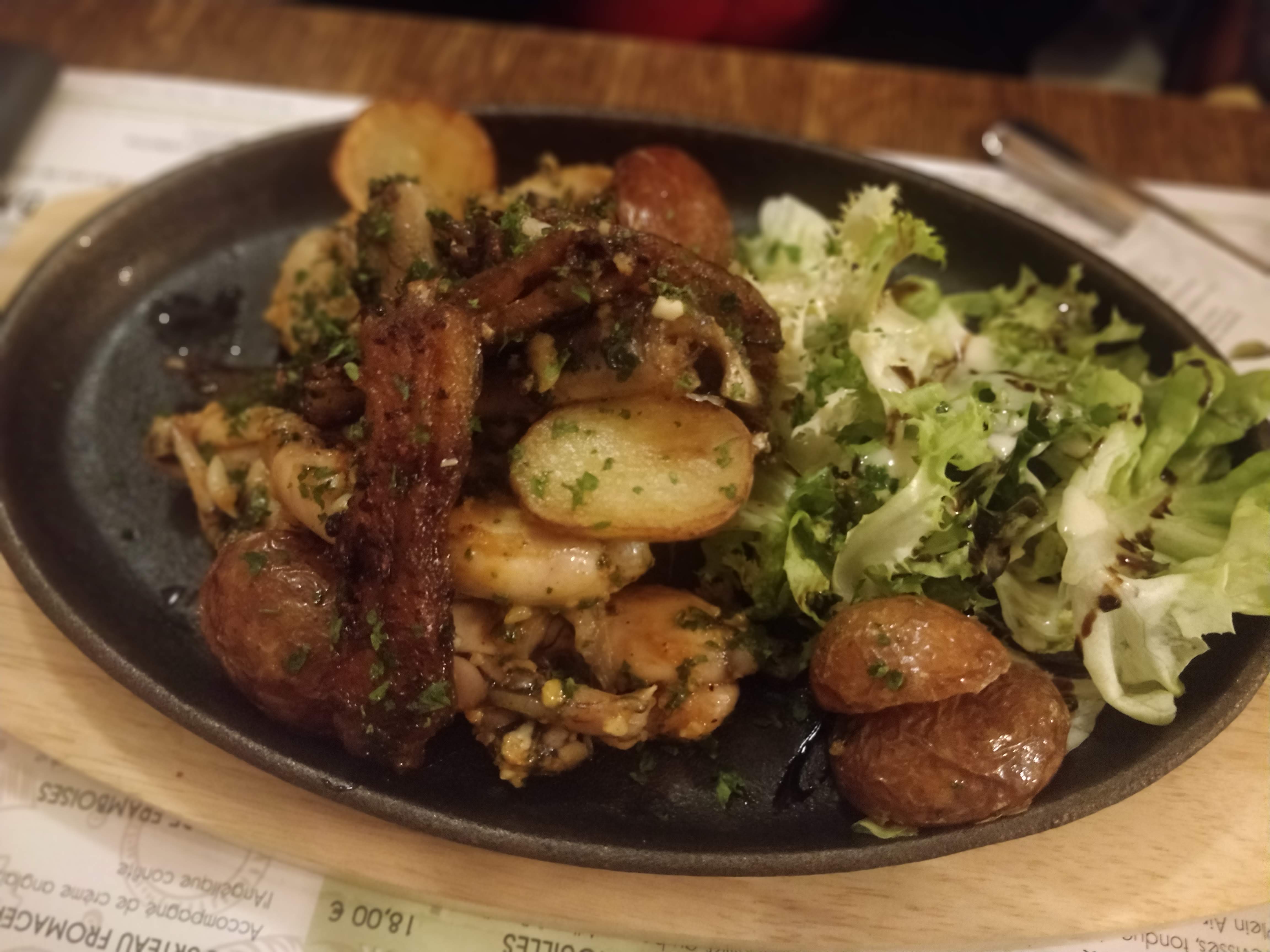 Déçus par les assiettes de grenouilles et anguilles: pas assez en quantité et sans être de gros mangeurs. Profiteroles bons mais 2 petit choux. Service très rapide,voire trop. Dessert pas fini que le café est déjà sur table.