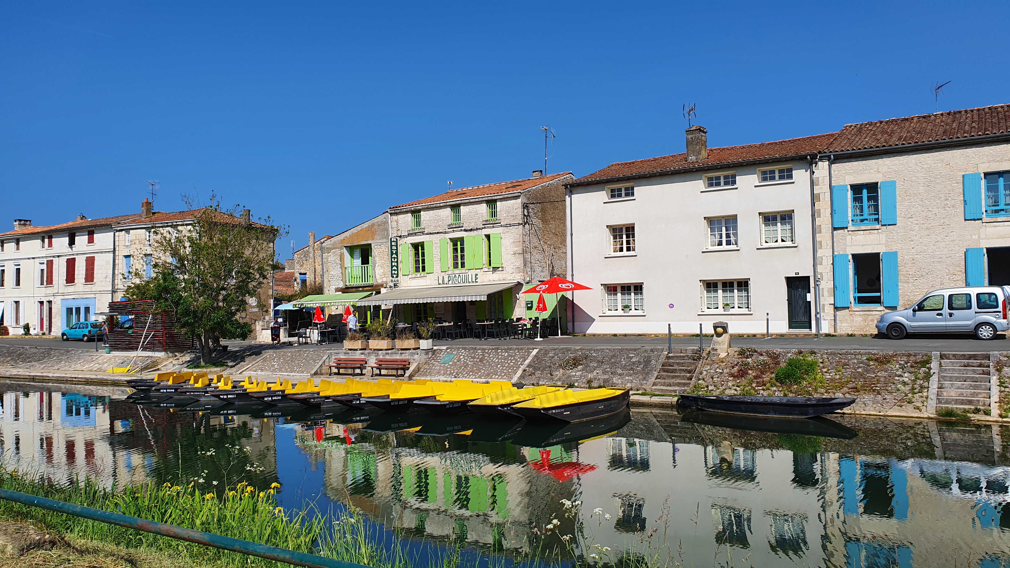 Déjeuner du 24 août. Idéalement situé au bout du quai, à l'écart de l'agitation des embarcations. Un menu complet à 22e sympa. Nous avons toutefois opté pour les spécialités, farci à l'ancienne, duo du marais anguilles et grenouilles tout excellent et les desserts maison succulents. Le 2ème service était bien plus calme aussi bien pour le client que pour le service plus attentionné. Pause agréable après notre visite du matin au parc ornithologique de St Hilaire la Palud à 25mn de Coulon, balade ombragée de 2h. A faire aussi pour les enfants et vraiment très sympathique.
