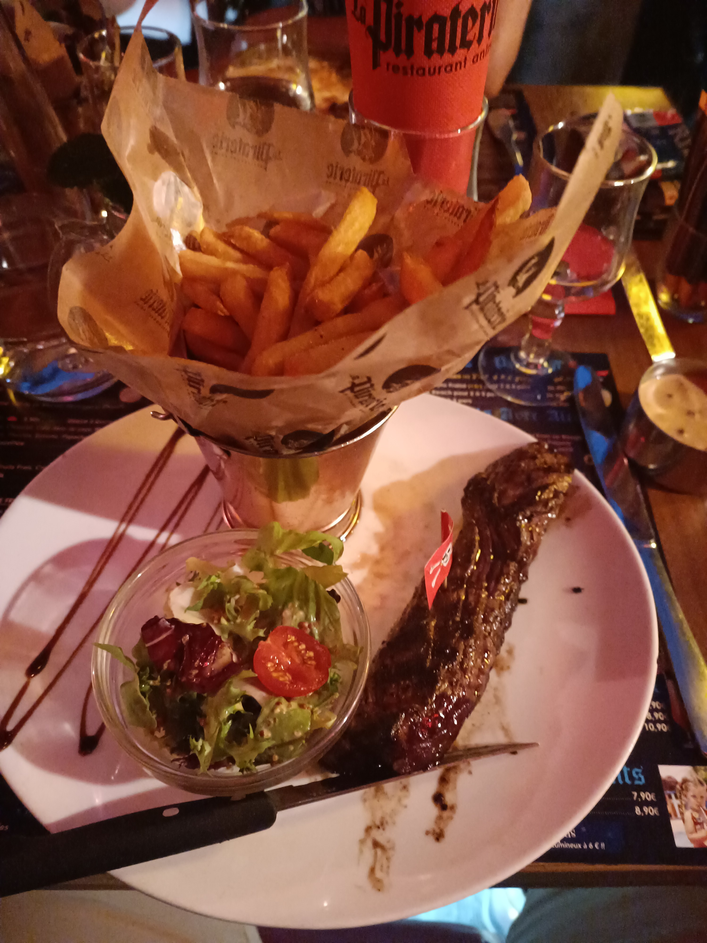 Première fois pour nous à la piraterie. Nous avons été très bien accueillis, serveur plus qu’au top. Attentif, sympathique, et drôle sans jamais être lourd. Parfait. Plat excellent. Très bonne expérience