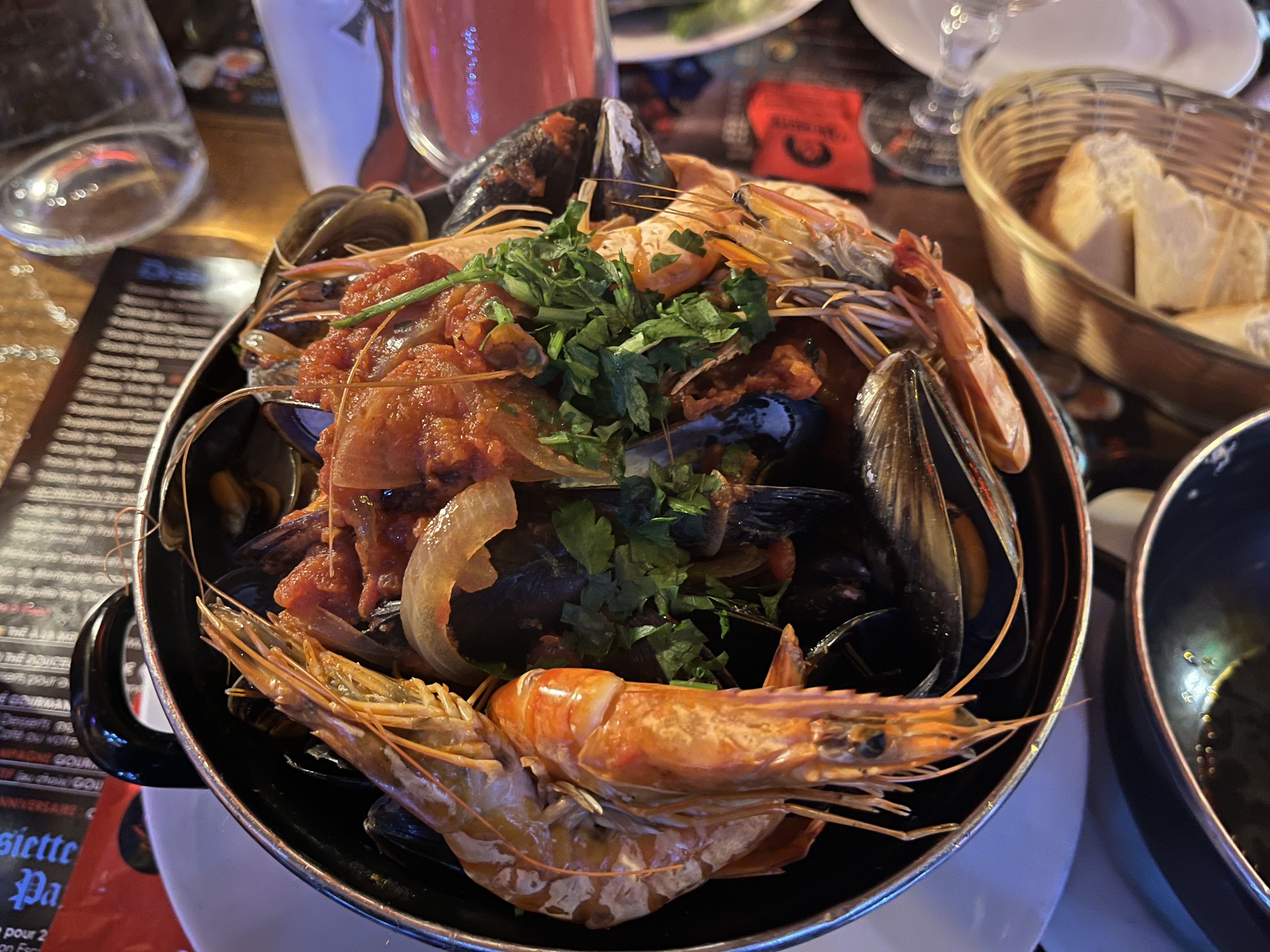 Un service et du personnel très agréable et aimable . Un peu cher mais par contre un regal. Moules a la truffe, au chèvre, aux palourdes juste succulentes. Animation sympa pr un anniversaire et super décor.