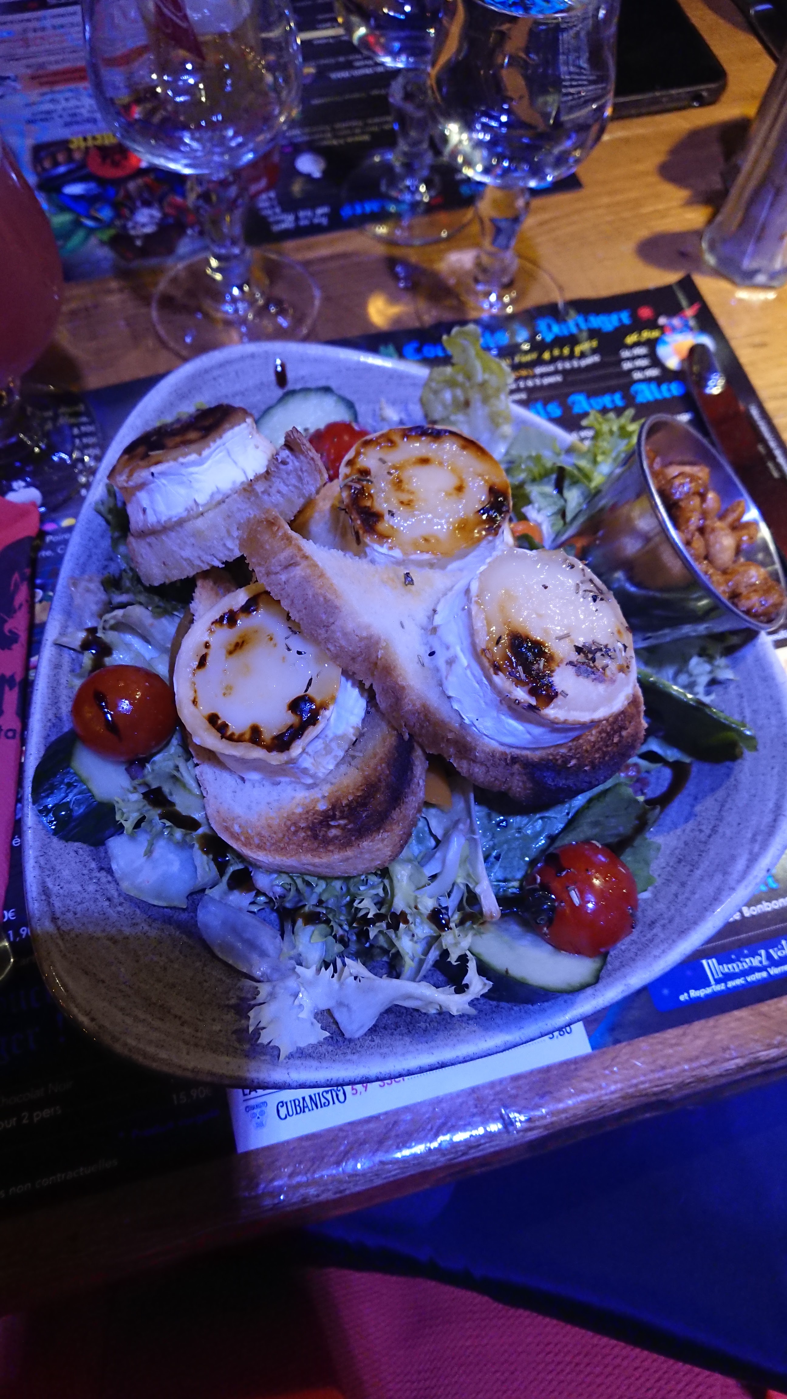 La salade de chèvre chaud pour ma mère pour la fête des mère a été catastrophique il manquait les lardon les poivrons que 2 toasts avec pain grillé rassis pas croustillant de la salade abîmée est non par le vinaigre ma mère n'a rien voulue dire au paiement dommage moi qui l'a prend souvent je les trouvais encore plus petite pour 19€ pour beaucoup de salade 2 fines tranche de chèvres en bûche y avais même pas Herbe de Provence ni miel nous l'avons renvoyé en cuisine est c'est là où il sont vue leur connerie ou après il sont rajoutés ce qui manquait et en changer la salade Puis nous avons pris une planche a partagé pour 4 alors juste 2 tranches de jambon cru 2 grande tranche de saucisson pour 4 personnes déçu de la planche pain grillé Rassi ! A dû en redemander vue le prix de la planche je me demande si les personnes en cuisine vérifie bien les plats avant de partir en salle même la table a côté de nous il en renvoyé 2 fois leur plat en cuisine Pour la fête des mère en ne mangera plus ici ma mère a été très déçu