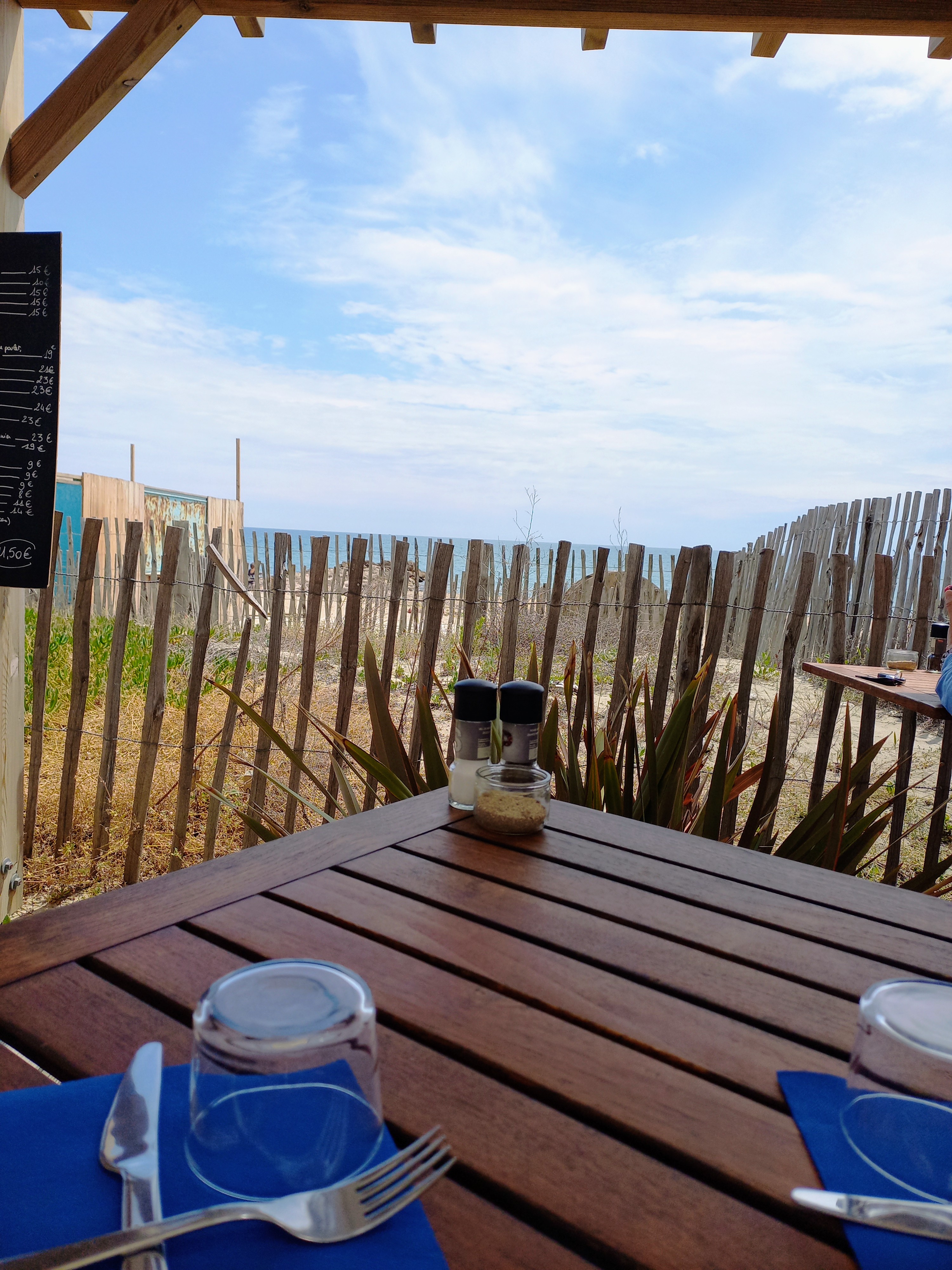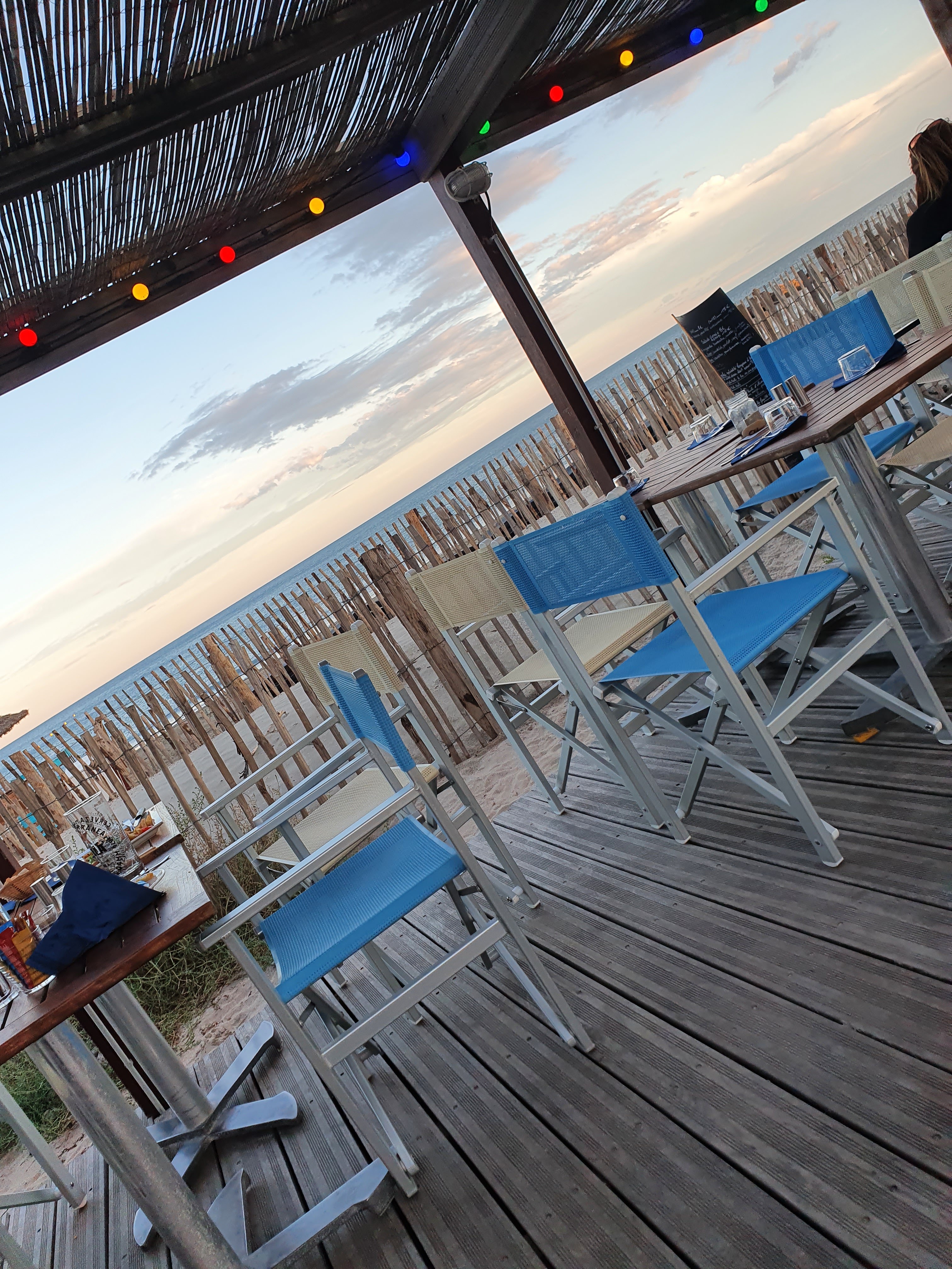 Restaurant sur la plage avec une belle vue mer sans être gêné par la dune. Plats sympathiques assez copieux avec une touche d exotisme. dommage il manquait le plat que je voulais mais les seiches étaient bonnes. Gourmande un plus pour le dessert croquant banane chocolat très bon...service parfait et sympa. Le prix est correct pour un restaurant plage. Vous pouvez manger des pow bol bien copieux permettant d alléger votre note et votre ligne. Amateur de rhum arrangé vous pouvez venir le déguster en regardant la mer. Le plus des transats a louer avec un côté snack sur la plage mais séparé du resto.