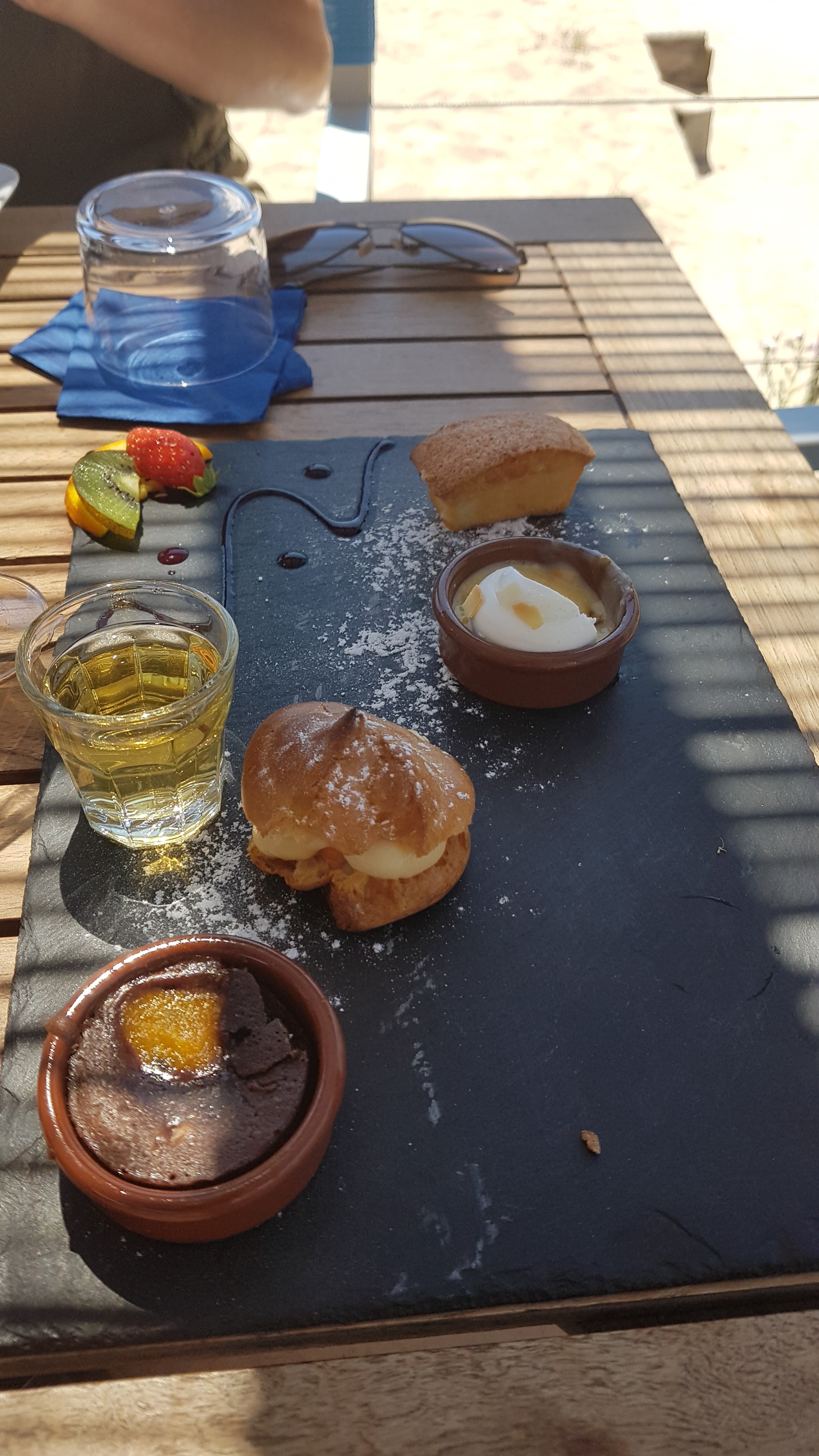 Points positifs: cadre agréable avec vue sur mer et serveurs serveuses super souriants👍👍👍 Points négatifs: j'ai été malade (je vous passe les détails) donc obligée d'enlever des étoiles surtout que les plats sont vraiment pas ouf et chers!!! Jai pris une seiche a peine cuite (jai demandé de recuire d'ailleurs),surgelée j'imagine vu la texture... bref jai rien dit sur.le coup mais je n'imaginais pas la nuit que j'allais passer!!! Jai juste aimé le café gourmand avec sa petite salade de fruits frais etc