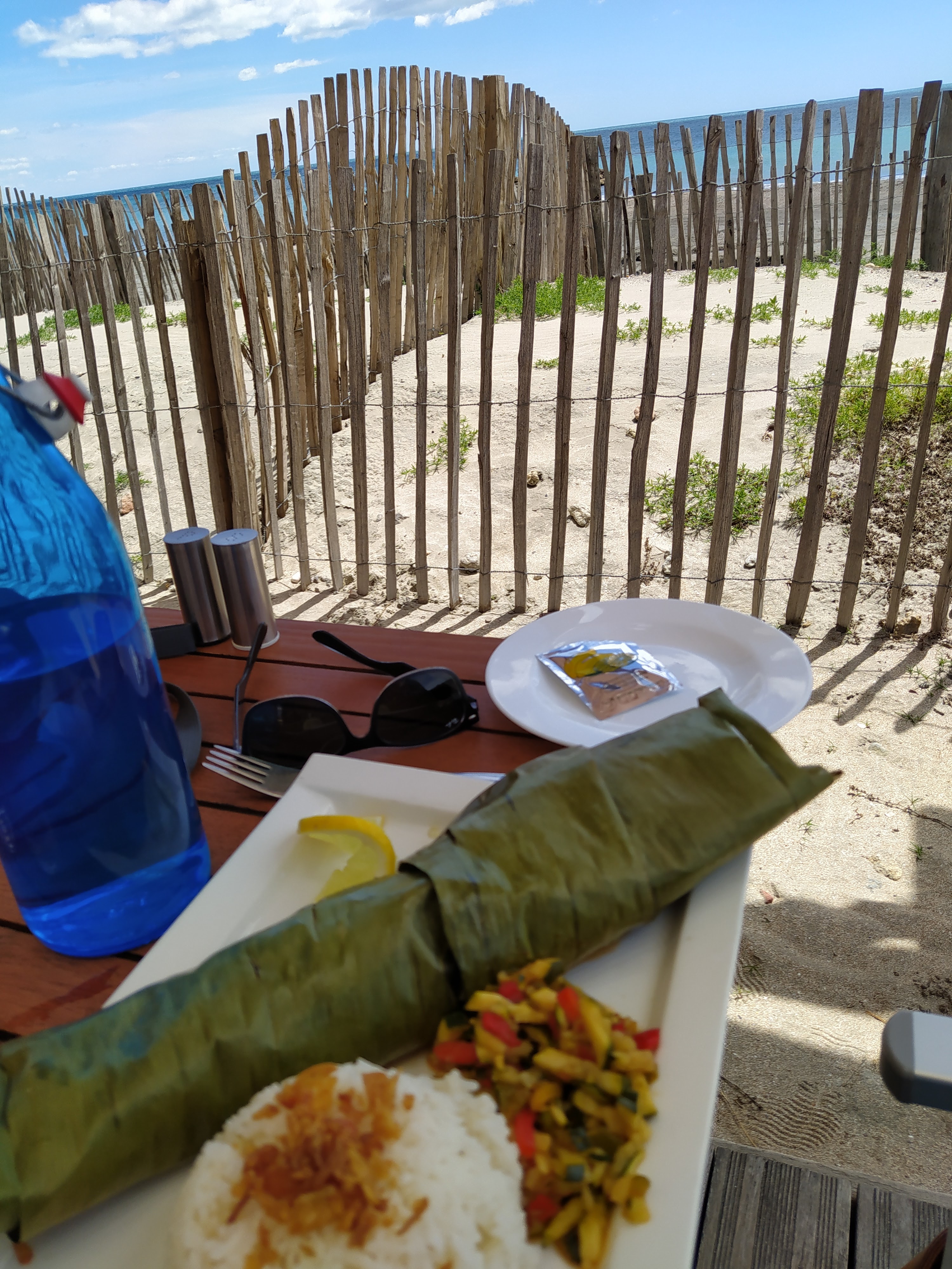 Exotique. Repas délicieux avec une touche d’exotisme. Tous les serveurs sont souriants et toujours avec un mot gentil. L’emplacement au bord de la plage est vraiment super.