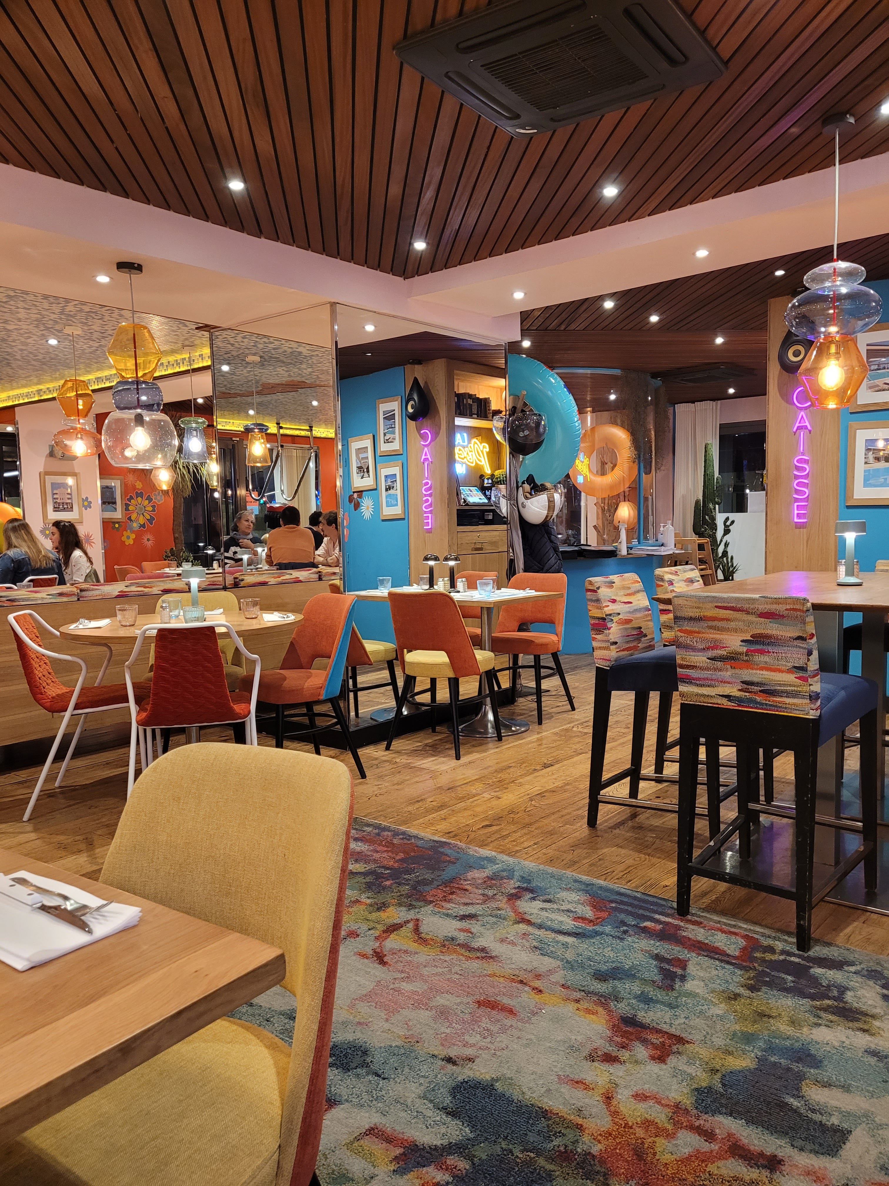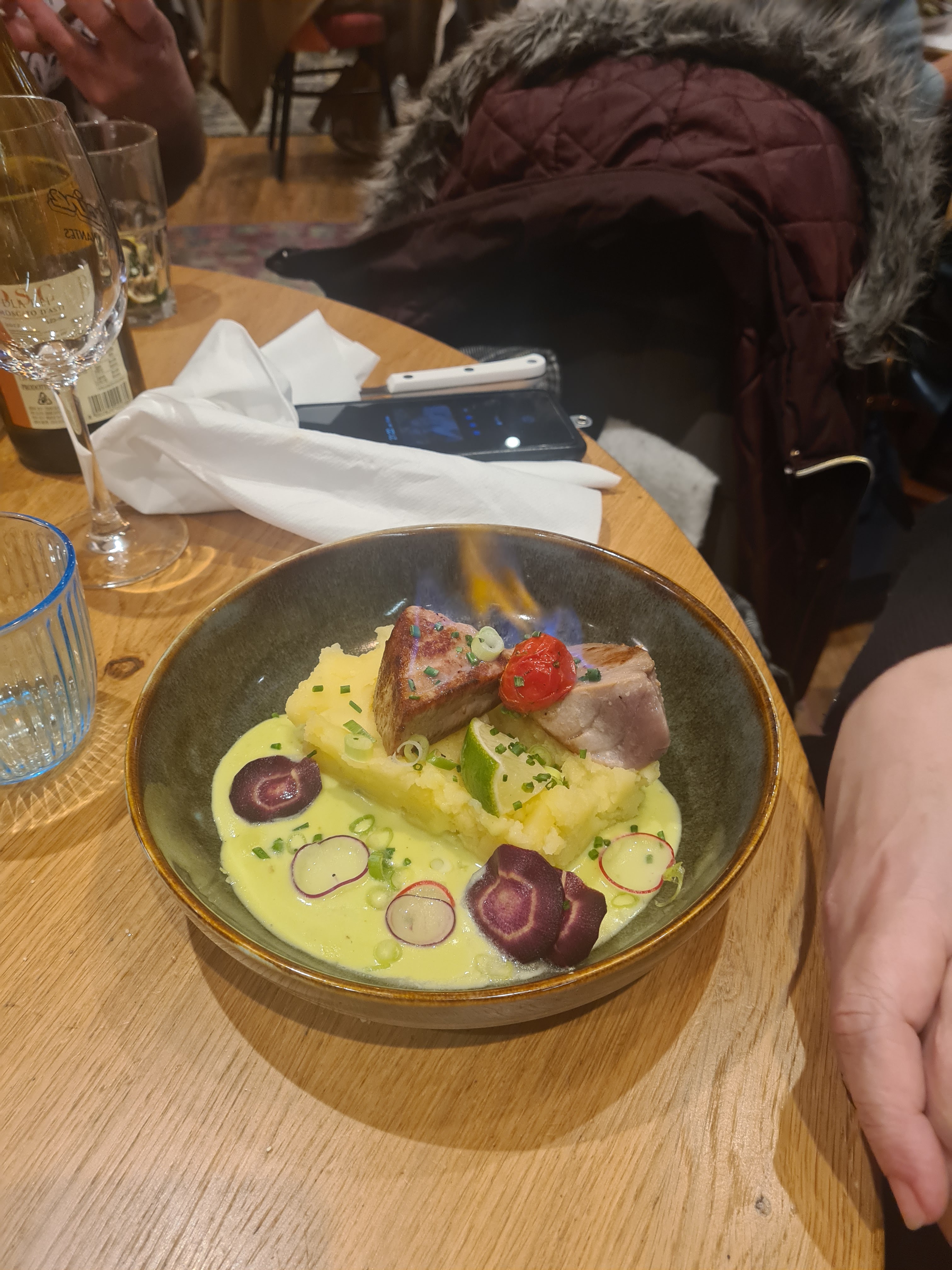 La cuisine est bonne et la déco très sympa. En revanche, j’ai diné deux fois là-bas, et les deux fois (avec différentes personnes) nous avons été choqués de l’empressement avec lequel on nous pousse à passer commande alors que la table n’était pas réservée derrière nous. A peine le temps de s’installer et encore moins de passer aux toilettes se laver les mains qu’on nous demande si on peut prendre notre commande : non désolés nous n’avons pas eu le temps de regarder la carte. 5min après rebelote alors que nous sommes en train de lire la carte (qui est assez longue). 3 fois comme ça. Nous prenons un apéritif (des cocktails) et les plats arrivent en même temps… Pas le temps donc de discuter autour d’un apéro avant de manger. Ensuite, très rapidement le serveur vient nous voir pour savoir si il peut nous débarrasser alors que nos assiettes ne sont même pas terminées. Et même rengaine pour passer la commande pour les desserts. C’est très désagréable alors que pourtant nous ne sommes pas dans l’abus à laisser traîner les repas. Par ailleurs, après chacun ses goûts , mais pour le coup je trouve que ça dénote avec l’ambiance du resto : 3 anniversaires fêtés ce soir-là avec extinction des lumières à chaque fois et du Patrick Sébastien à fond dans le resto pour apporter le gâteau… 😬 En résumé, 2 repas ici et je m’arrêterai là, je n’irai pas jusqu’à 3. Dommage.