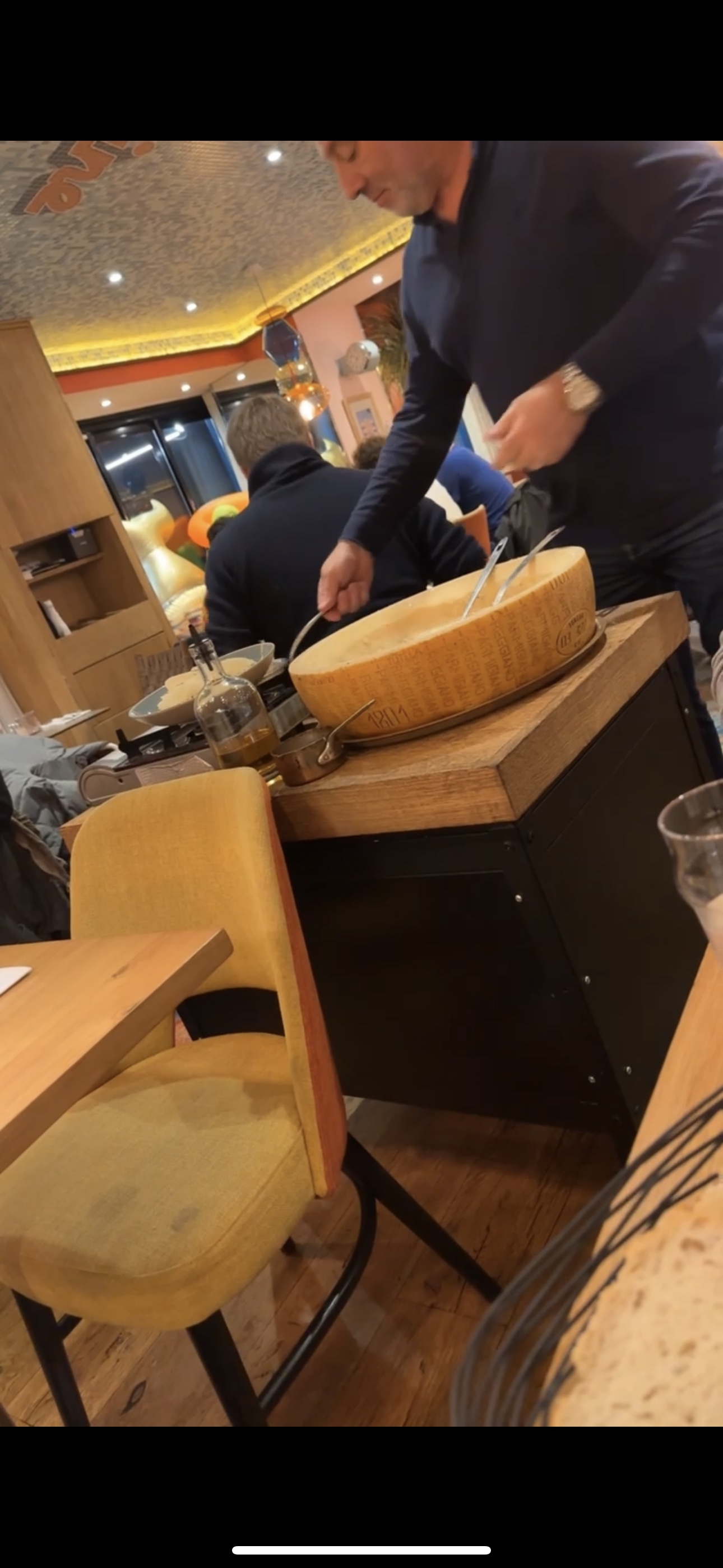 Restaurant qui vaut le détour ! Les pâtes à la truffe sont un délice. Fait directement devant vos yeux dans une meule de fromage flambé à l’alcool. J’en ai encore l’eau à la bouche… 🤤 Cependant je ne mets que 4⭐️ car je trouve la musique trop forte : impossible de s’entendre beaucoup parler. Ce qui est dommage pour un resto…