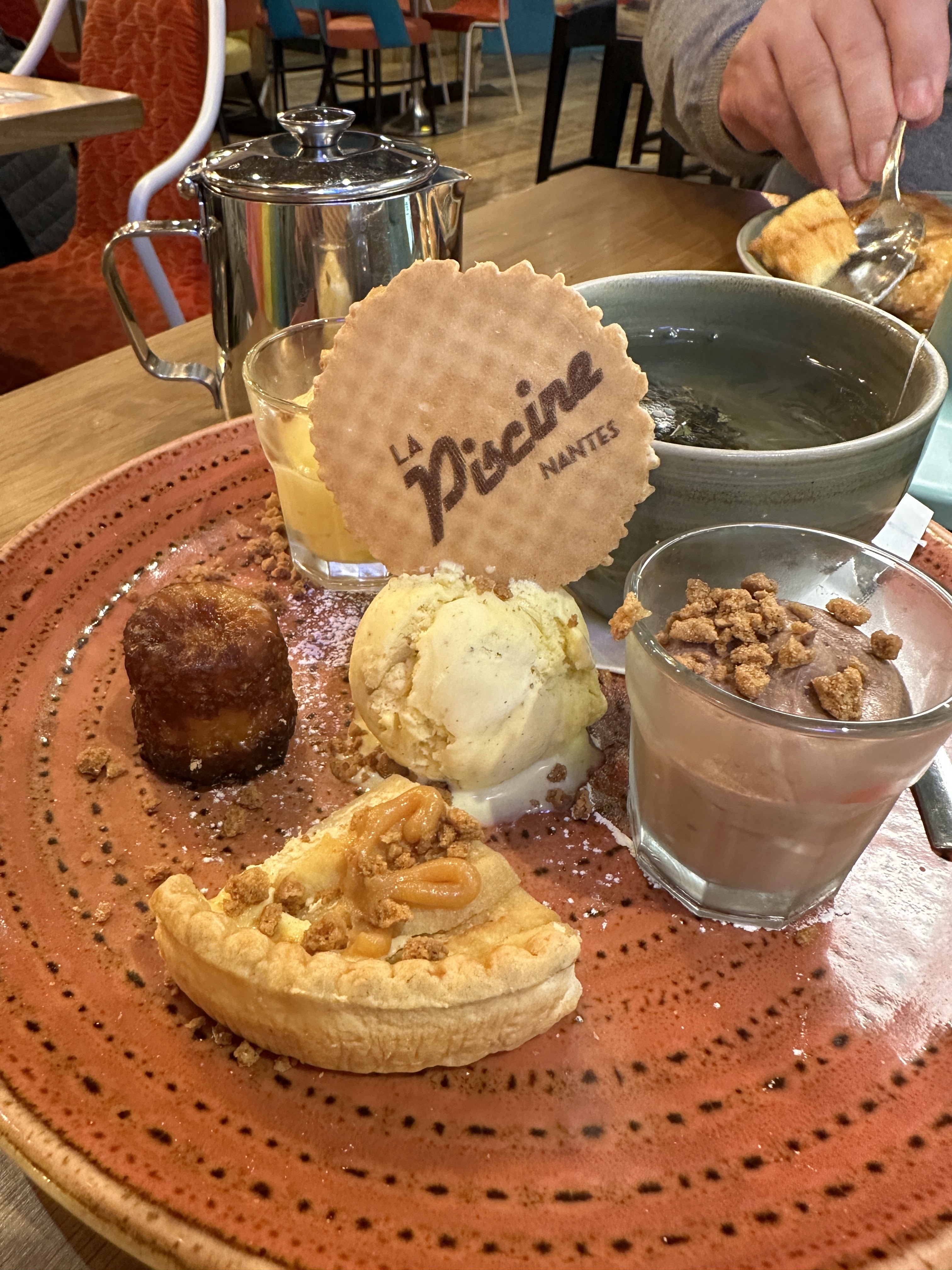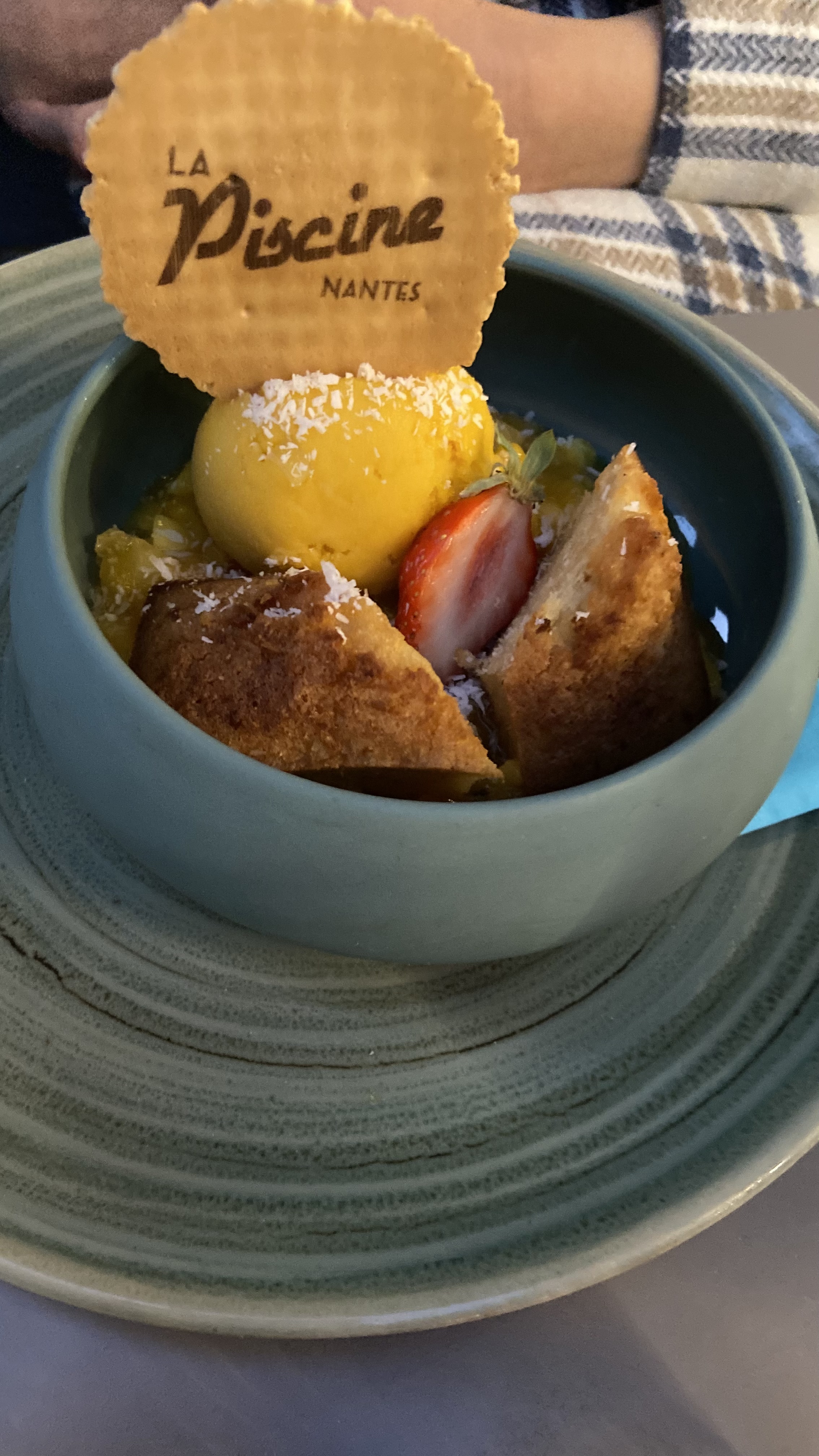 Encore une belle découverte à Nantes ! Ce resto est renversant à tous points de vue... Le fond de la piscine est le plafond carrelé ou en caillebotis, la déco aux teintes colorées et aux petits détails recherchés est vraiment superbe. Bravo! Accueil agréable. Formule plat + dessert très abordables et bons. A découvrir !