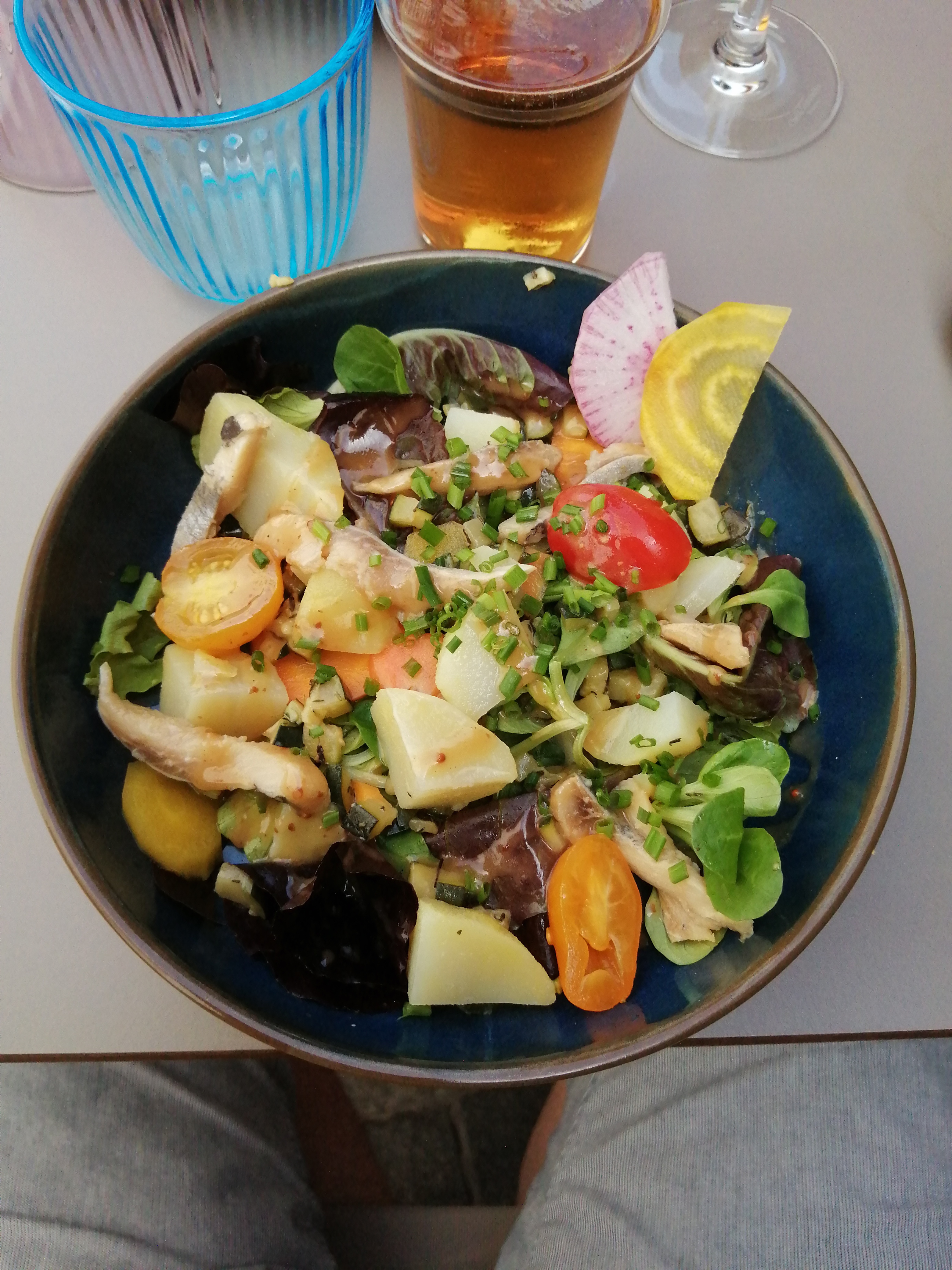 J'ai récemment découvert ce restaurant par hasard lors de mon passage à Nantes. Le décor est vraiment sympathique et coloré. Bon accueil, nous avons dîner en terrasse. Le serveur très pro. Service rapide. Nous avons testé la salade césar assez copieuse, très bonne. Merci.