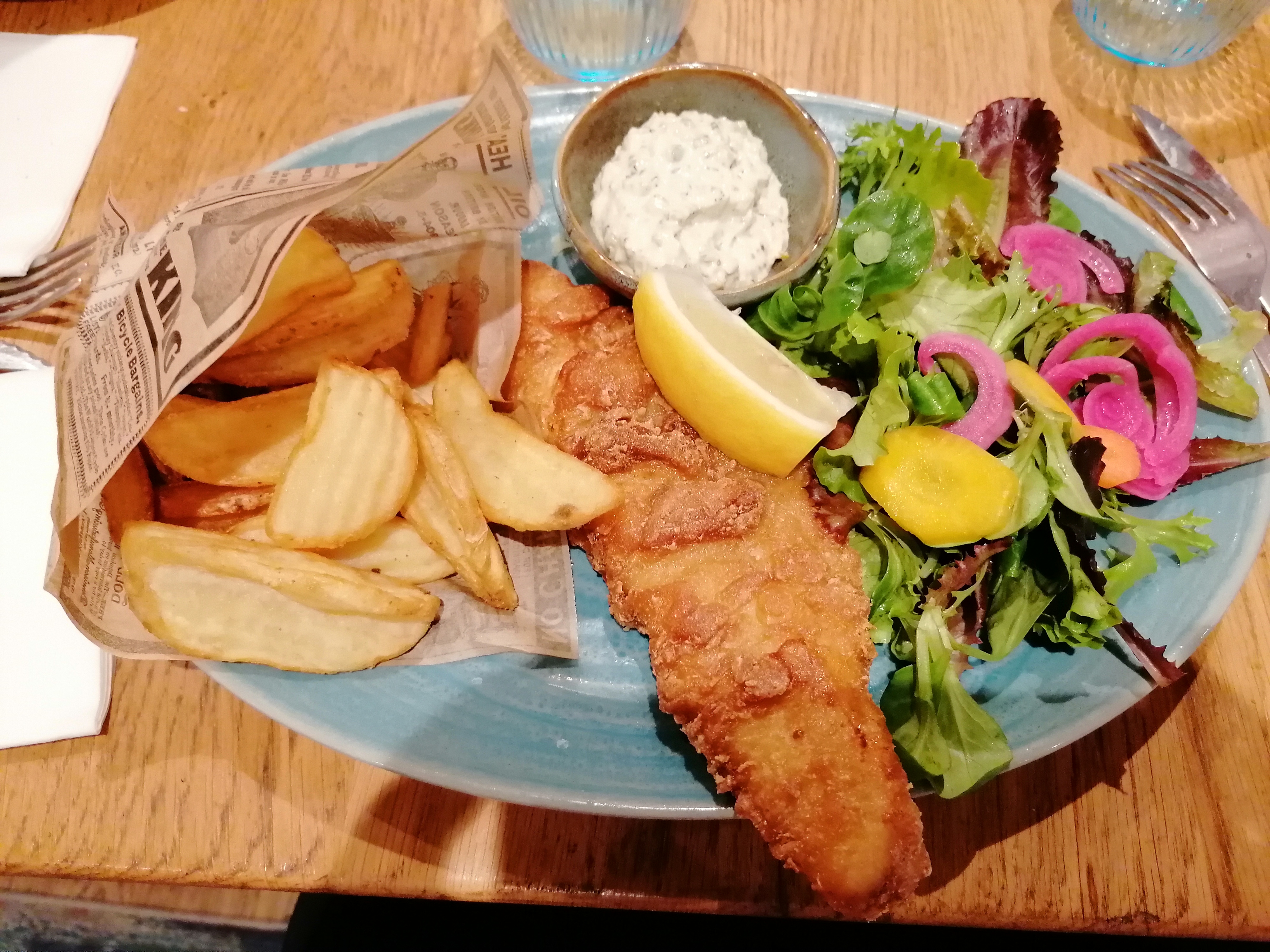 Délicieux fish and chips ! Que je recommande vivement. Un des meilleurs que j’ai mangé sur Nantes ! Les pommes de terres/frites maison sont également délicieuses. Je recommande, à emporter ou sur place pour profiter de la déco complètement décalée qui rend l’endroit unique !
