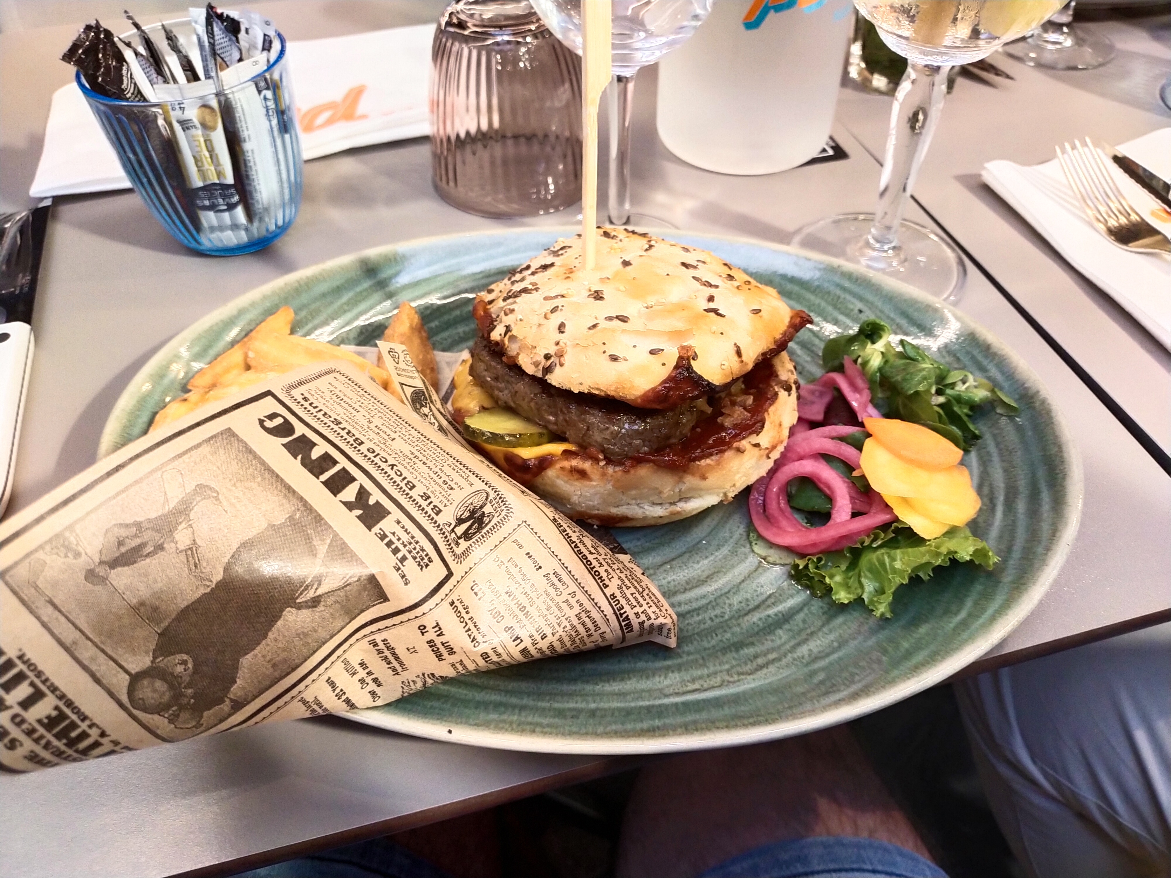 Un très bon restaurant! On a pris des burgers, ils étaient tous très bons! Les desserts étaient bons aussi. Le service est très bien. Le serveur était très aimable et sympa! La décoration est belle. Je recommande.