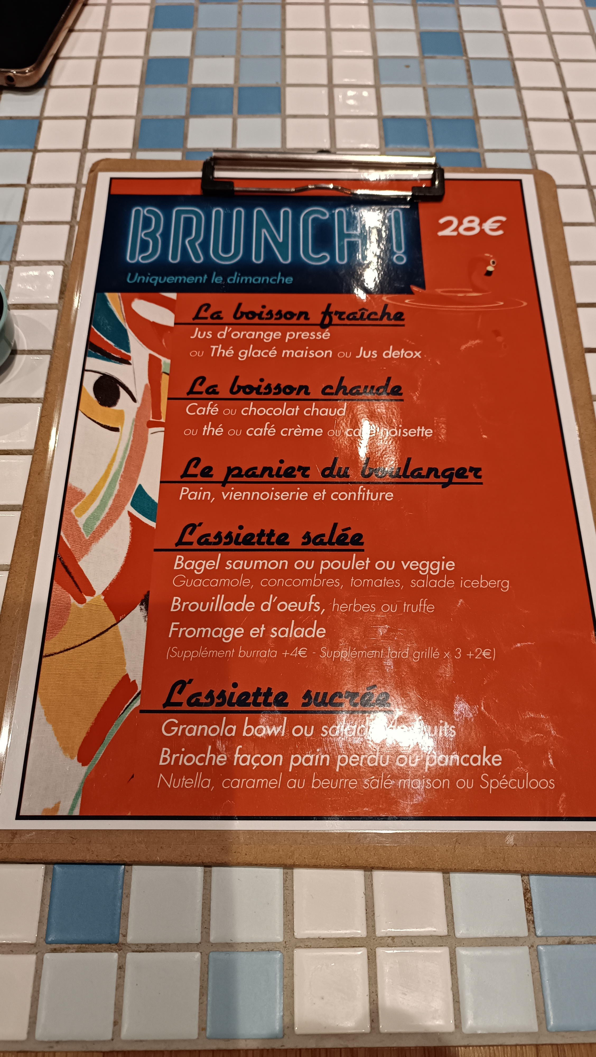 Bonne expérience que nous découvert dimanche dernier. C est copieux comme l attestent les photos et il n y a pas trop d attente malgré le monde (réserver semble indispensable). A 25 euros le brunch (fourchette de prix assez haute donc...) on pourrait néanmoins avoir un verre de jus d orange un peu plus grand et que le café puisse etre amené sur la fin du repas car pour ma part je l ai bu froid car je termine par le café.