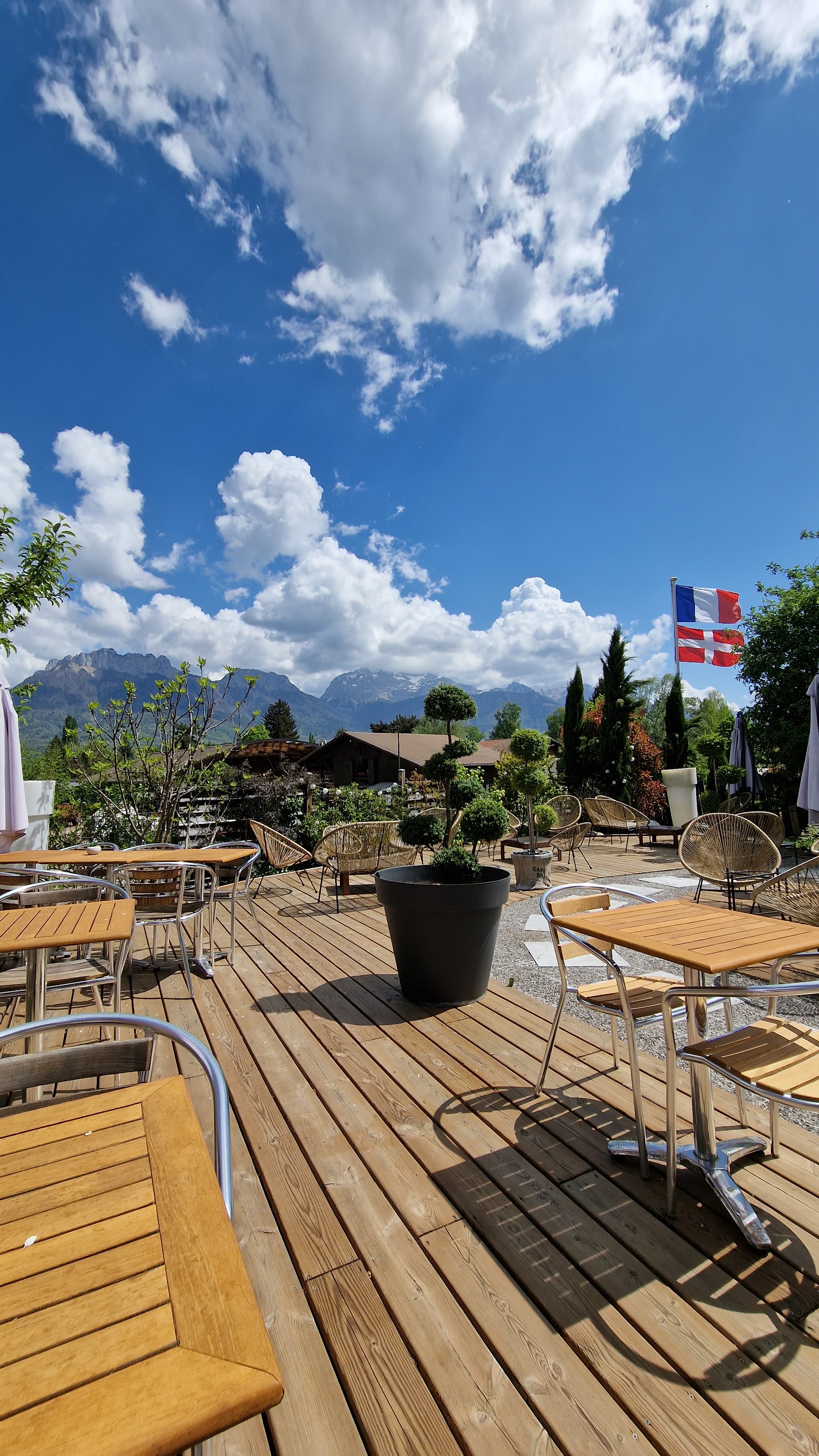 Nous sommes venues avec deux amies, un peu par hasard pendant une balade à vélo et nous n'avons pas étés déçues : une vue imprenable face aux montagnes, (même une petite vue du lac) tout en dégustant une belle planche apéro bien garnie avec une bonne bière locale! L'accueil est chaleureux et intimiste, la personne qui nous a servi était très sympathique et de bon conseil pour le choix de la bière! Vraiment un très bon moment ! Je recommande et je reviendrai très vite c'est sûr !