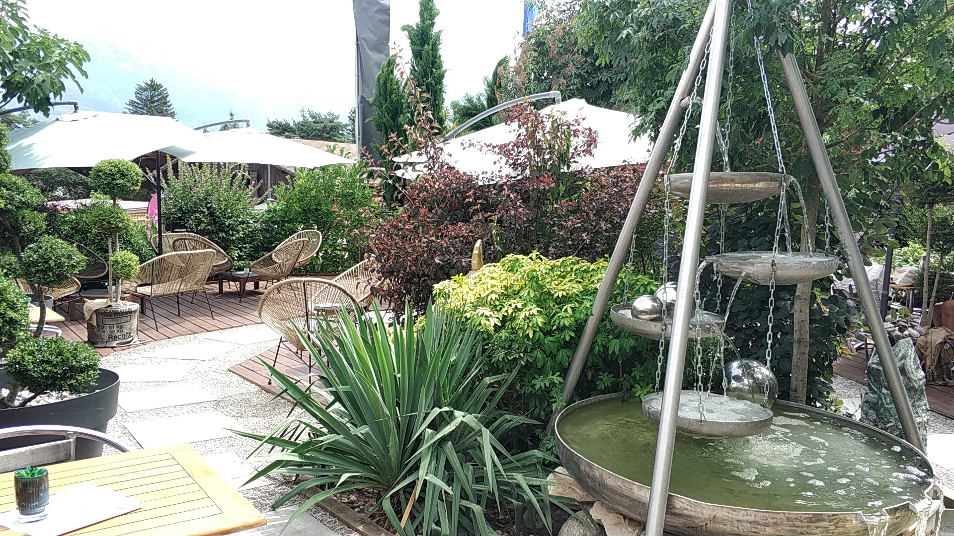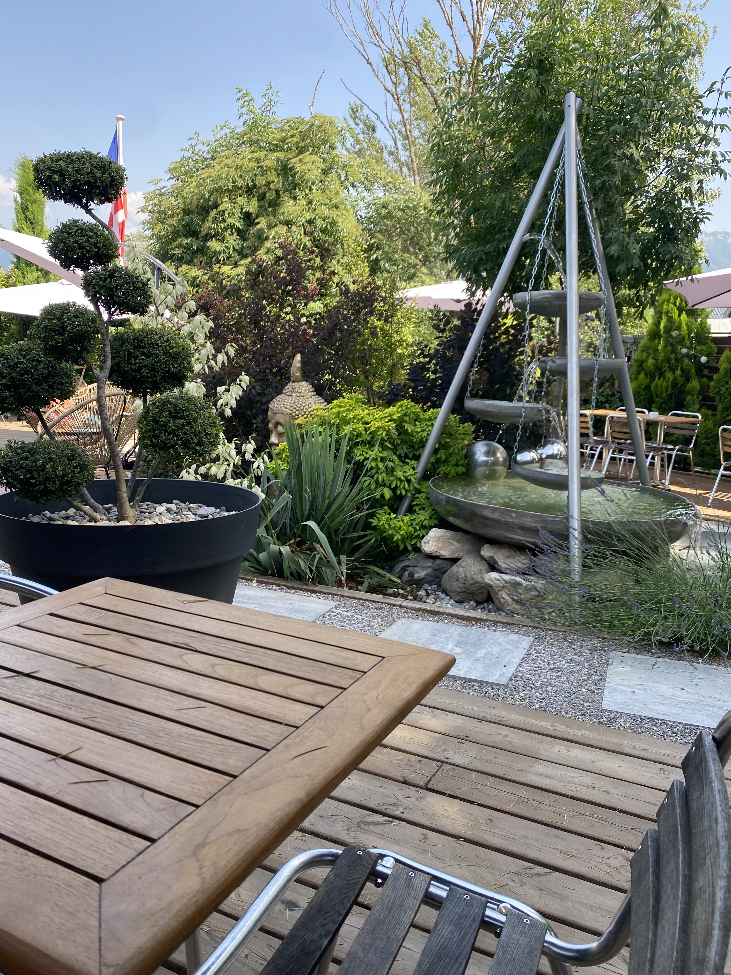 C’était une SUPER découverte! Staff accueillant, vue imprenable sur les montages! Lieu charmant, nous avons apprécié la fontaine et les buissons chantant! 😅 A refaire absolument!!