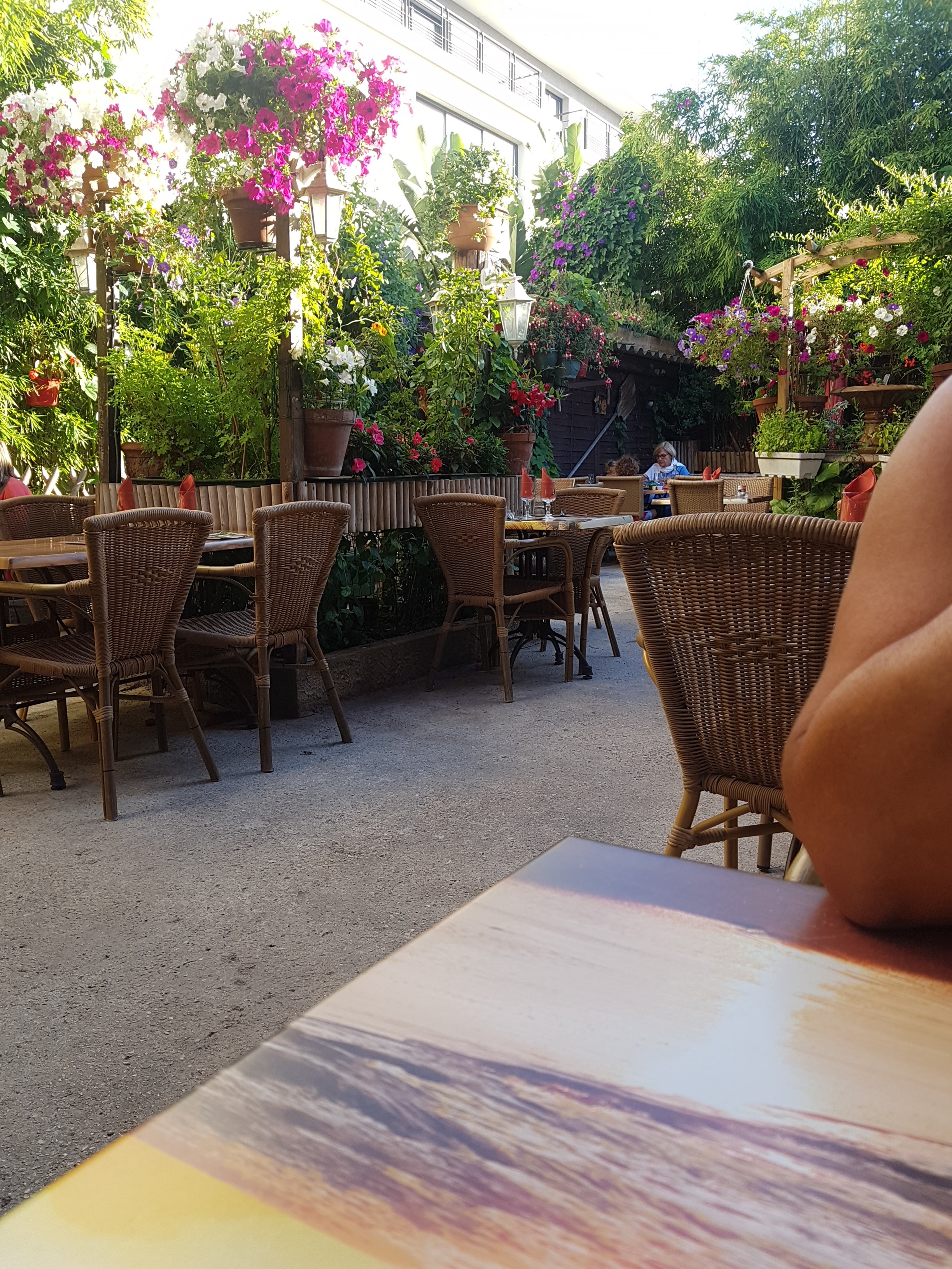 Jardin magnifique , intérieur très familial , plats bien garnis au prix tres raisonnable , accueil et service au top , je recommande fortement !
