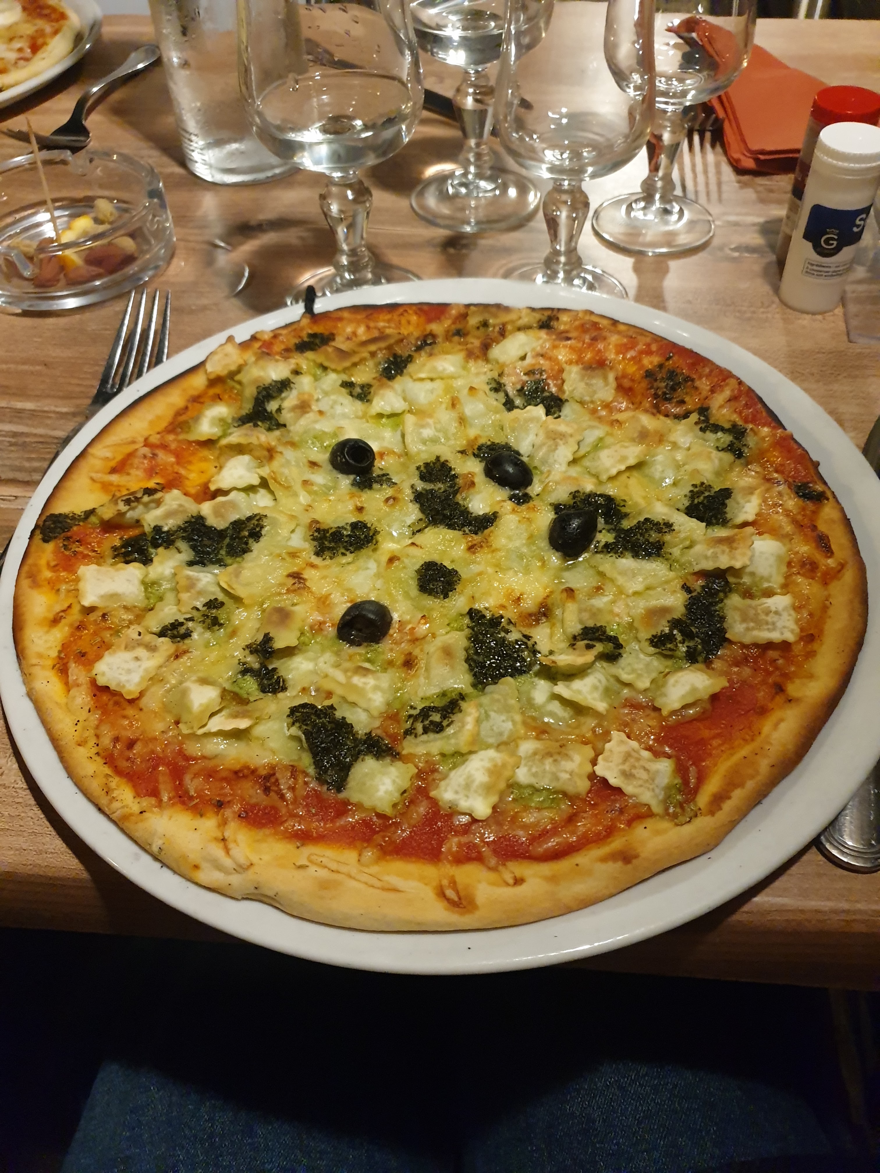 La pizza au ravioles, un pur délice … Le personnel vous accueille avec le sourire, dans un magnifique, jardin, fleuri et ombragé Je recommande à 100 % 👍🏻