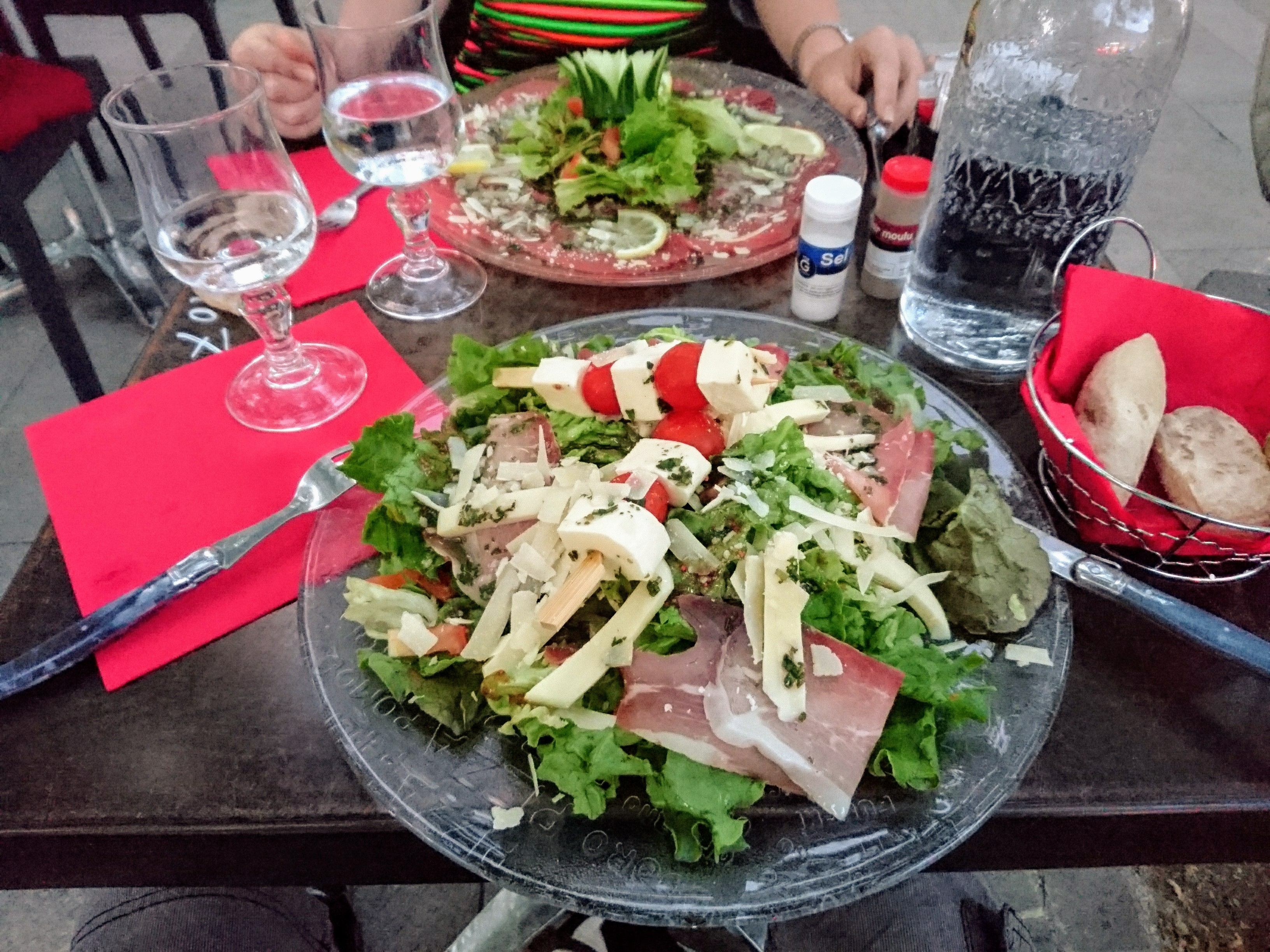 Repas agréable en terrasse en soirée. Tables bien espacées pour manger en intimité. Juste deux salades commandées sans boissons. Une grande Salade Italienne (~12€) et un Carpaccio de Boeuf (~12€) servis en quantité et bien assaisonnés. Service correct.