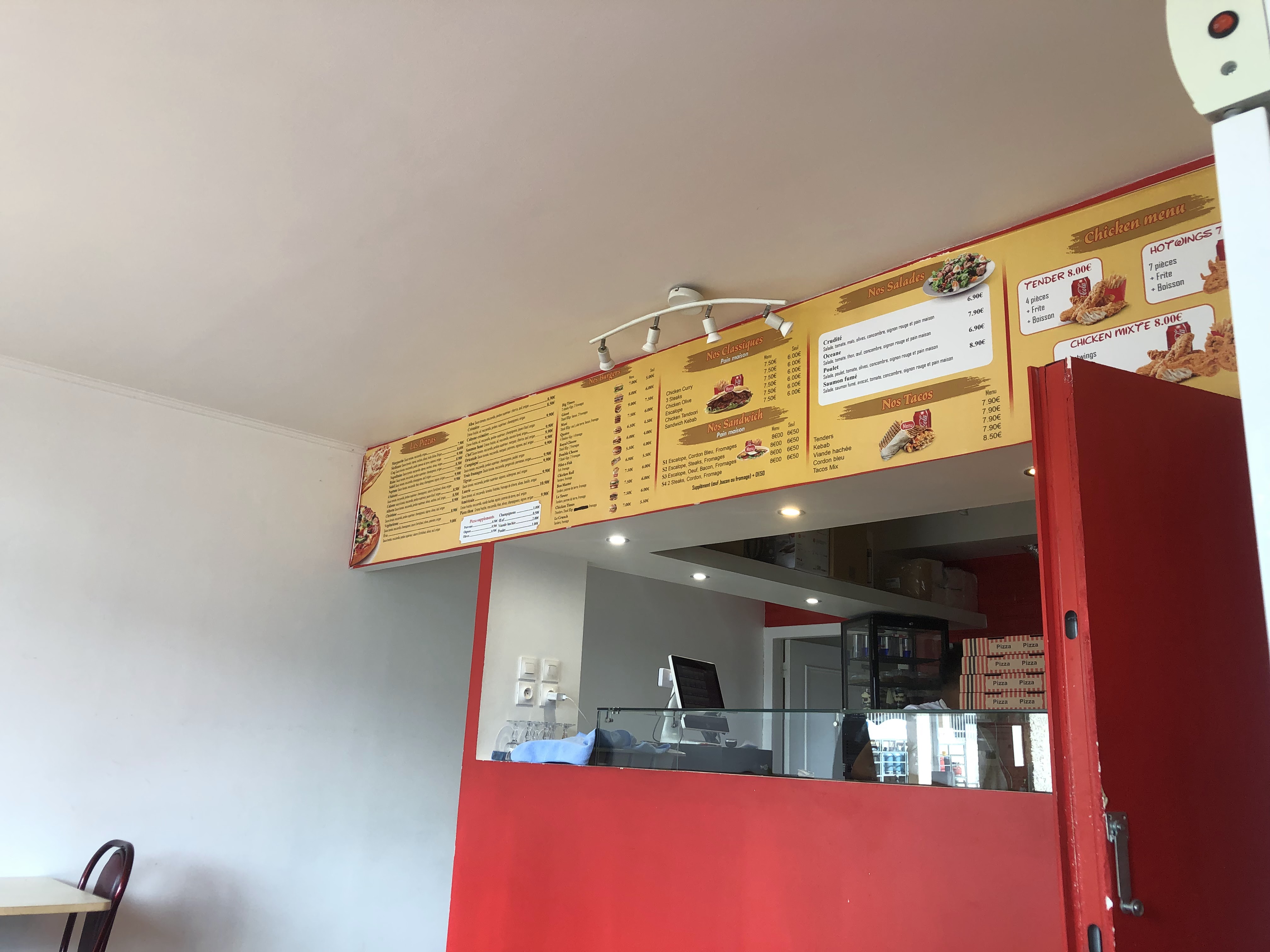 Très bonnes pizzas pâte fine ,les tacos sont très bons et les sandwichs au poulet tandoori trop bon on se régale je recommande vivement personnel très sympathique