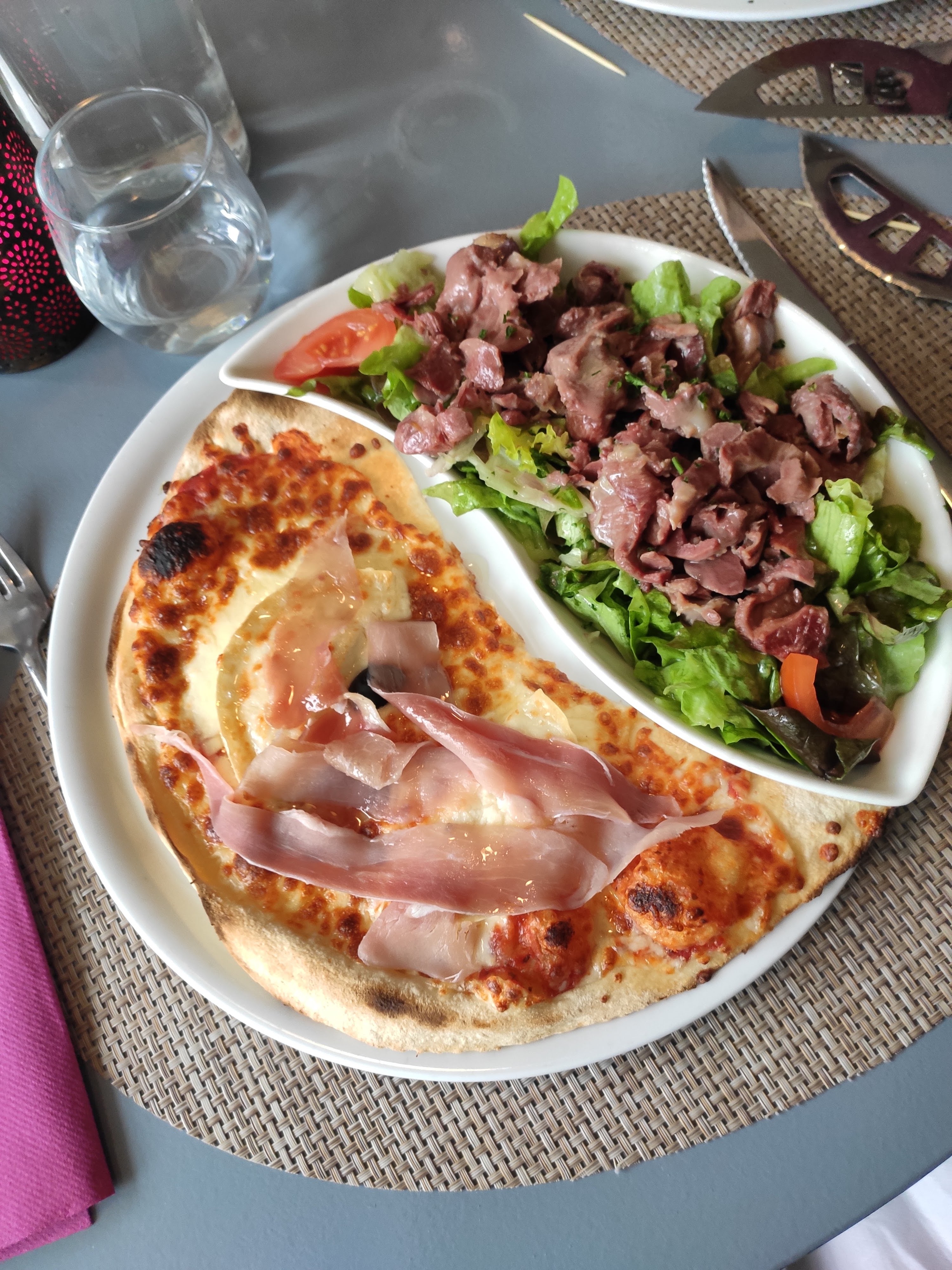 Endroit très sympa avec personnel à l'écoute et en plus très bon l'idée de demi pizza avec salade ma bien plu .