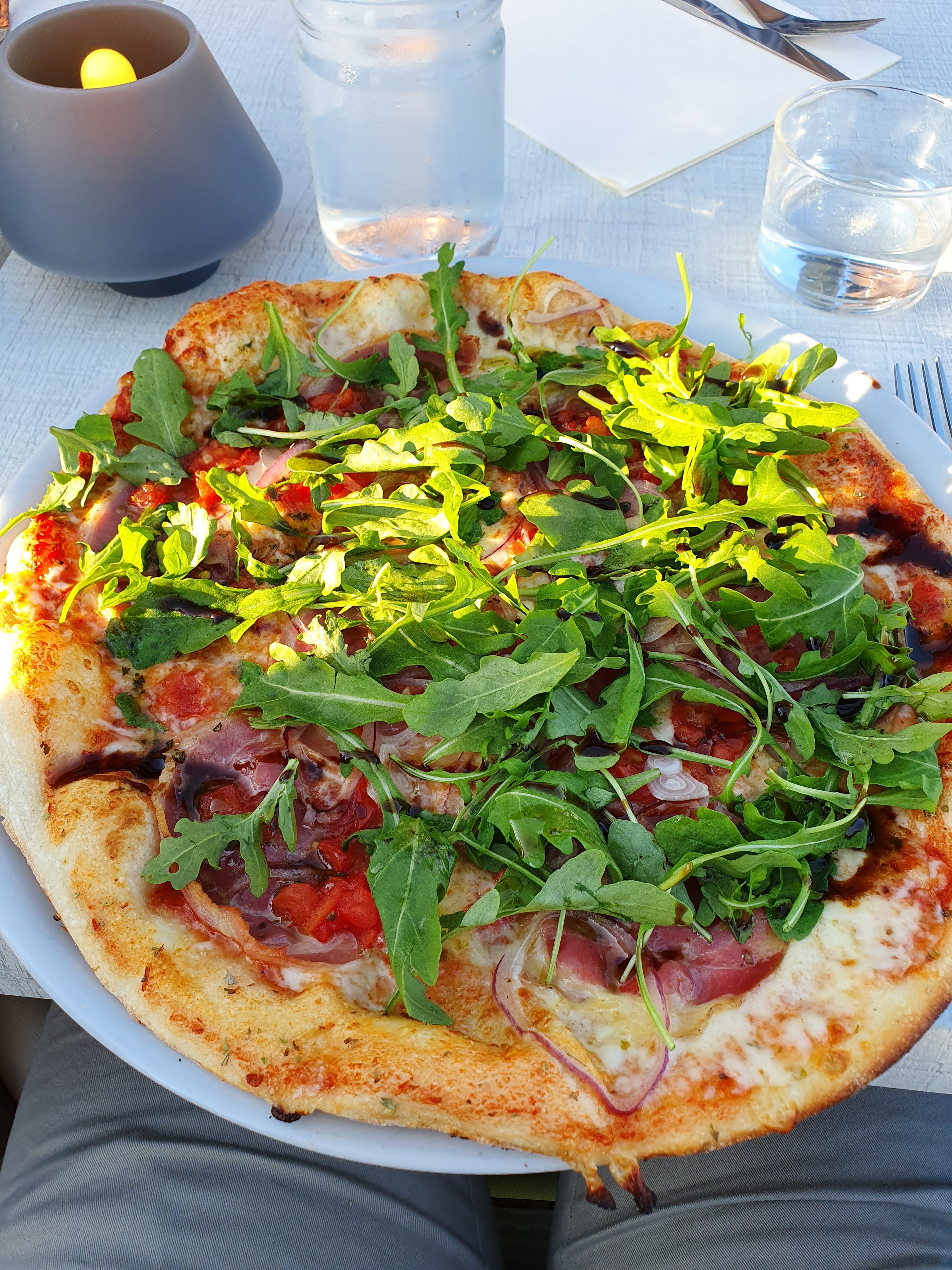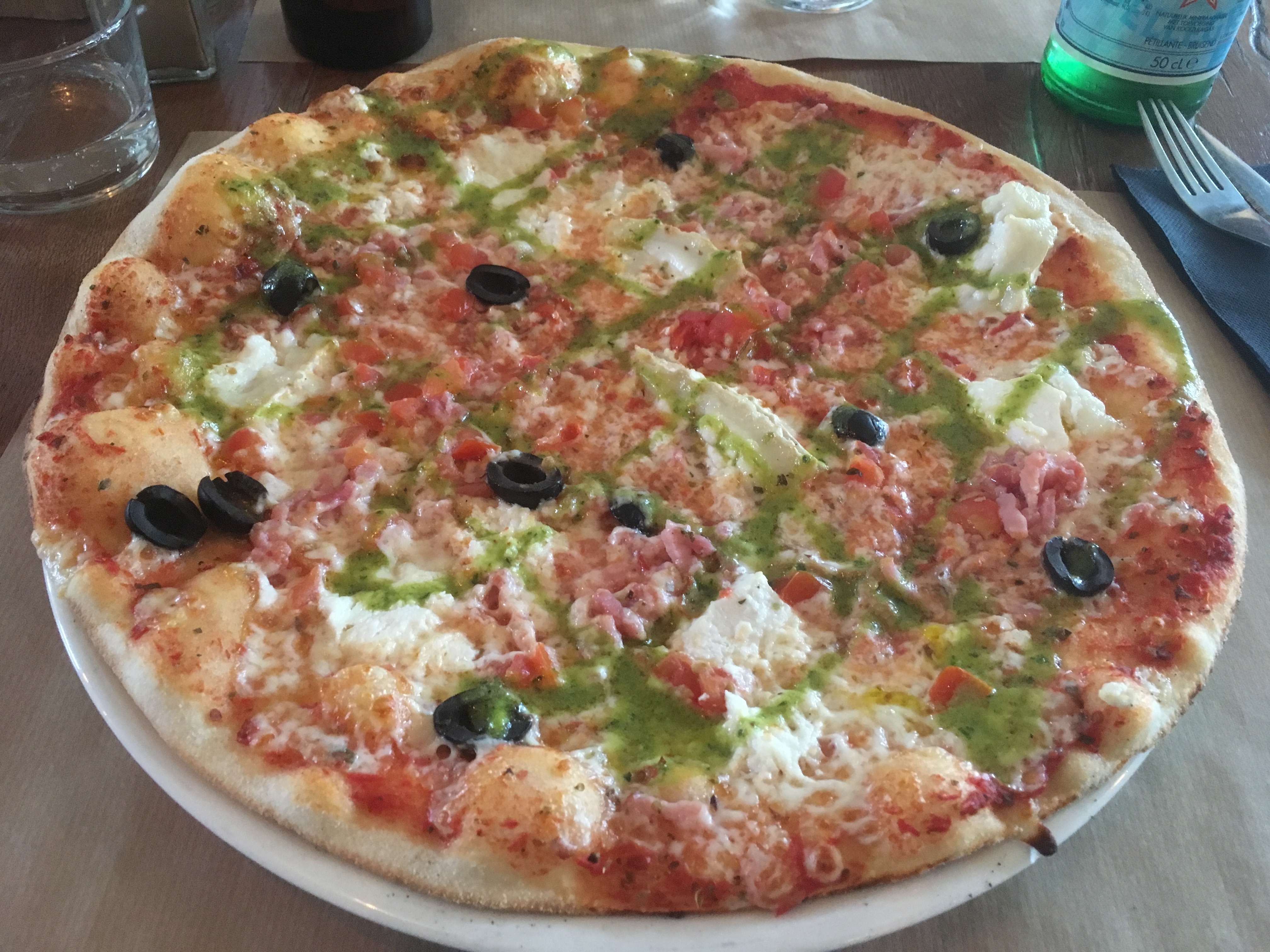 Une belle vue, tant en terrasse extérieure qu'à l'intérieur (pour la plupart des tables). De bonnes pizzas (avec une pâte bien cuite et non pas spongieux comme malheureusement trop souvent). Et un service très agréable et efficace.