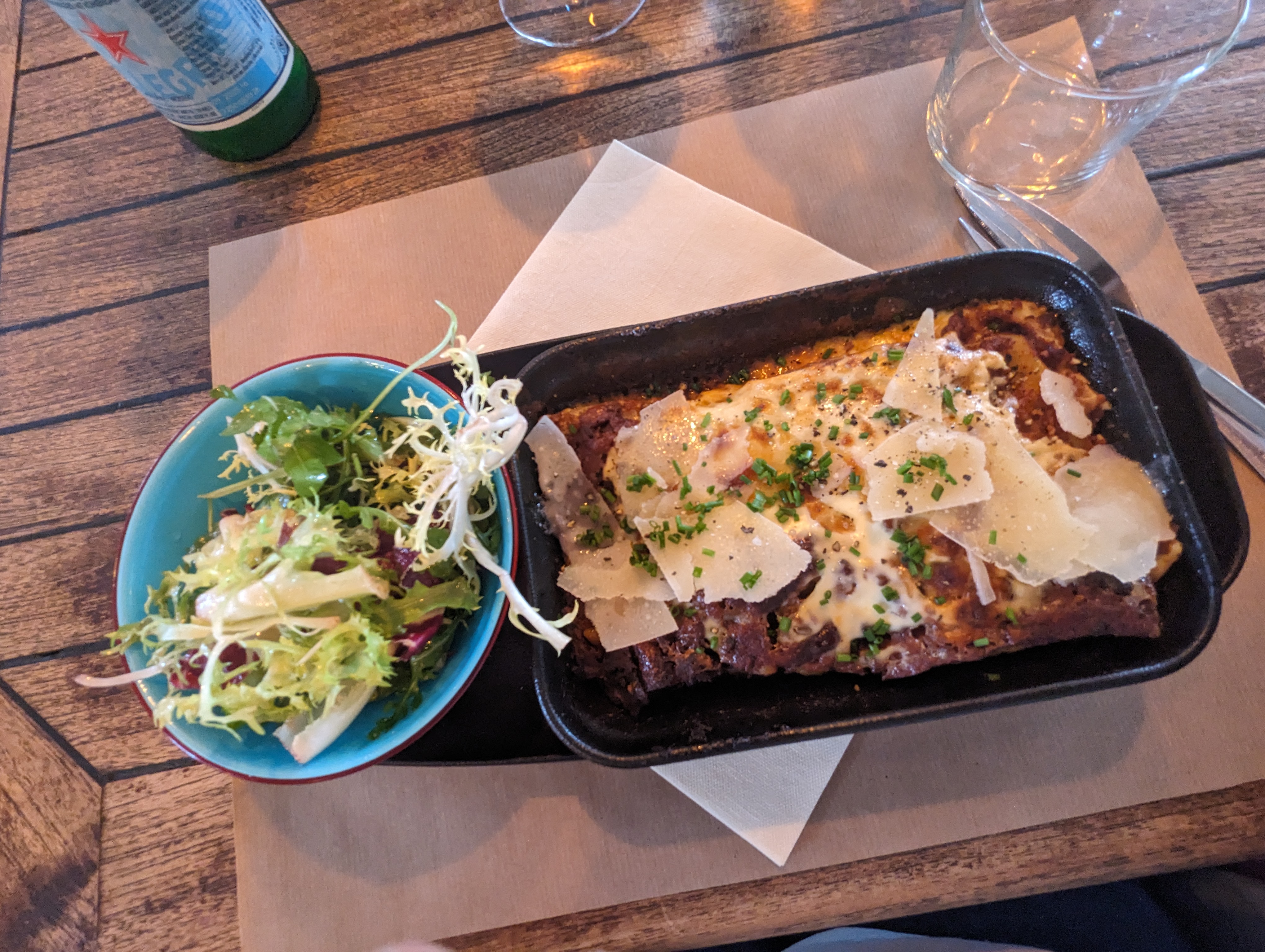 L'accueil était chaleureux, la localisation et la terrasse sont très sympas. Le rapport qualité prix est au top. Les produits sont vrais, les pizzas et salades vraiment bonnes , simples avec un petit twist basque, parfait ! Les desserts me donnaient moins envie par contre.