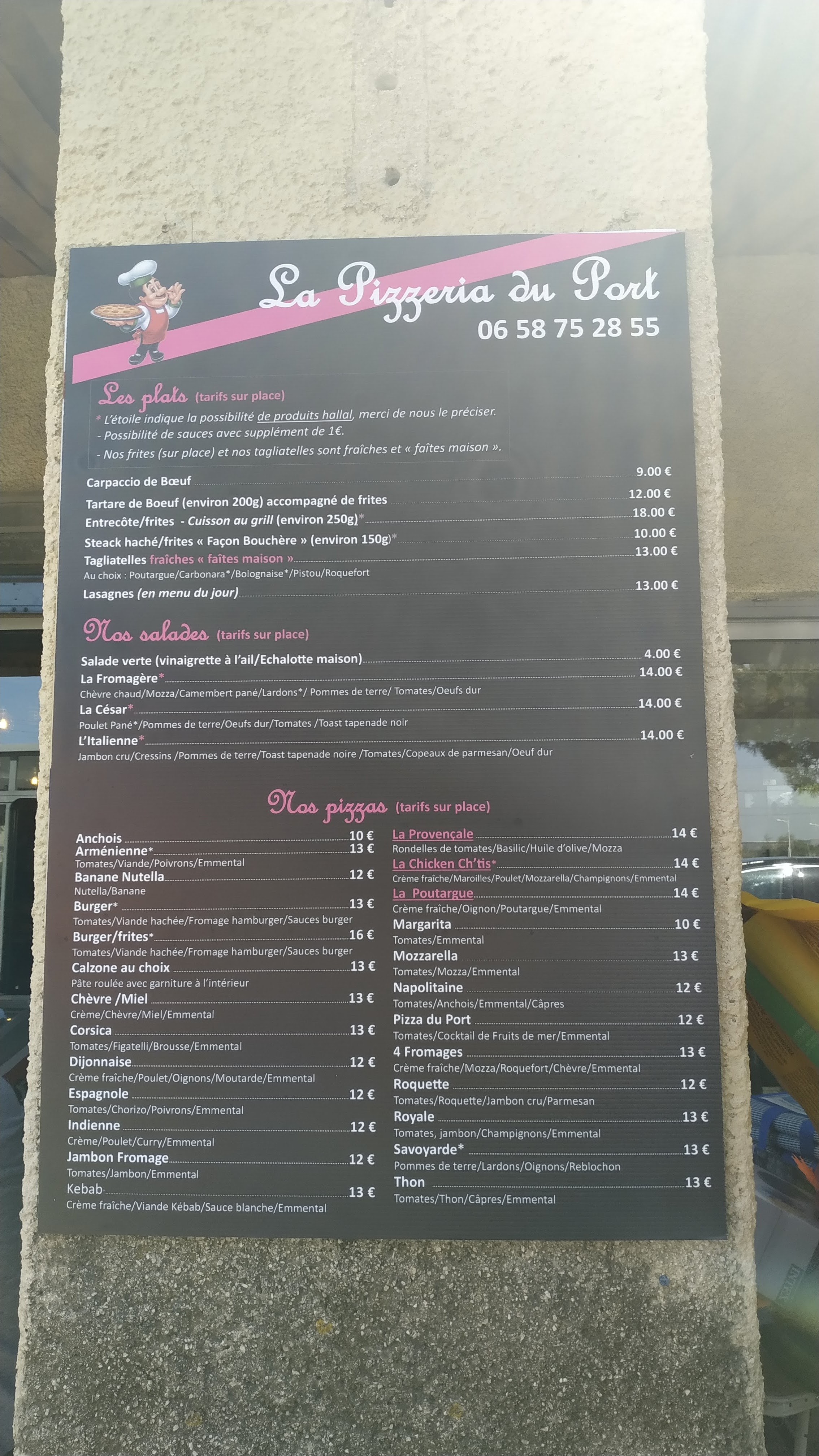 En toute sincérité, n hésitez pas à déguster les spécialités de la Pizzeria du Port. L emplacement n est pas n°1, mais l acceuil et la qualité des produits donnent l envie de se déplacer. Rapport qualité prix très bon, aussi bon que le coulis de tomate des pizzas fait maison. J y retournerai avec grand plaisir Encore merci😋