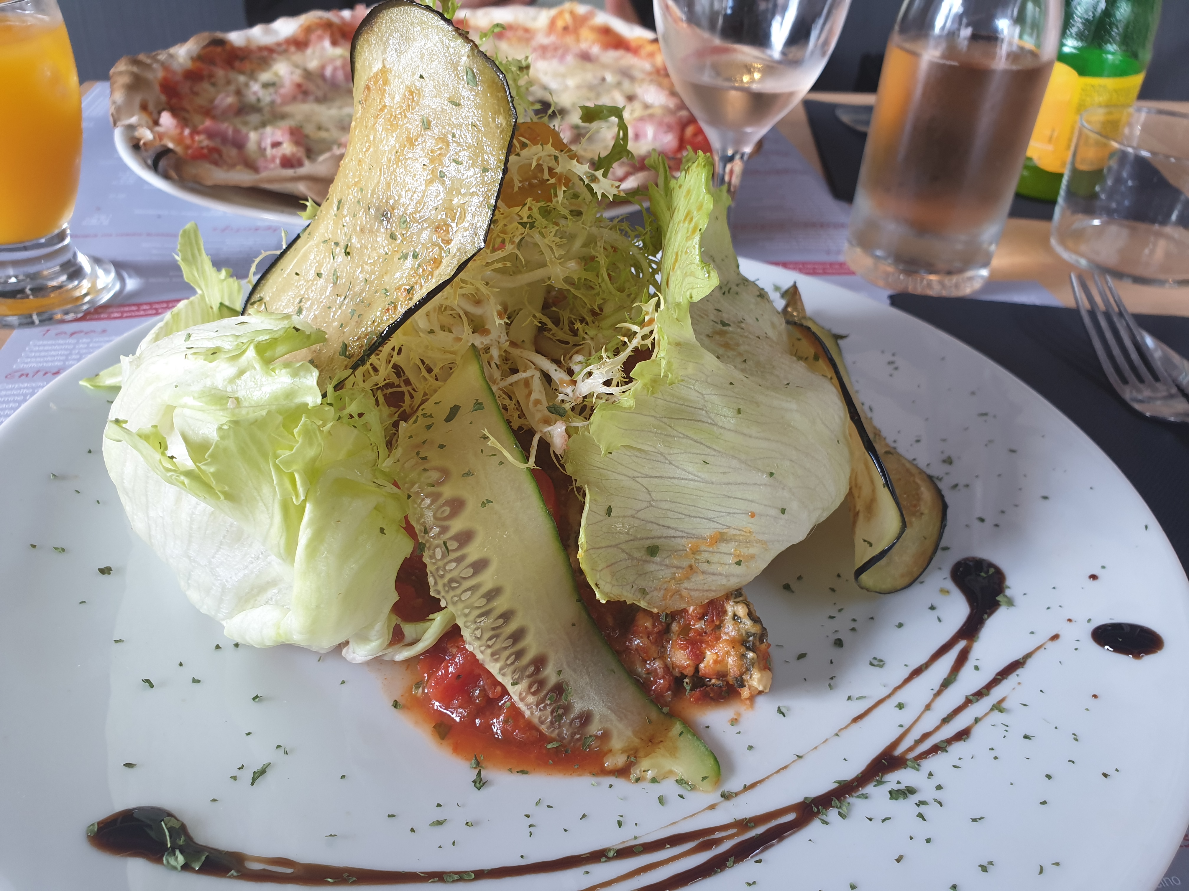 Pause déjeuner sur la route des vacances... pizza fines très bonnes et lasagnes végétariennes bien présentées dans l'assiette et Excellentes. . Merci.