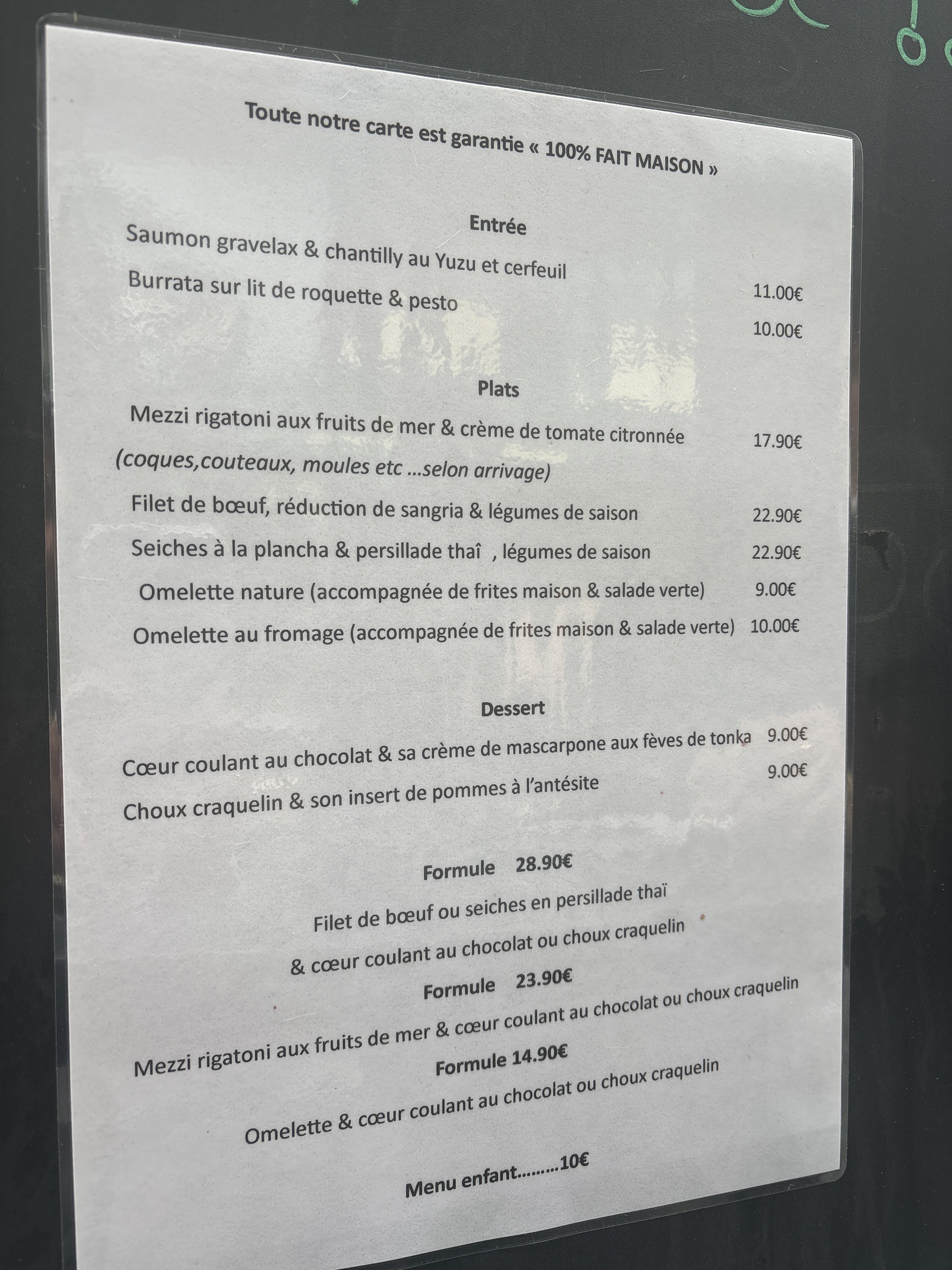 Topitop : ouverture y a 2 mois, je leur ajoute ma note pour donner du poids ! Moules curry + frites maisons a 14€, imbattable, on a picorer a 2 dessus on avait presque deja plus faim ! Les plats sont biens garnis de plein de belles choses dans les assiettes, un peu plus cher que la moyenne locale, mais aussi bien plus proche du semi-gastro ! Niveau ambiance, top également, serveur et staff familial et drole. Seule bémol ? Peut etre un peu sombre comparé a toute les terrasses autour, mais ça n'a pas géné pour autant. Merci !