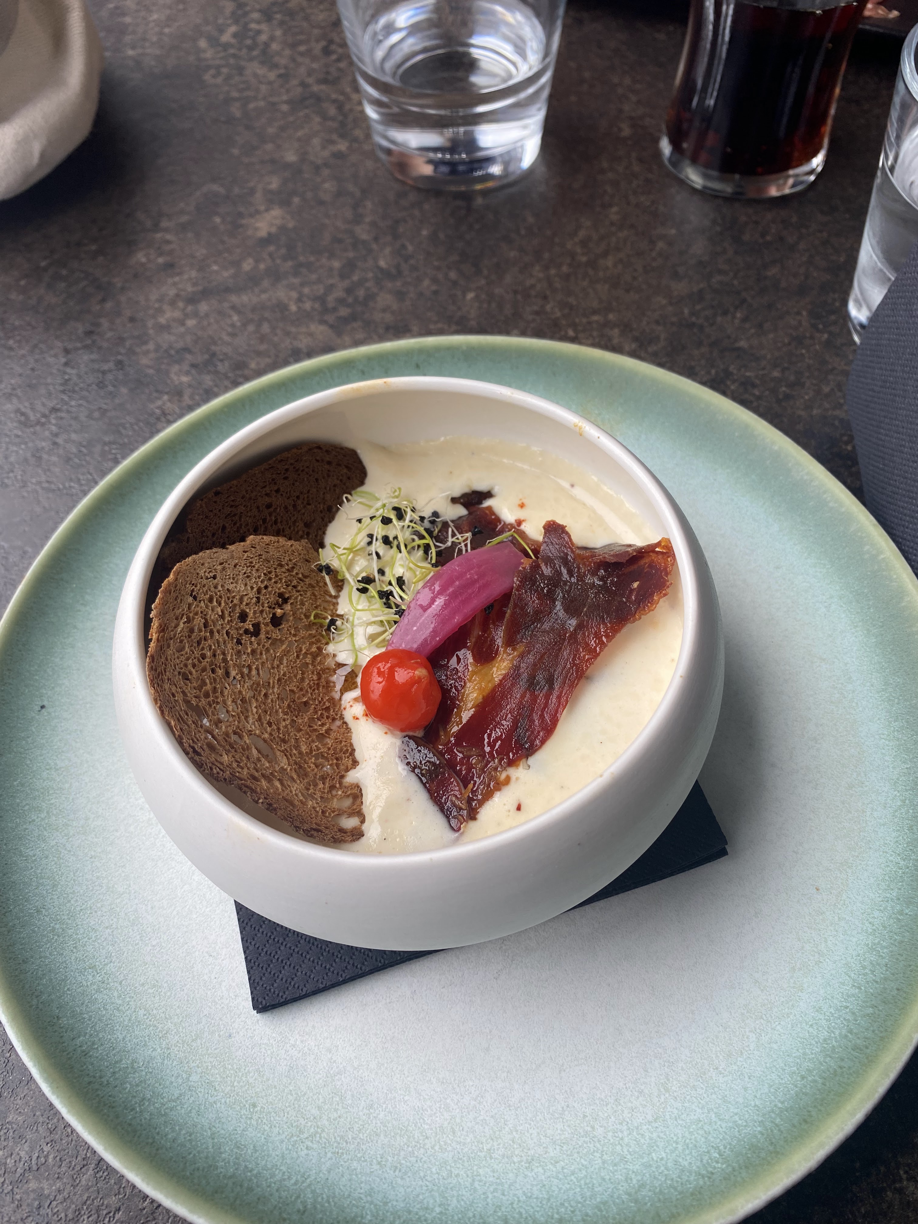 Une très bonne surprise ! créatif et avec un prix raisonnable. Nous avons pris un poulet à la sauce au lait de coco, des coquilles Saint-Jacques, avec risotto d’asperges, et un hamburger. Vraiment excellent ! Je recommande.