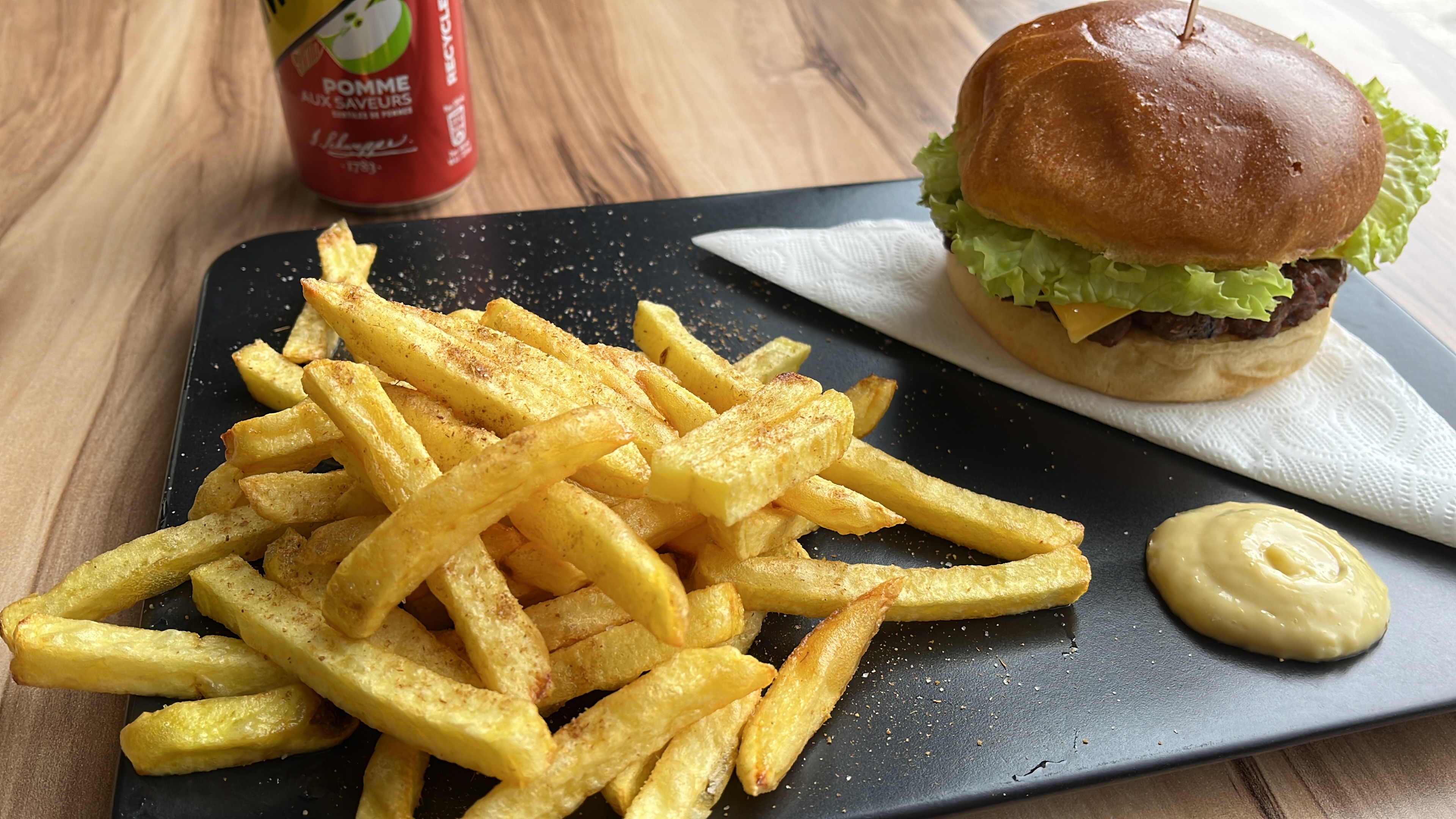 Un vrai burger fait maison sans produits congelés donc vraiment le goût d’un bon burger ça vaut le détour