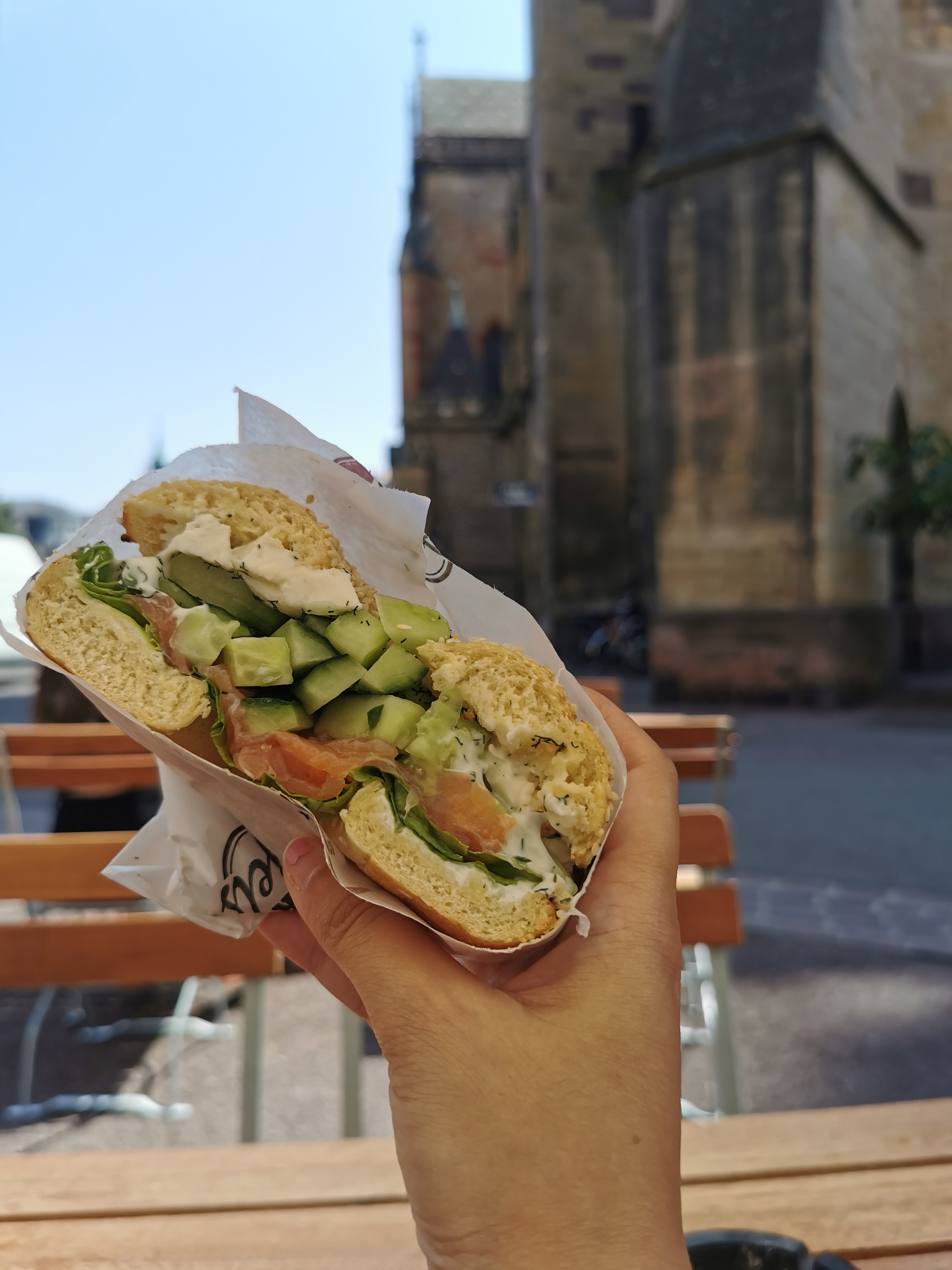 Endroit sympa pour de bons sandwichs au bagel et du café ! Belle vue sur la cathédrale aussi👌🏼Un membre de leur personnel a été super gentil de lui offrir un cookie gratuit lorsqu'elle a découvert que c'était l'anniversaire de ma fille🍪