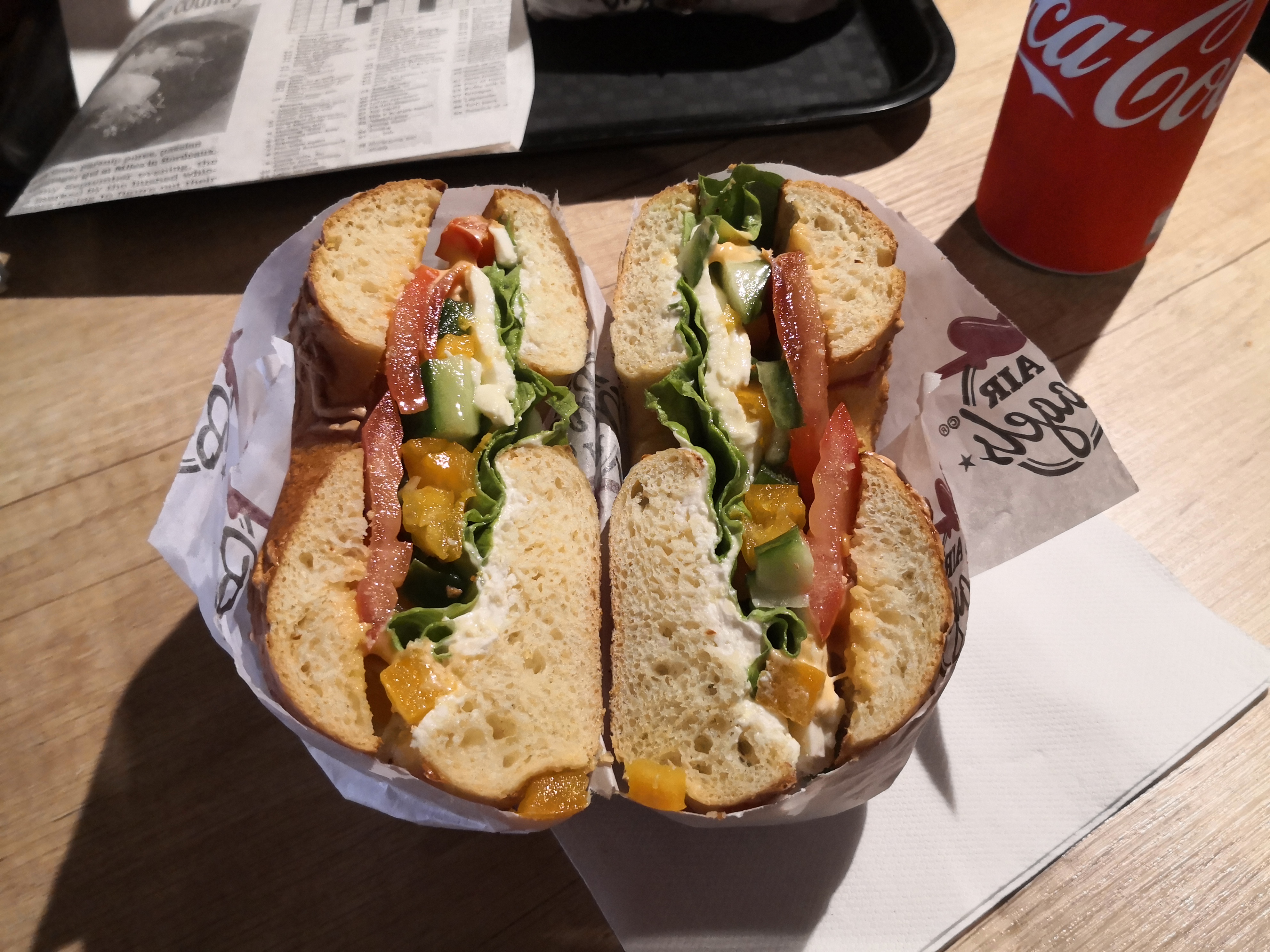 Bonjour moi qui n aime pas trop les sandwichs en général hors chez air bagel colmar j ai pris un sandwich rome il etais excelent et si vous n aimez pas un légume précis il vous fait choisir un autre .J aime ce restaurant