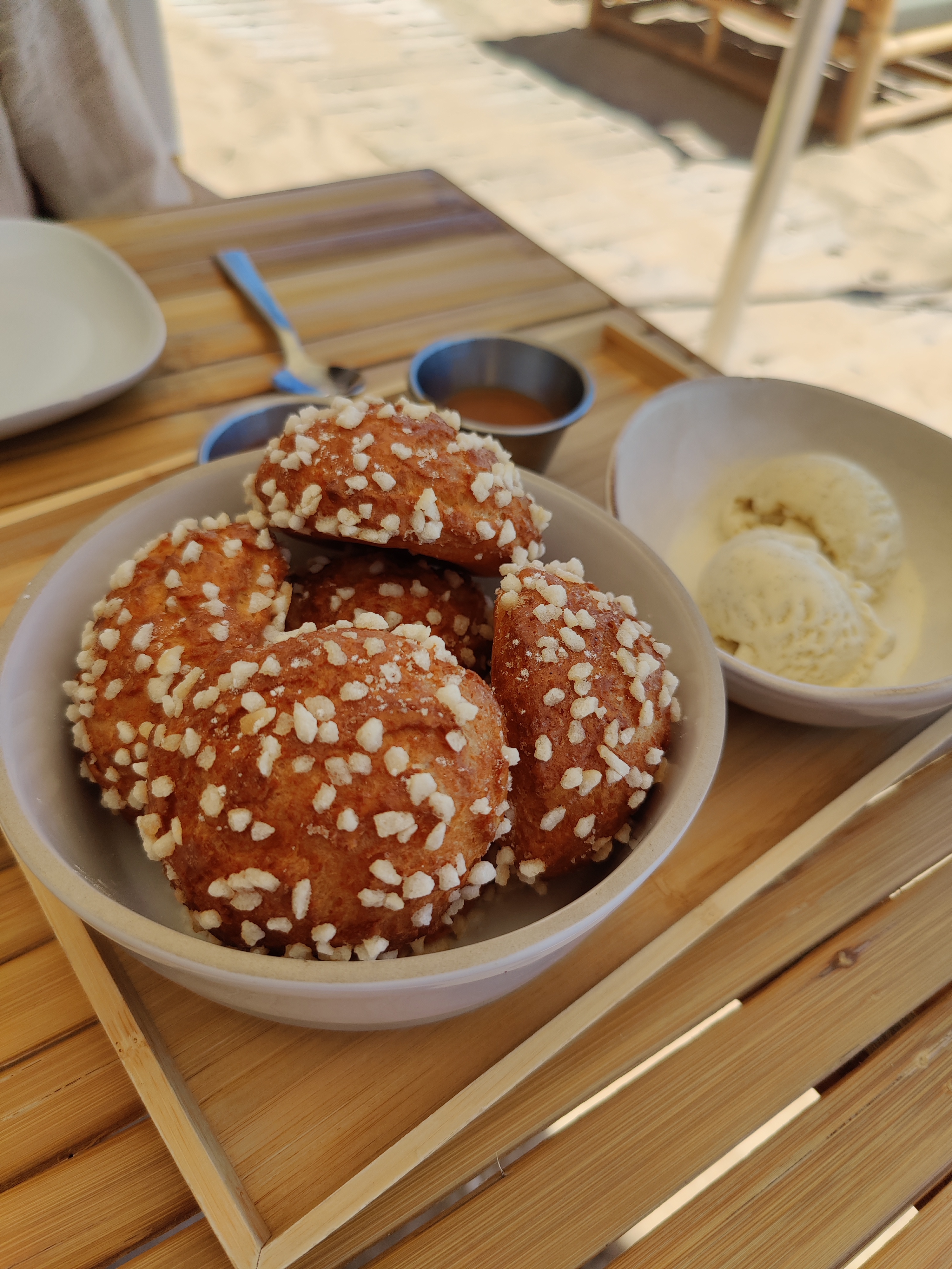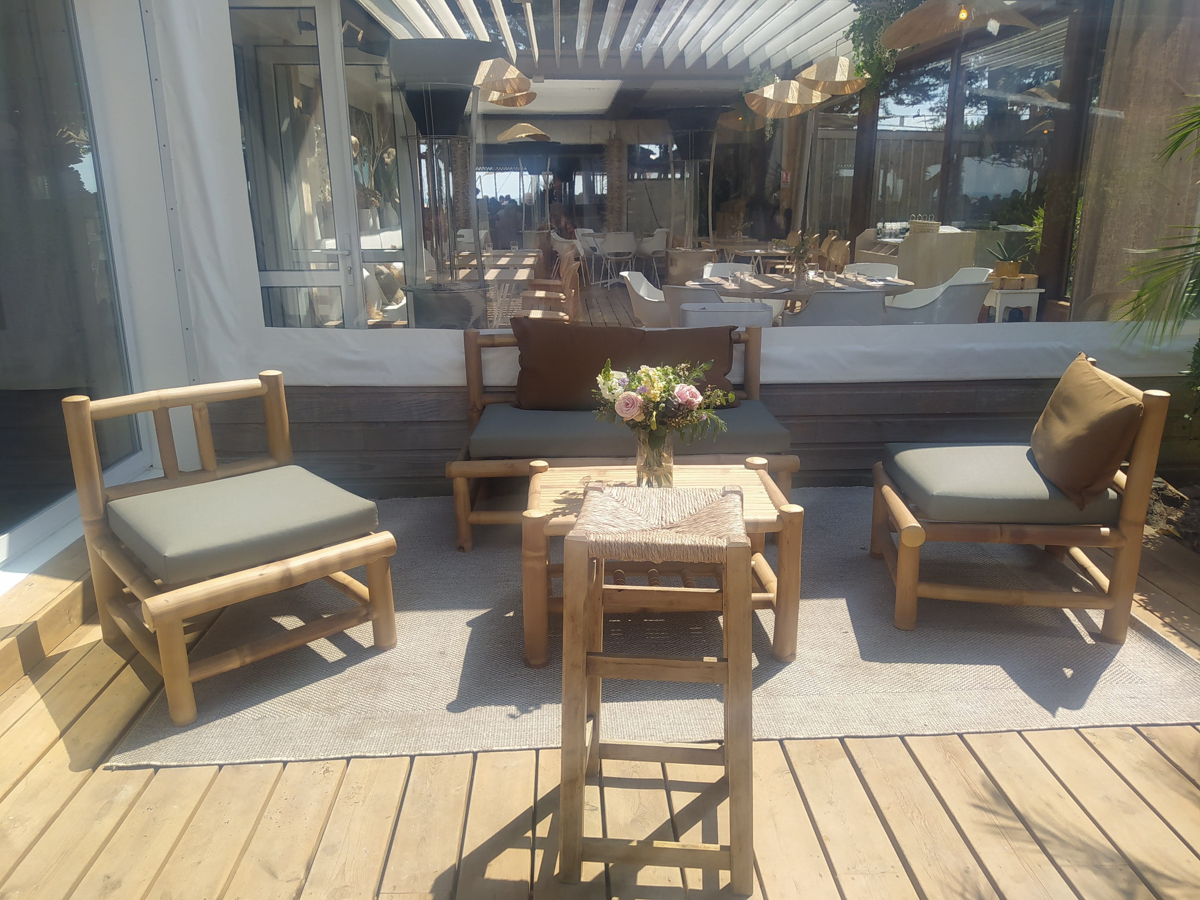Un joli spot ☀️. Les pieds ds le sable, toujours un agréable moment de pause pr dejeuner🌴🌊😊 Nouvelle deco, boheme chic 😎👍 Mieux vaut reserver!
