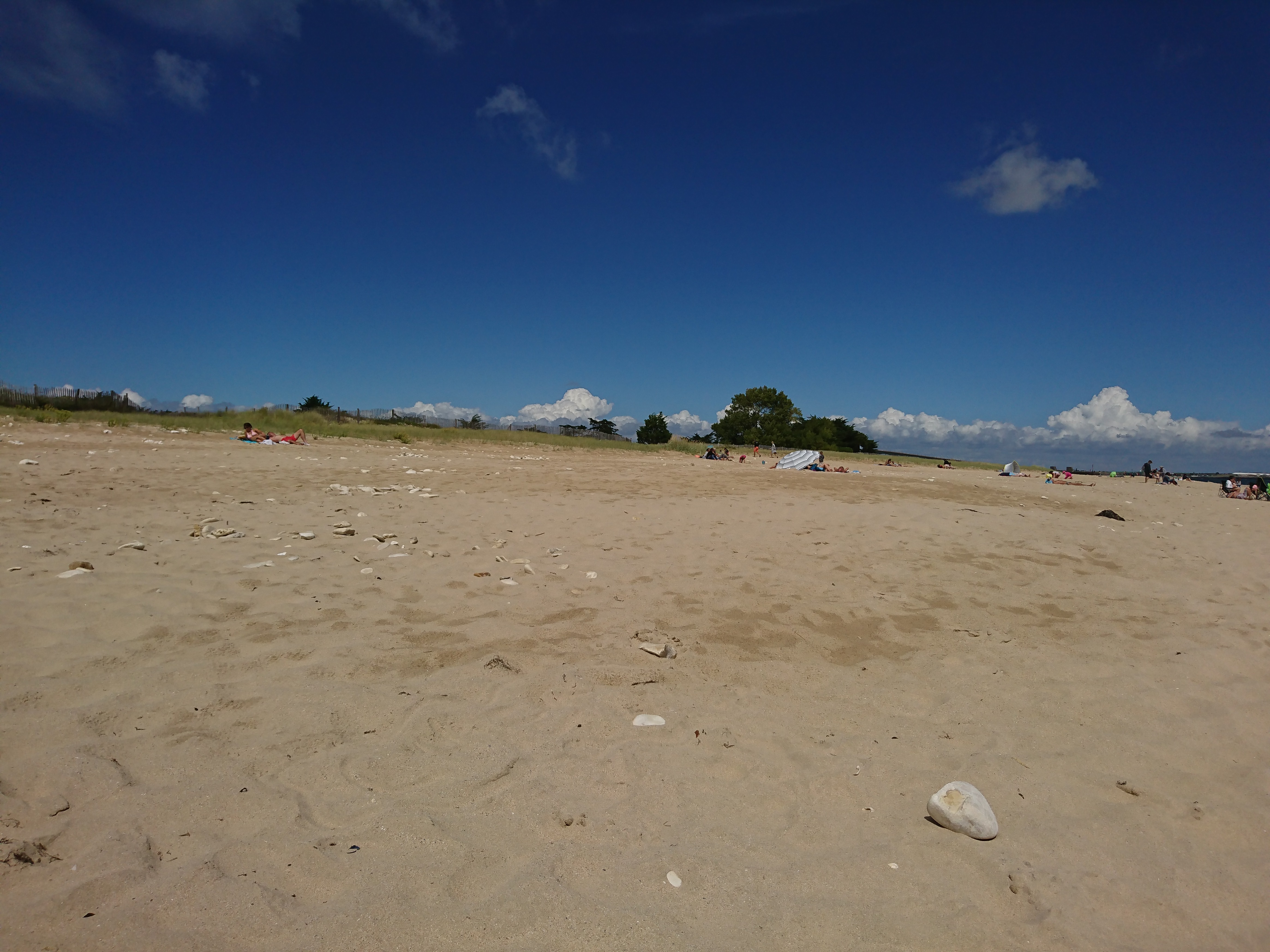 Grande plage à gauche après la traversée du pont de l'île de Ré. Sable de couleur ocre. Large espace. On peut s'y baigner sans problème avec les enfants. Beau rivage.