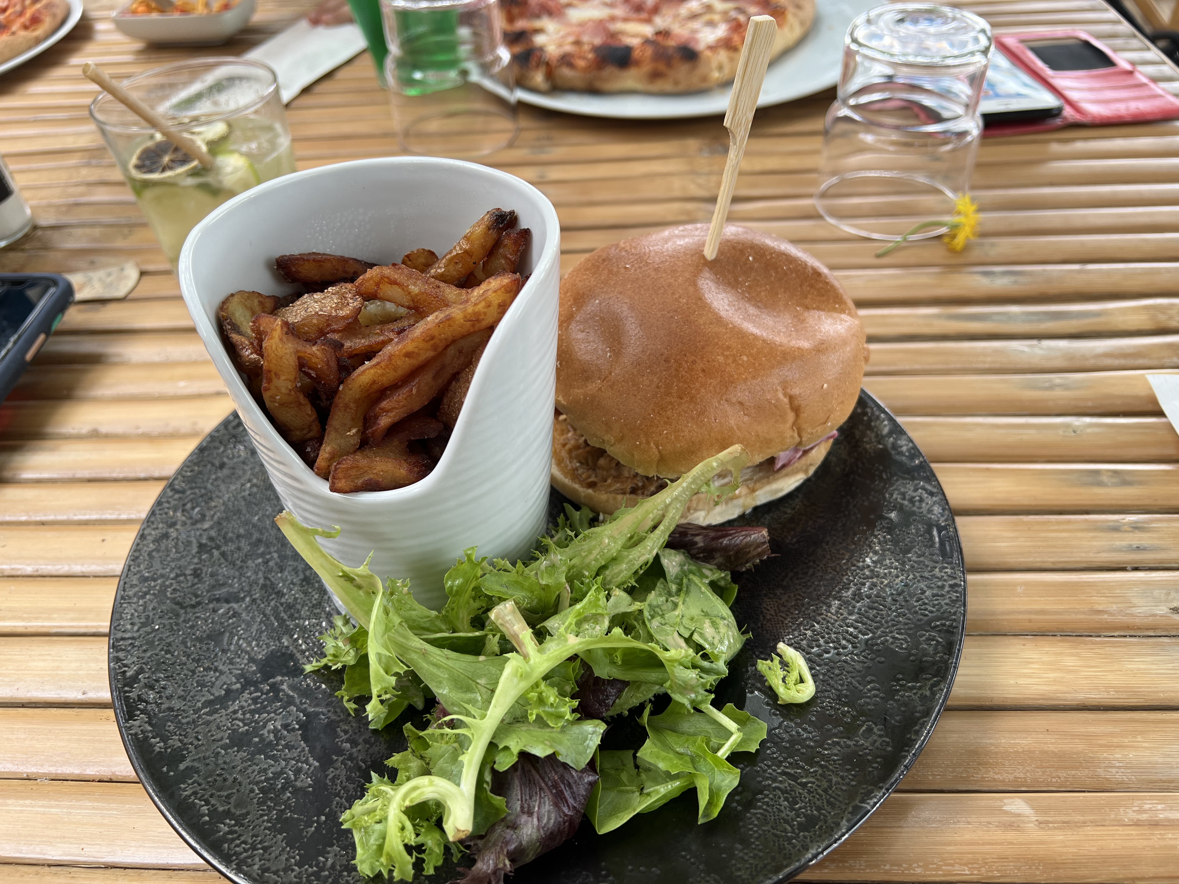 Super endroit et ambiance à La Plage. Pensez à réserver car très fréquenté. La carte est assez variée entre : entrées, pizza, poisson et viande. Pour ma part c'était la pizza 'Oh my Truffe' très bonne. Serveurs très agréable ! Petits bémols pour le temps d'attente des plats qui était long et les prix élevés..