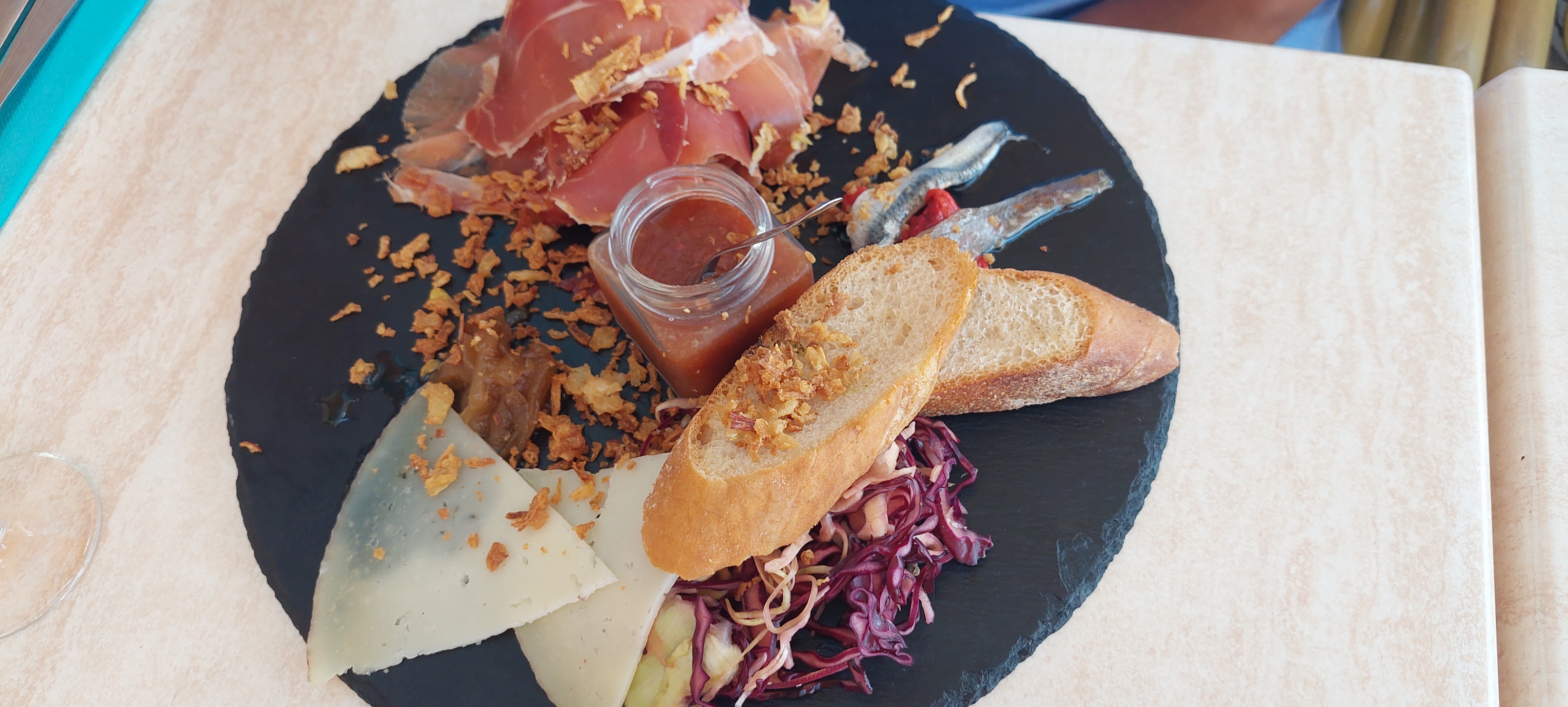 L assiette méditerranéenne trop bonne:menchego,Serrano etc.. Calamars à la plancha 😋...le coulant au chocolat trop bon 😋😋... Accueil et service au top.prix correct,car bons produits... emplacement très bien situé en face de la baie de Collioure...