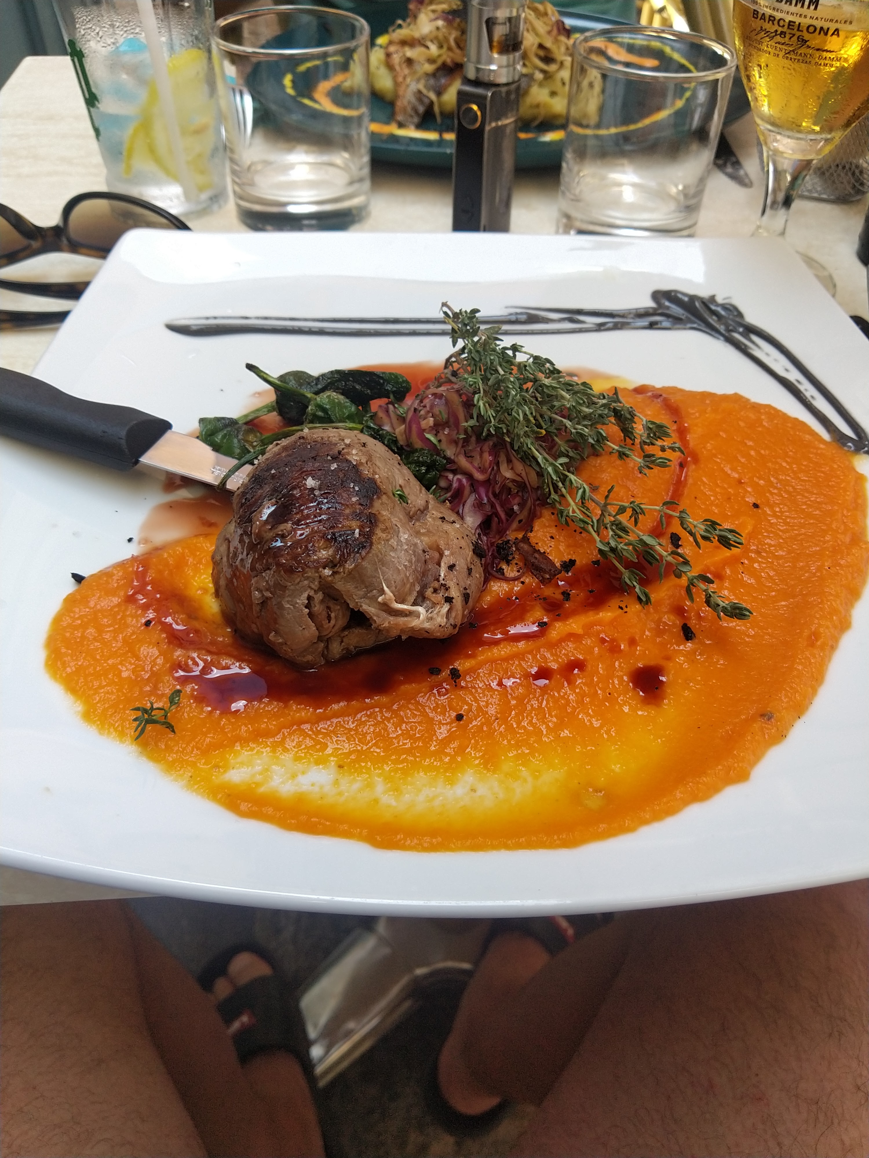 Burger catalan très bon, plat de pâtes au poulet un peu cher et pas beaucoup de viande. Serveuse très agréable. Correct dans l'ensemble.