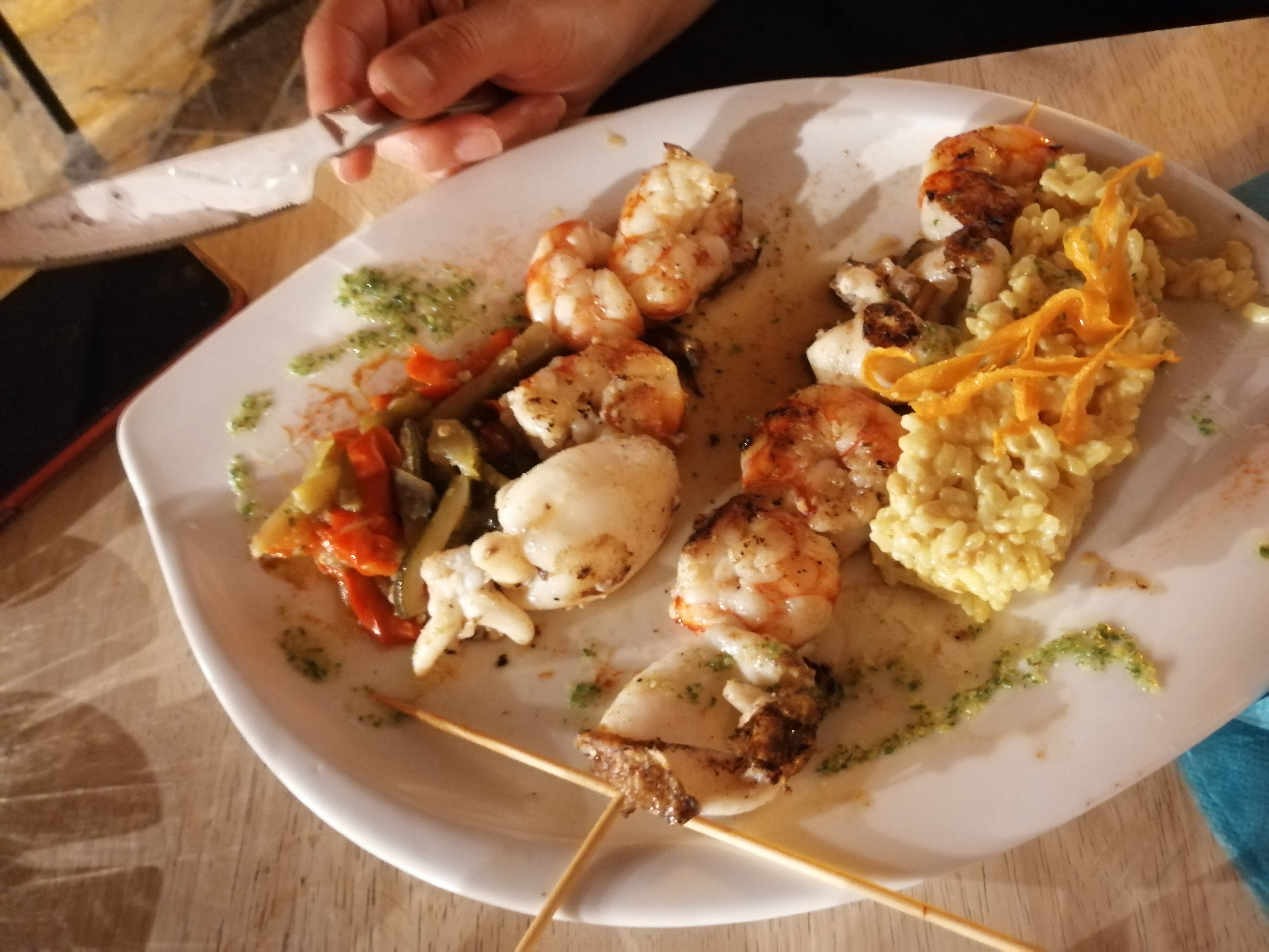Les brochettes de gambas excellente, le personnel sympathique, un p’tit groupe de musicien qui animait la soirée étaient vraiment top et un p’tit clin d œil au père de la patronne qui a été adorable et qu on attends en Normandie avec plaisir 😉